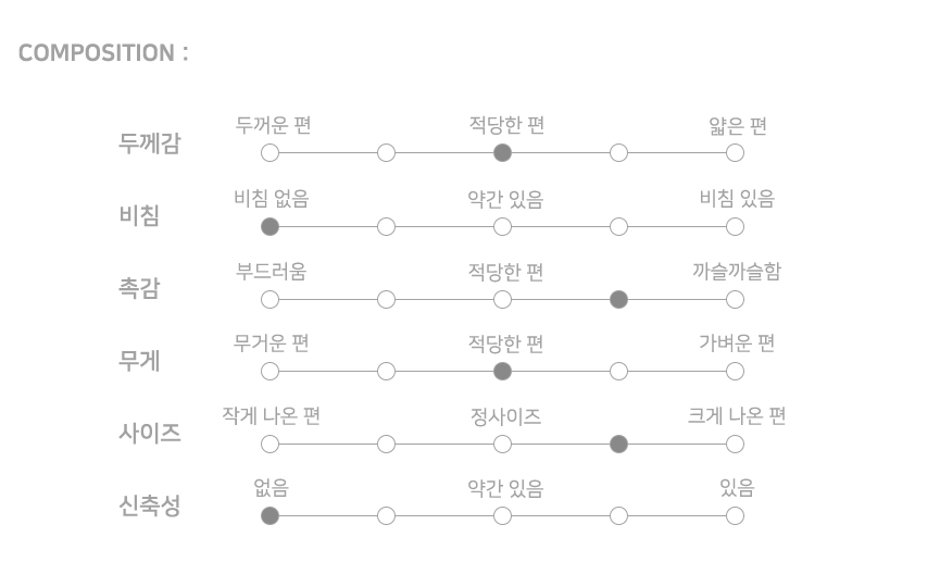 - 허리둘레 XS 69.5 cm / S 73.3 cm / M 78.4 cm