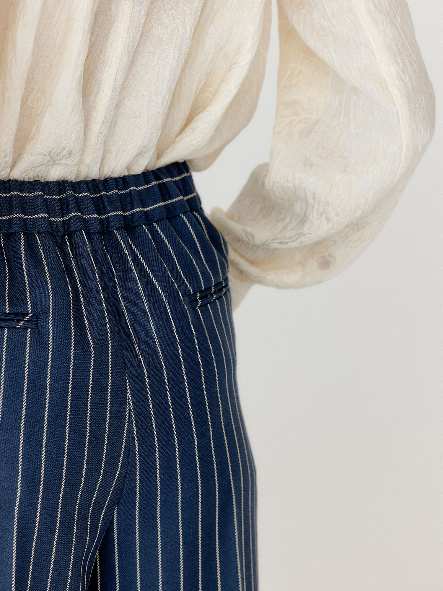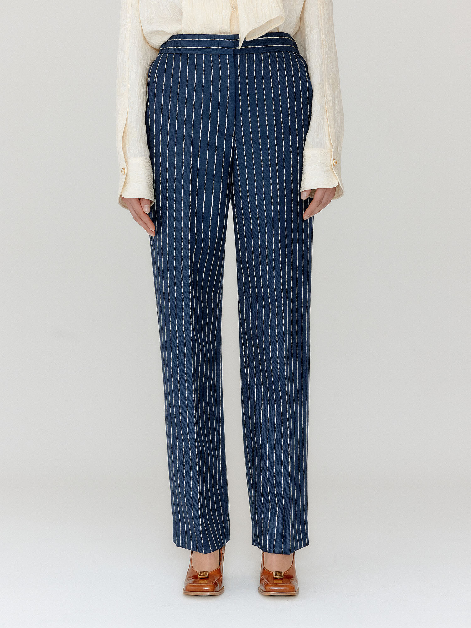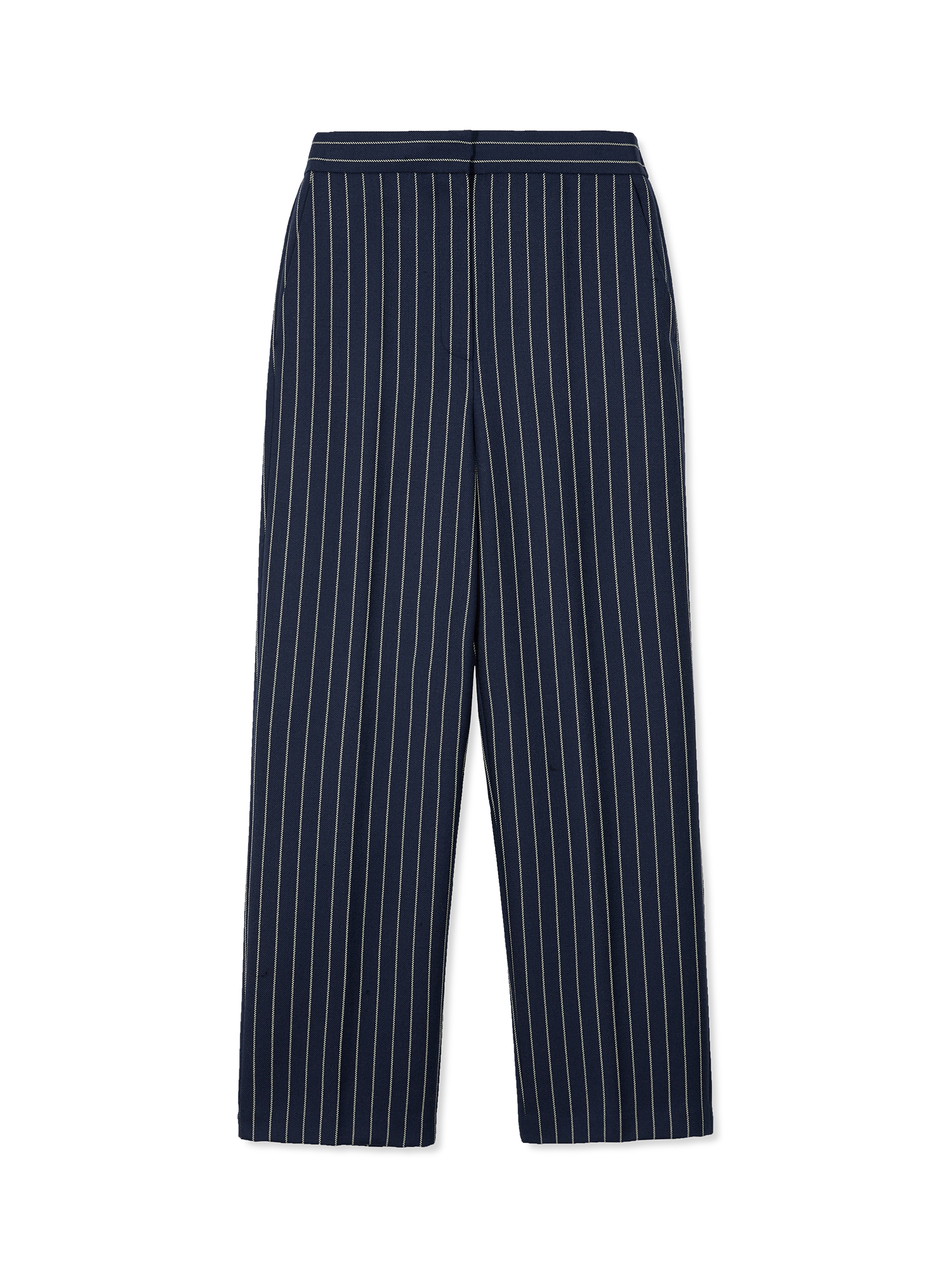 VILONA Straight Pants - Navy/Cream Stripe