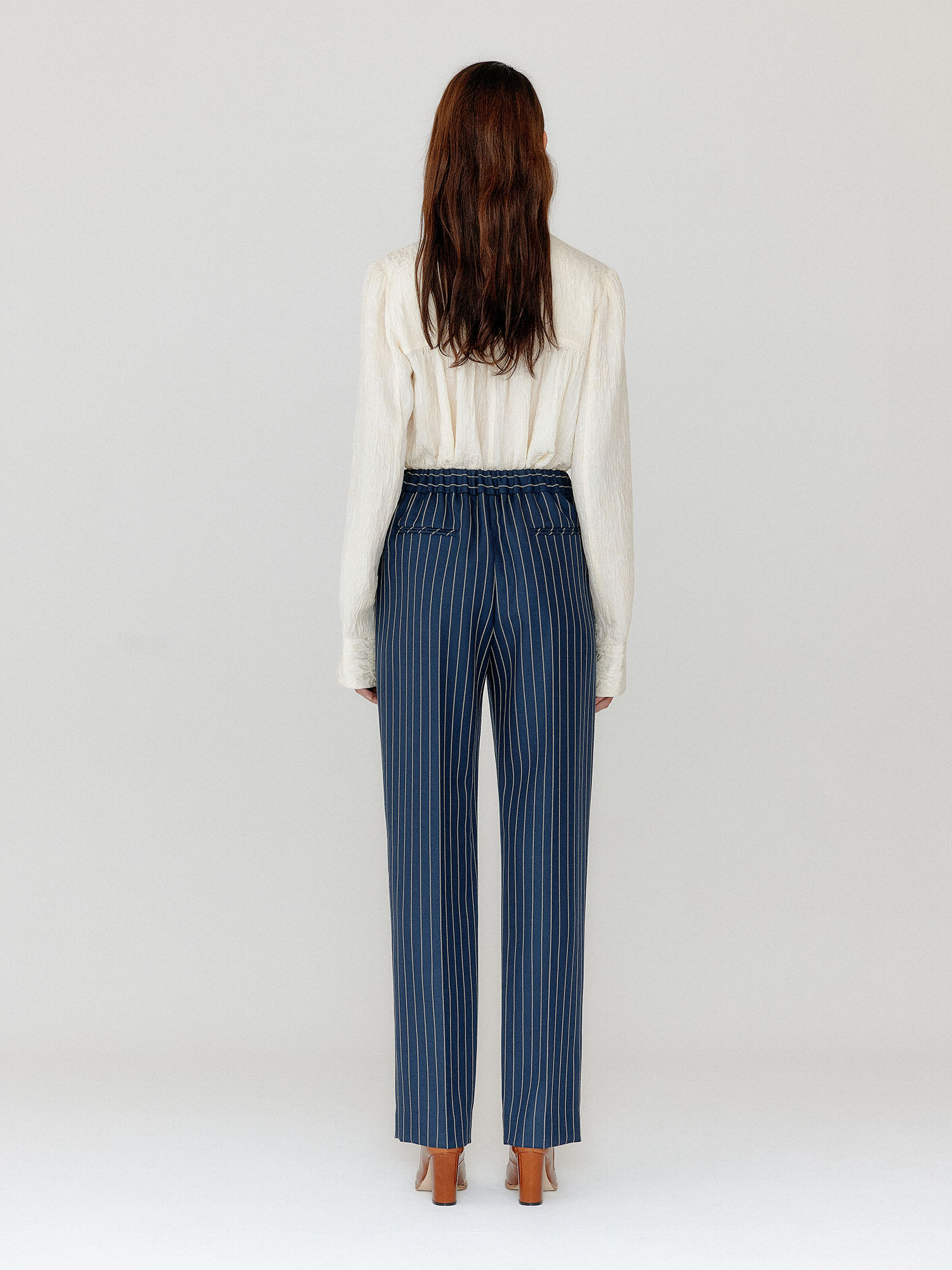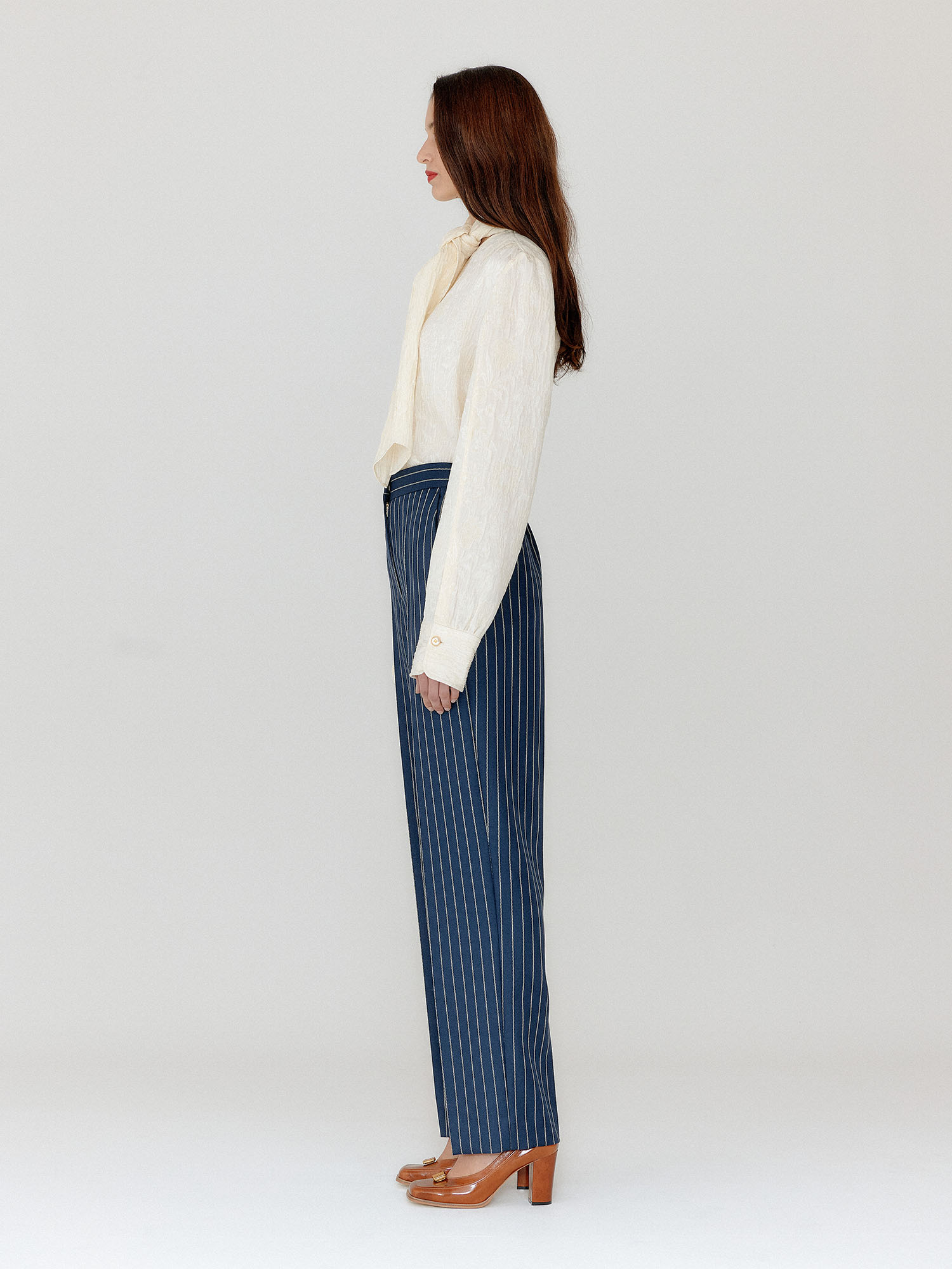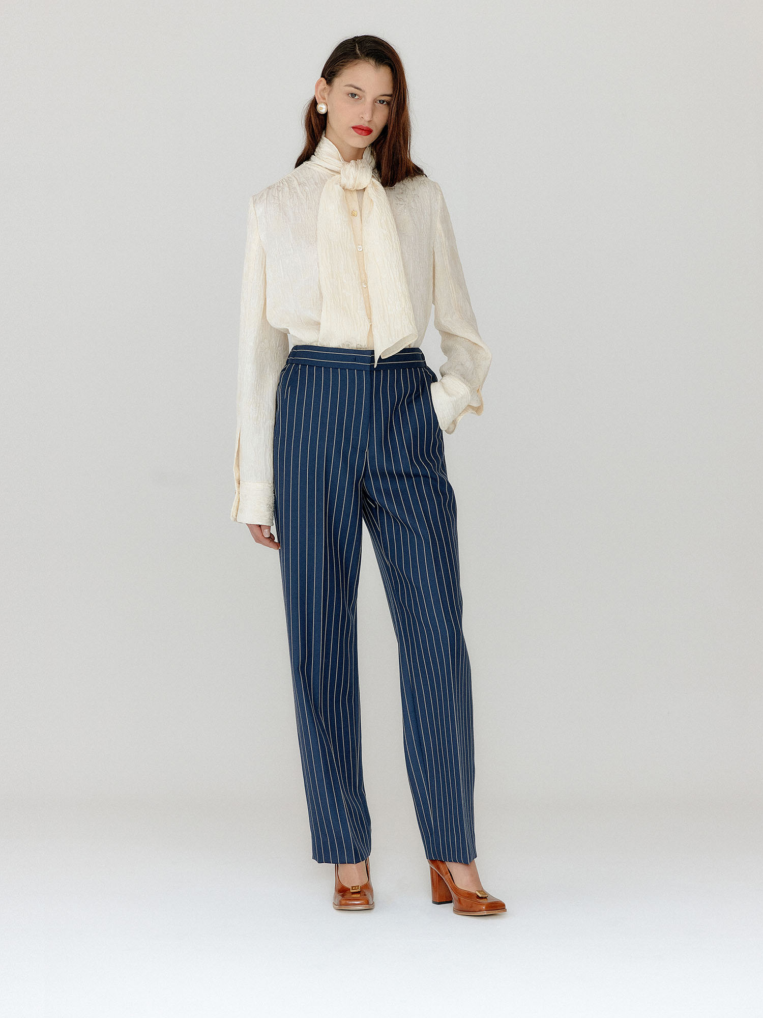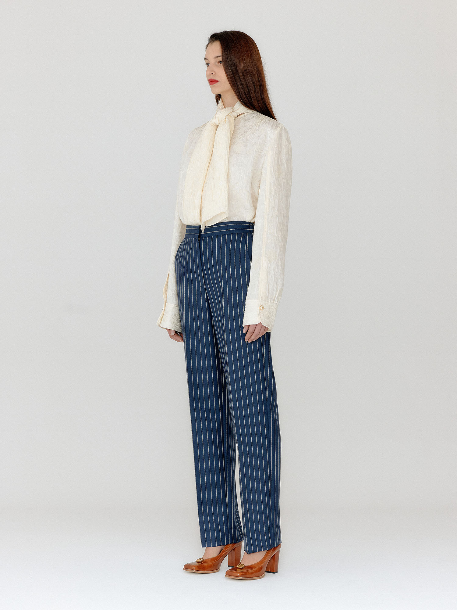 VILONA Straight Pants - Navy/Cream Stripe