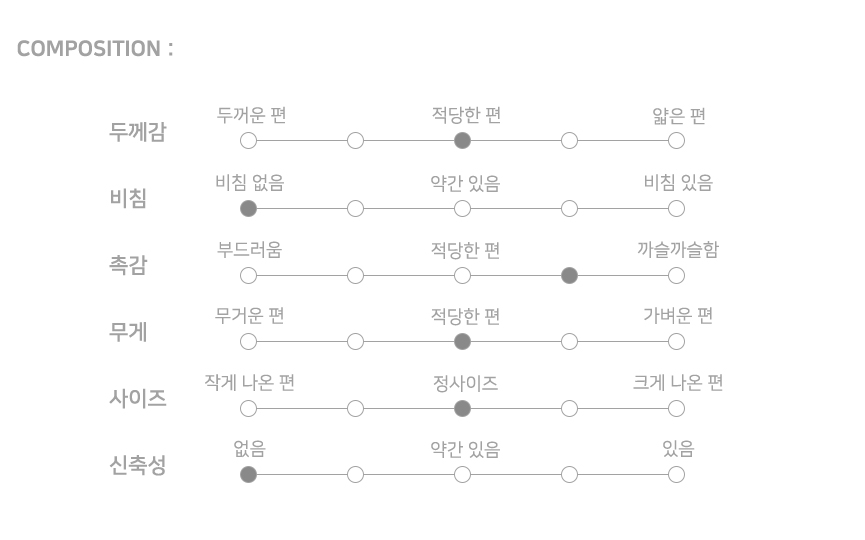 - 힙둘레 XS 95.3 cm / S 99.1 cm / M 104.1 cm