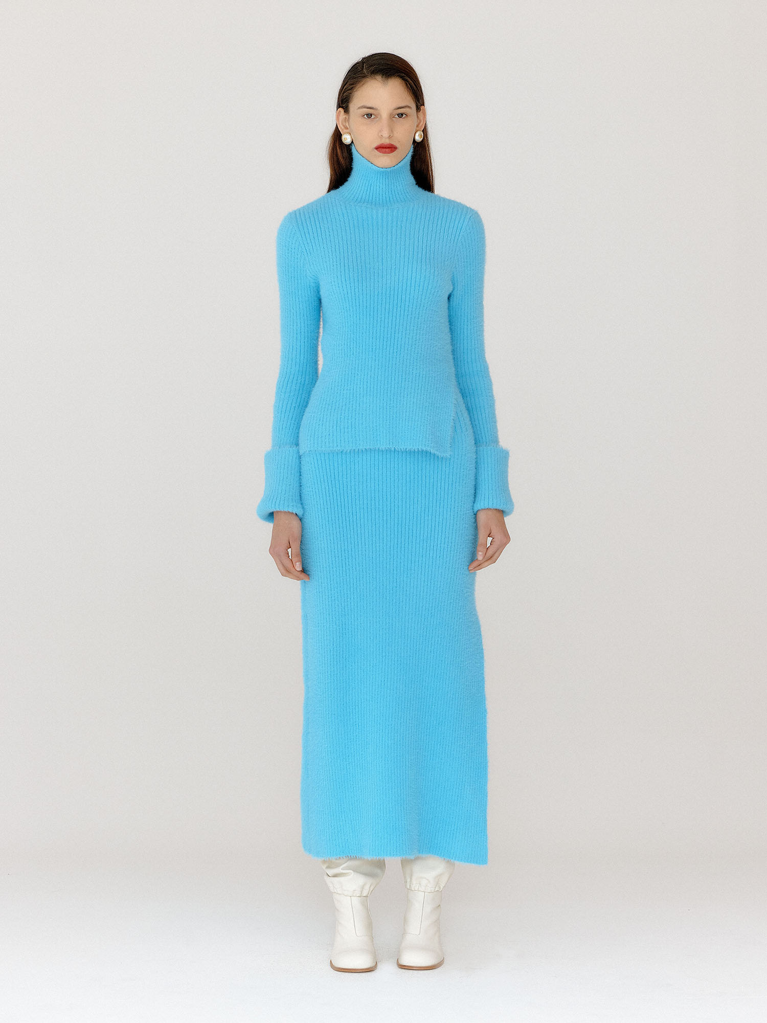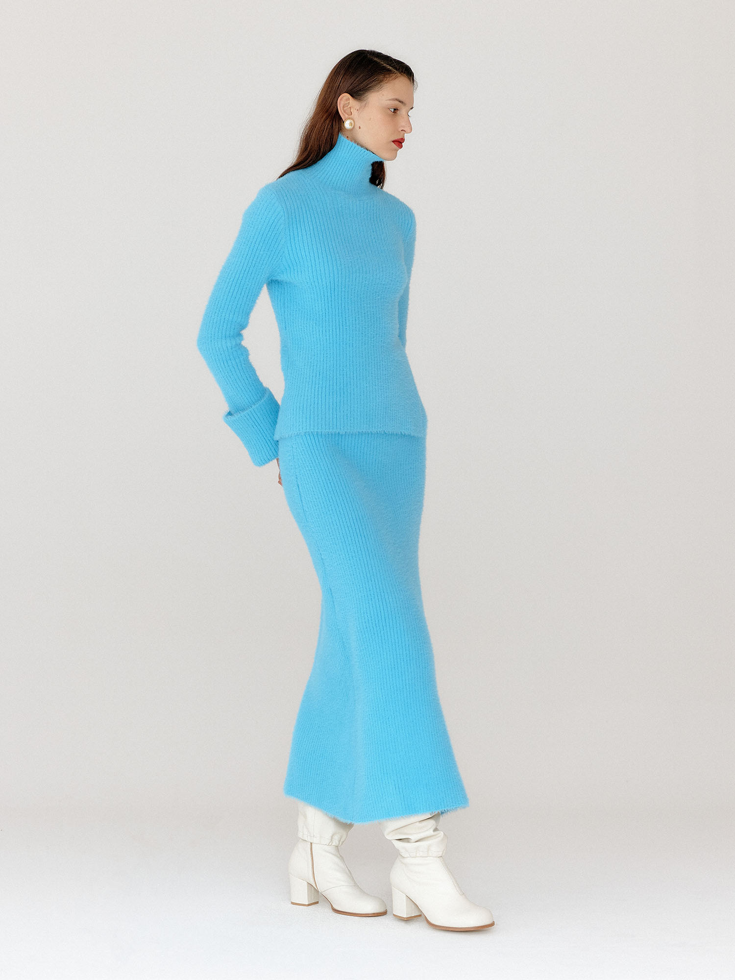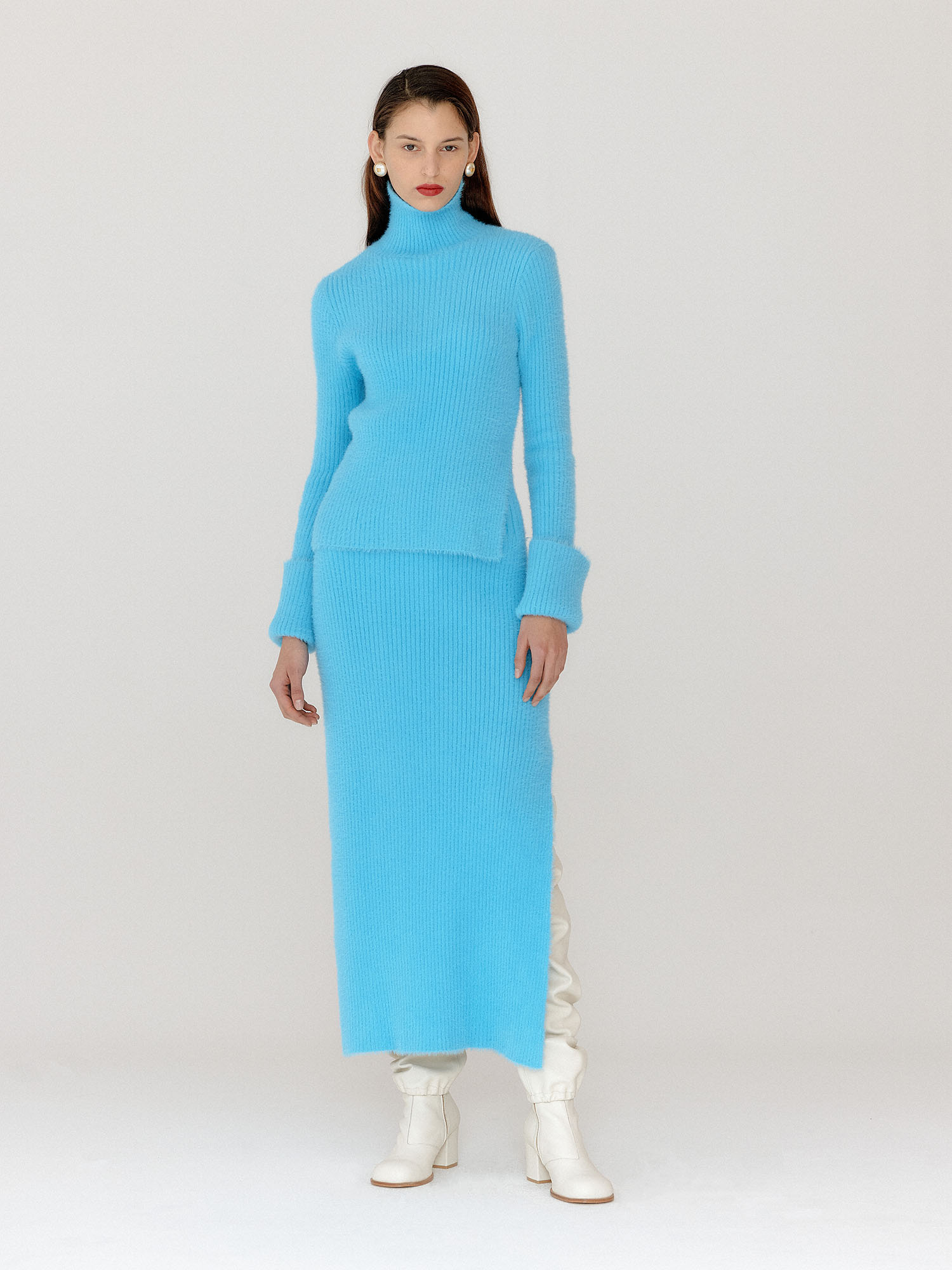 - 스카이 블루 컬러의 니트 스커트입니다.