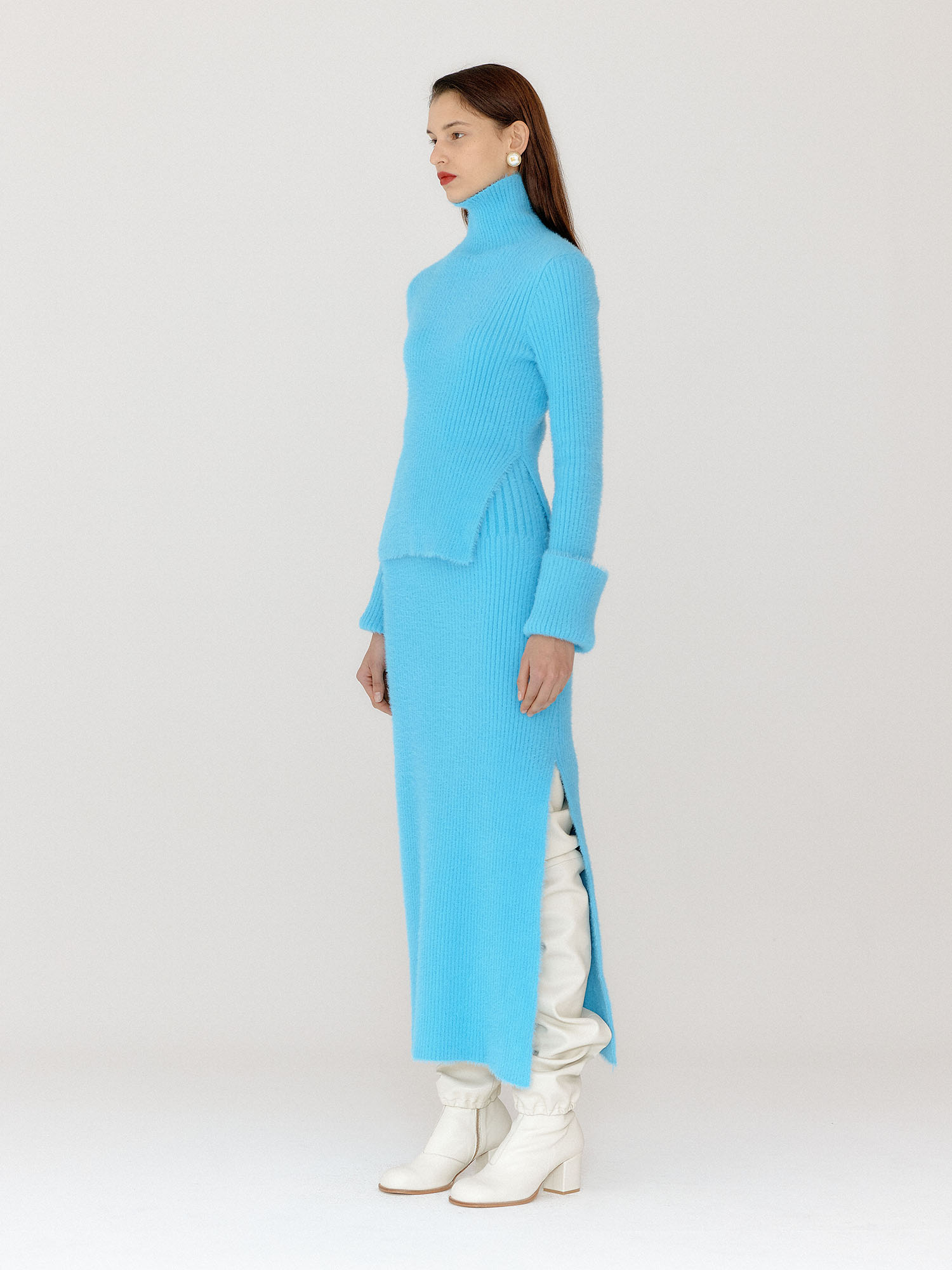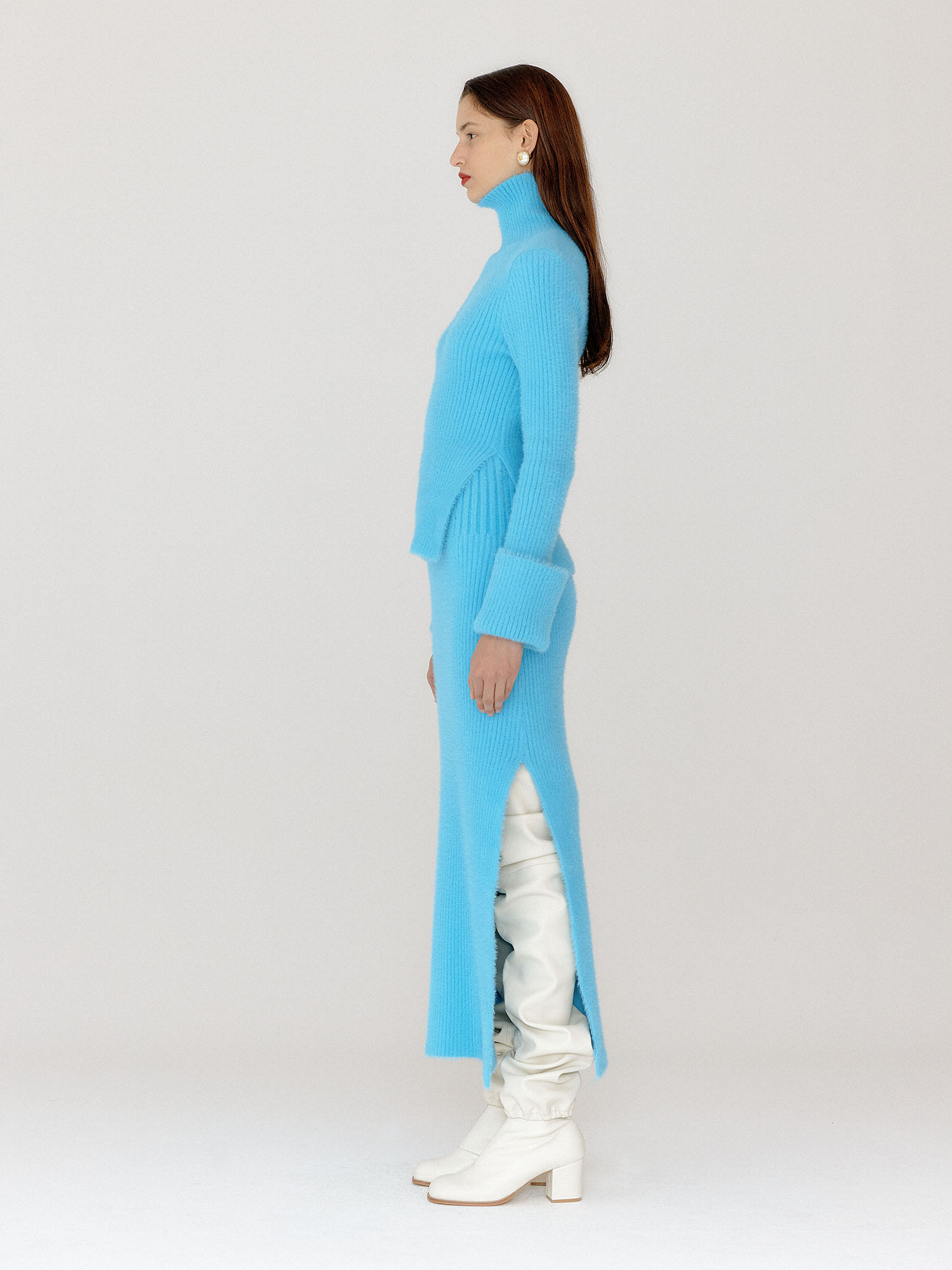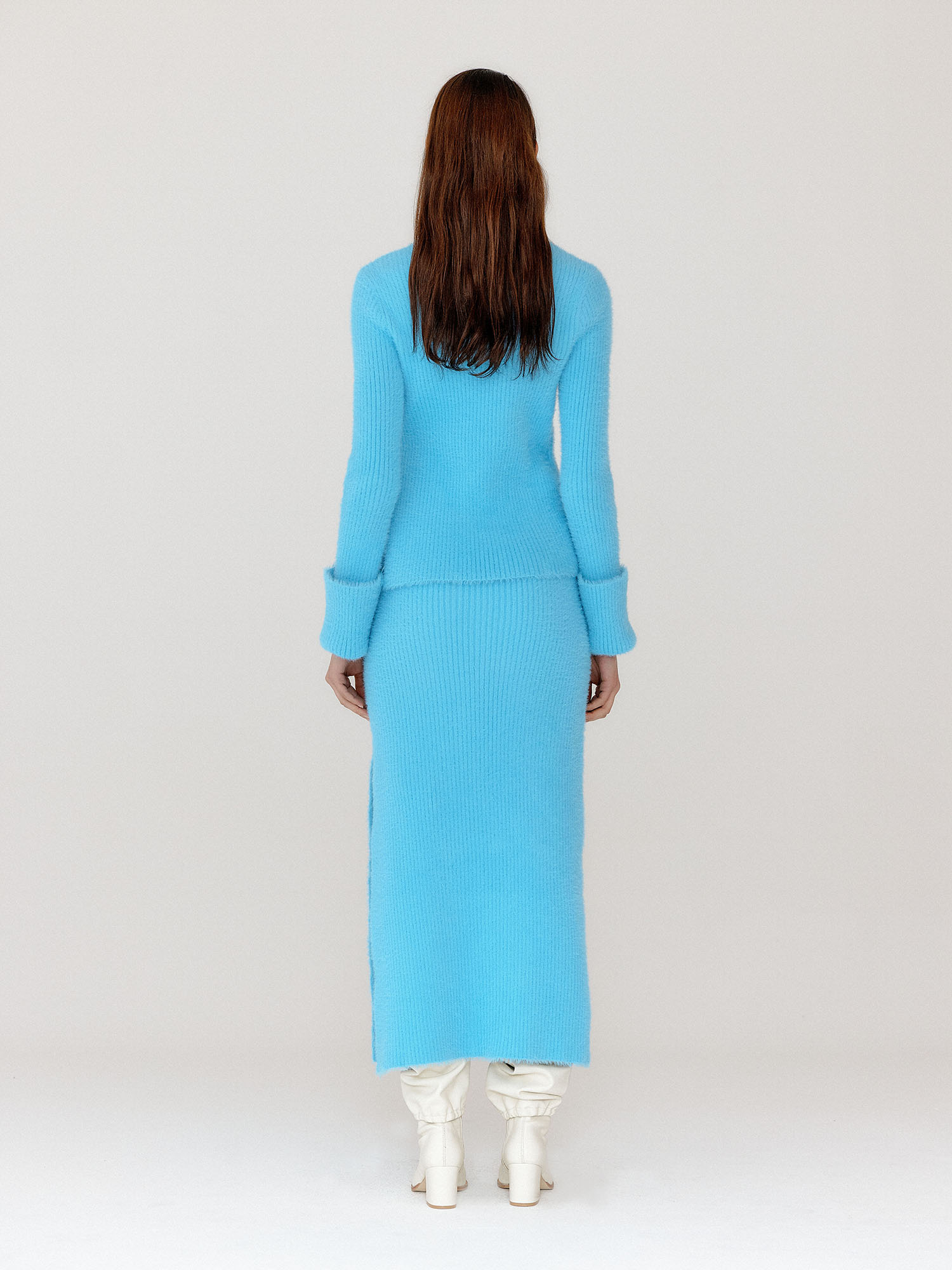 - 스카이 블루 컬러의 니트 스커트입니다.