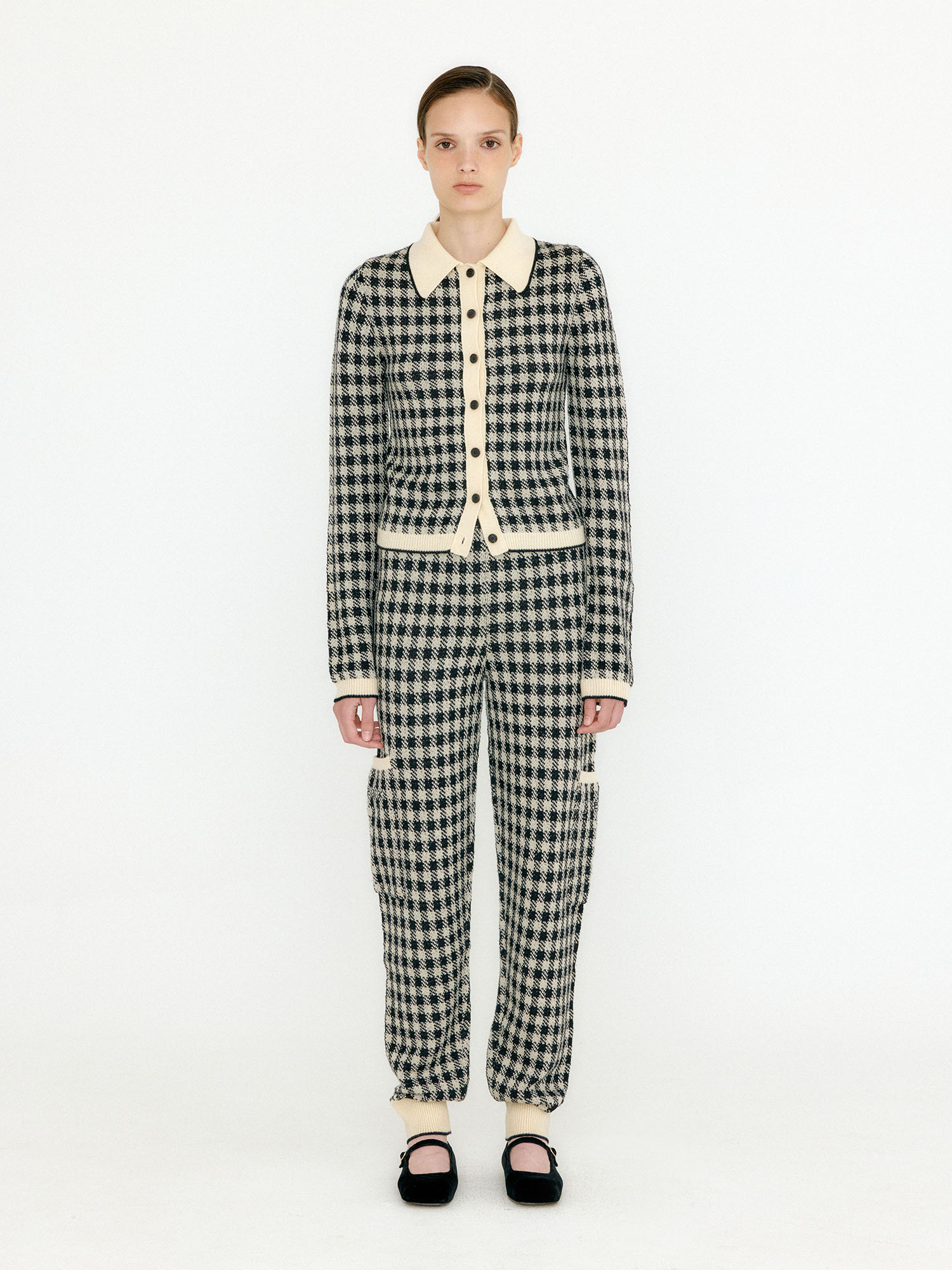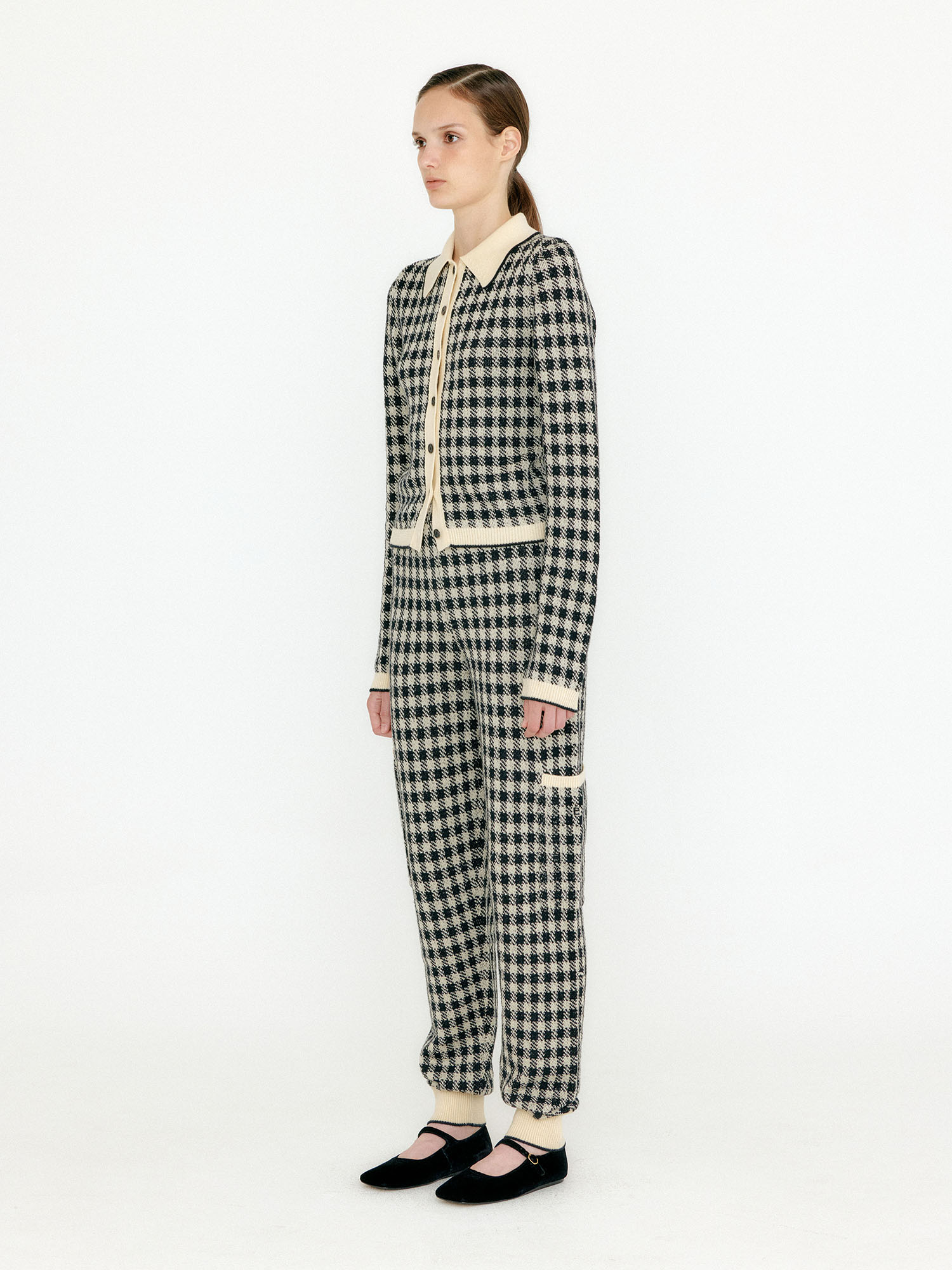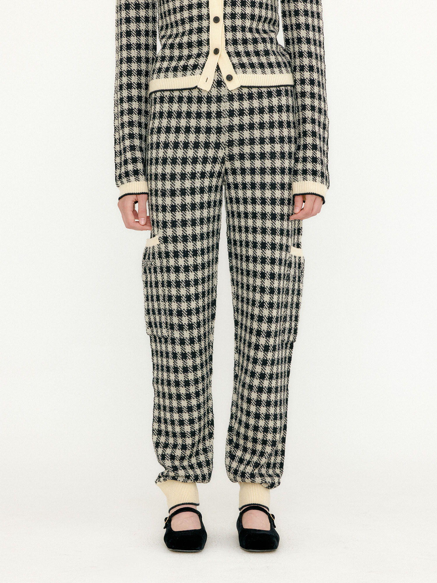 - 체크 패턴의 니트 팬츠입니다.