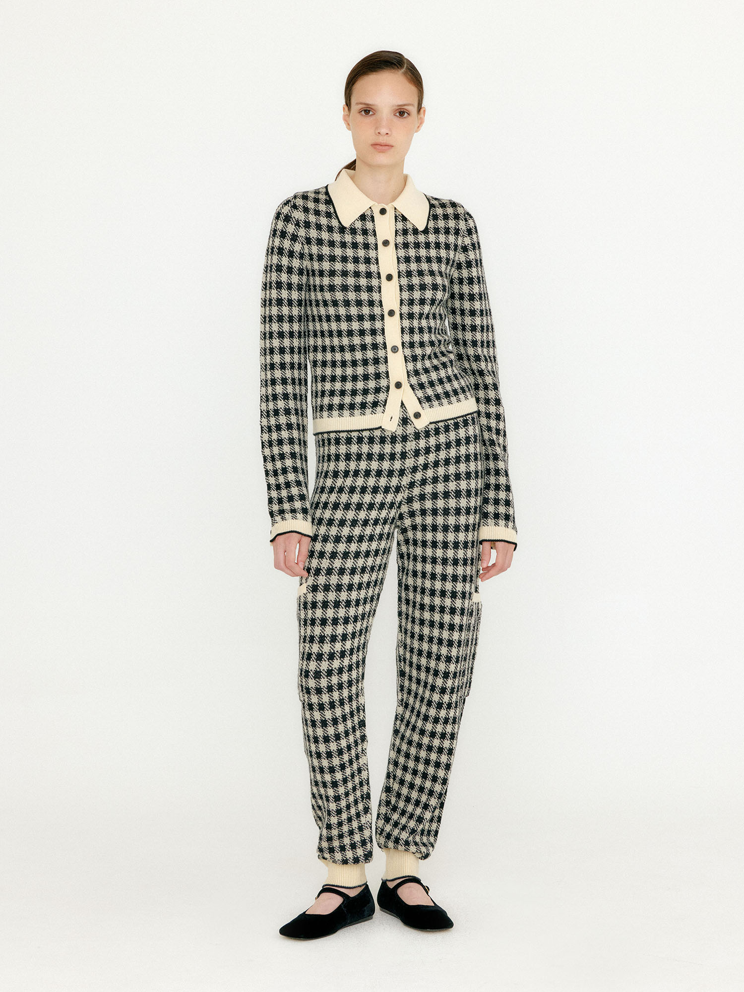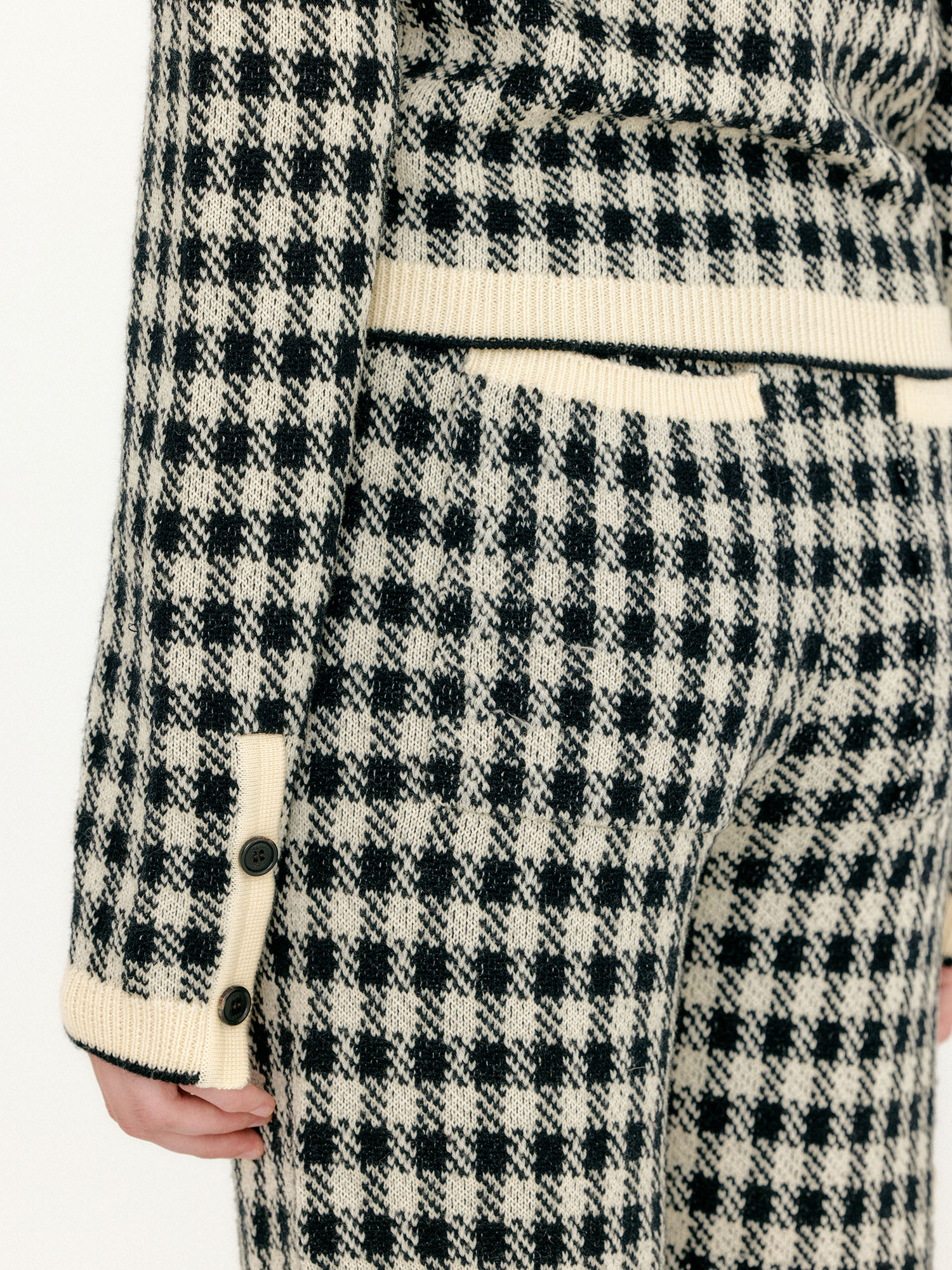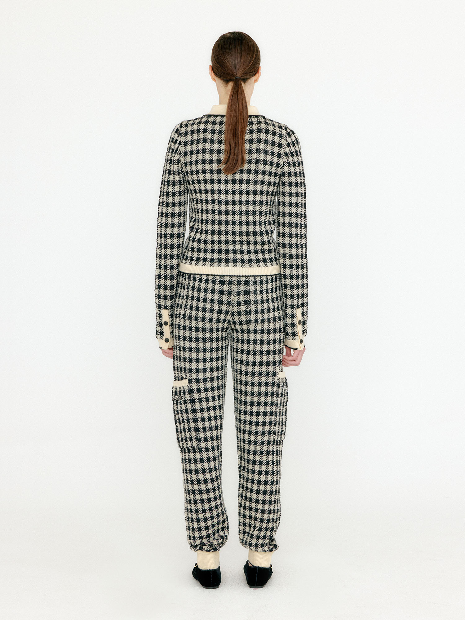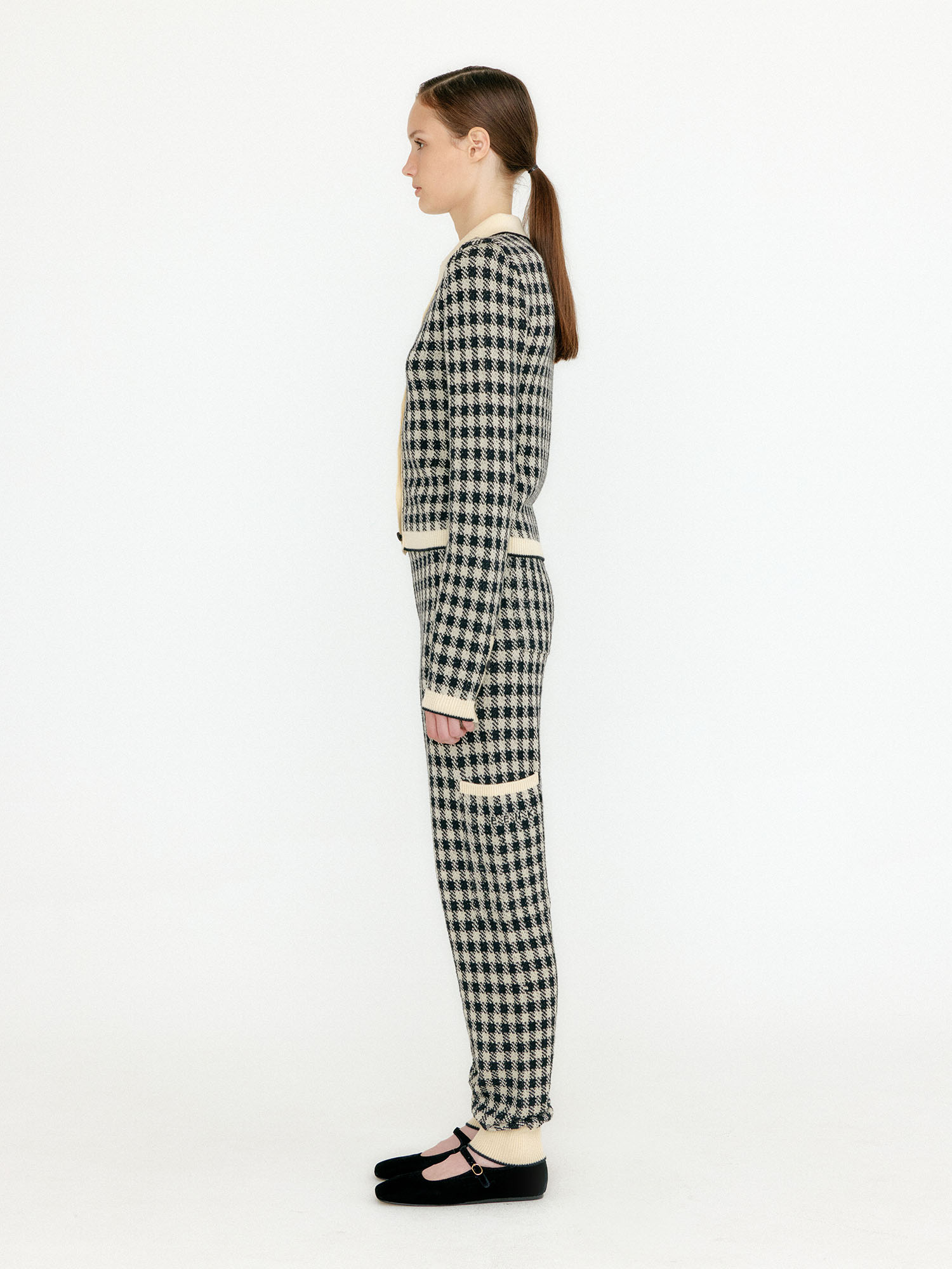 - 체크 패턴의 니트 팬츠입니다.