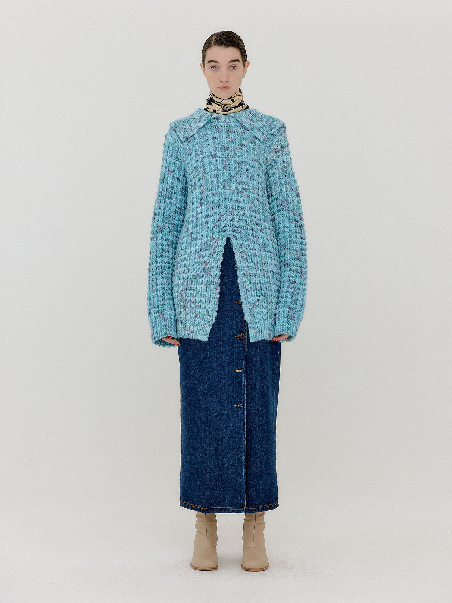 - 라이트 블루 컬러의 풀오버입니다.
