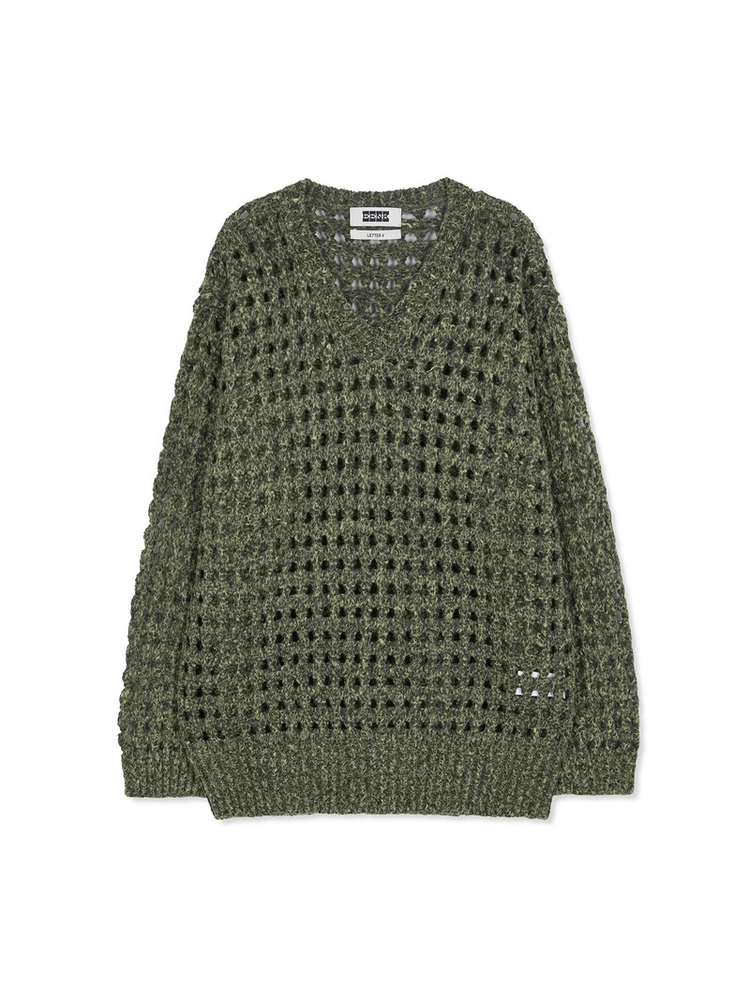 VNET V-Neck Net Knit Pullover - Beige Multi