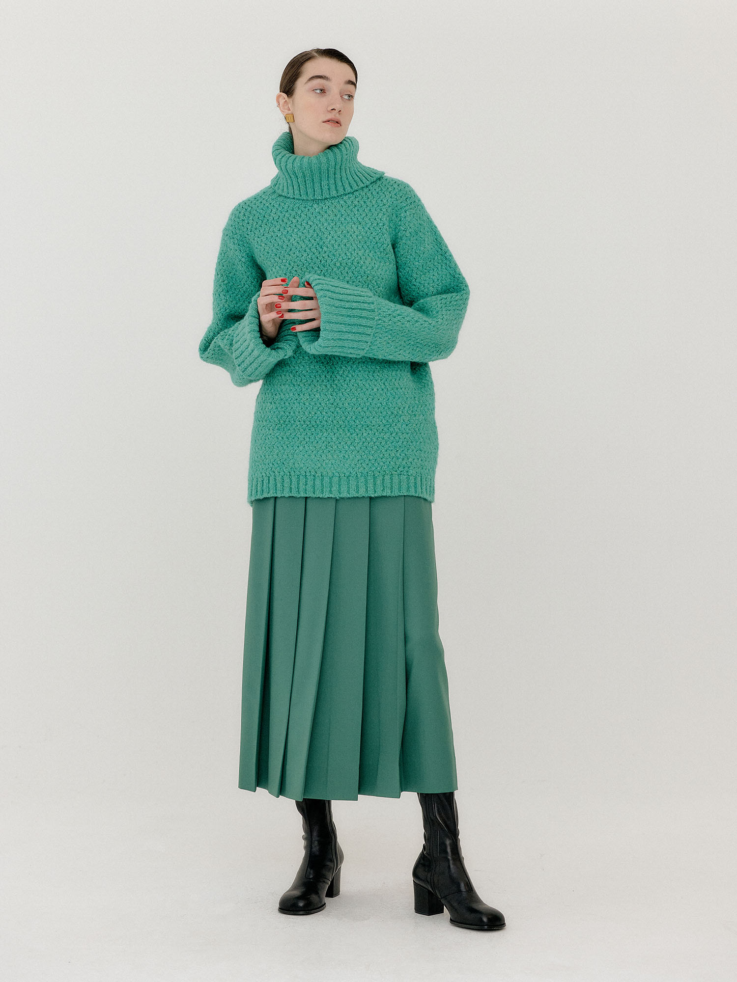 VERIEN Oversized Knit Turtleneck - Green