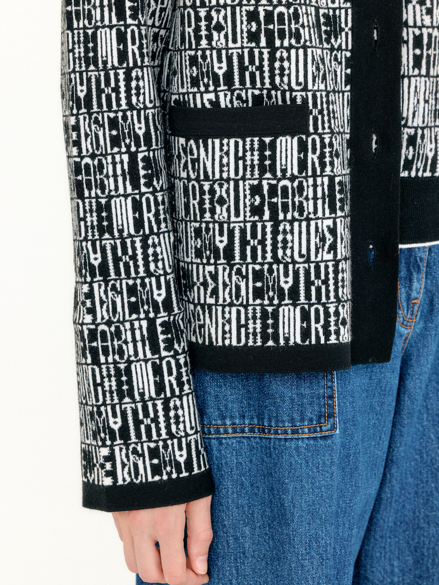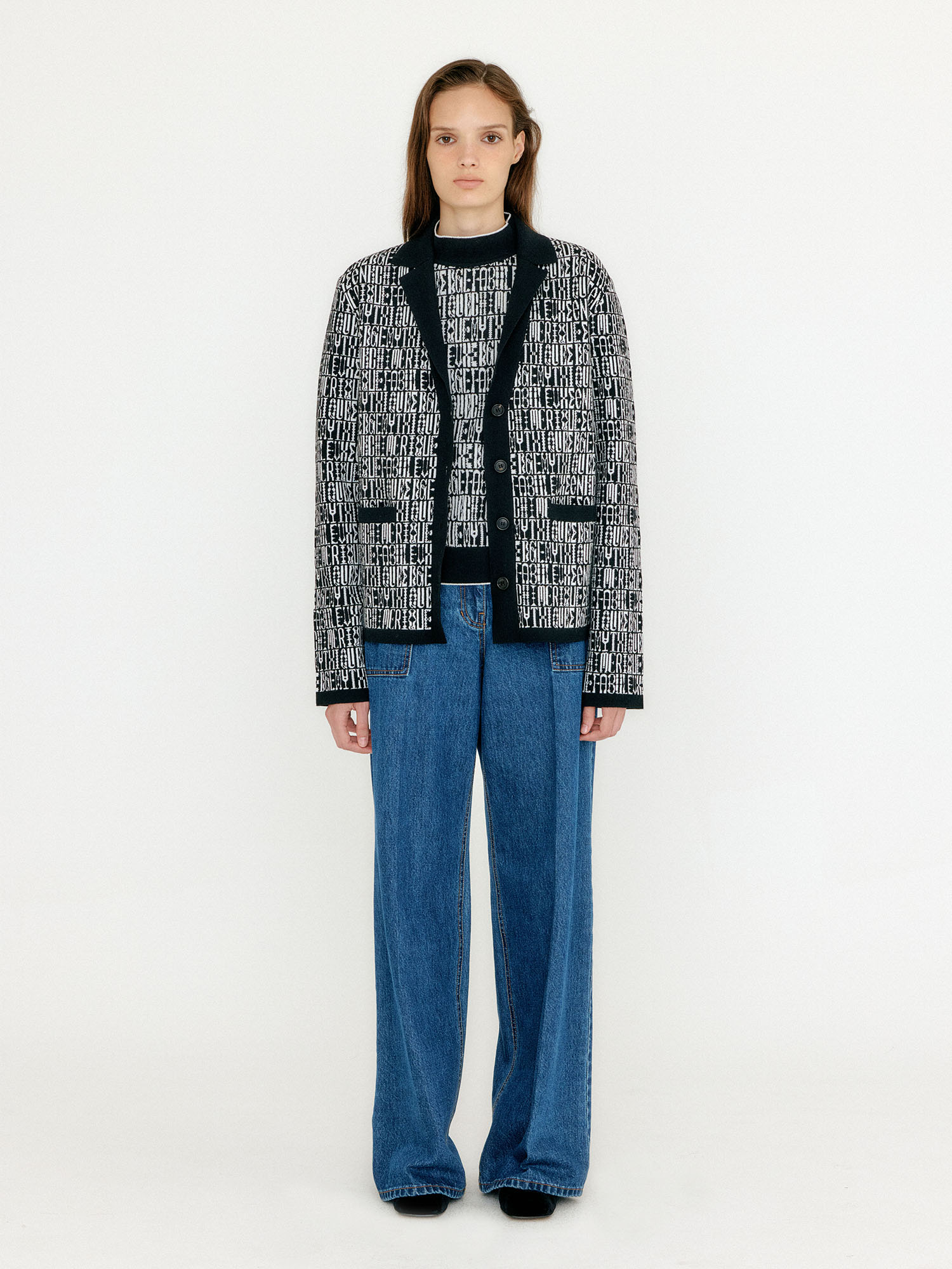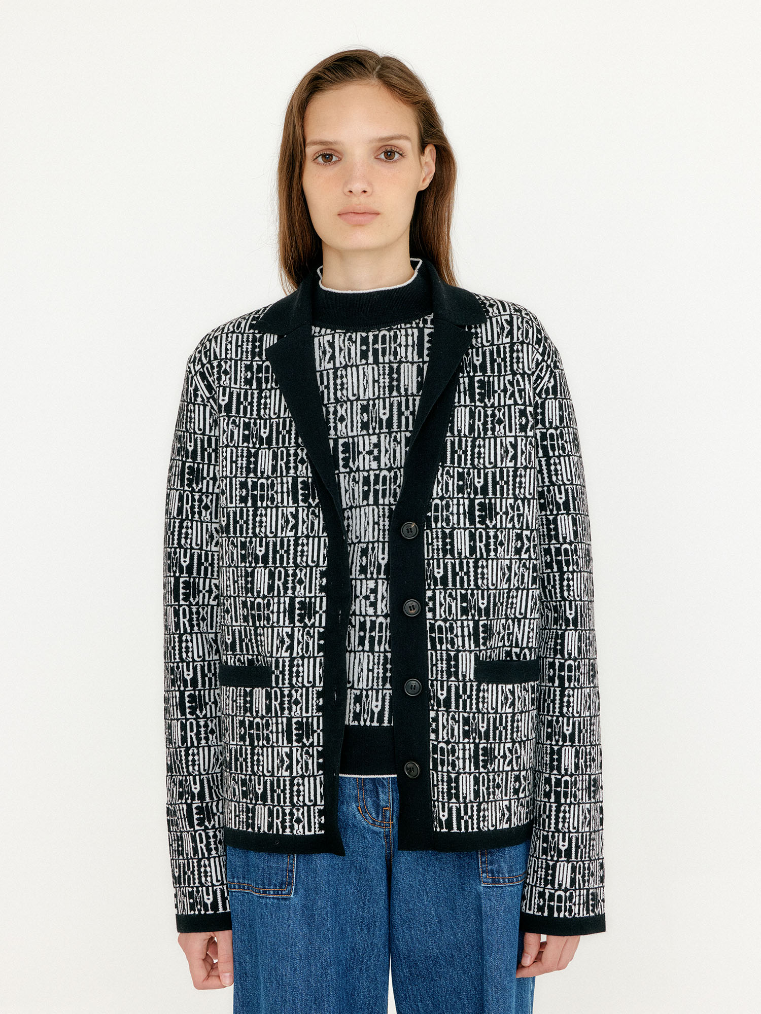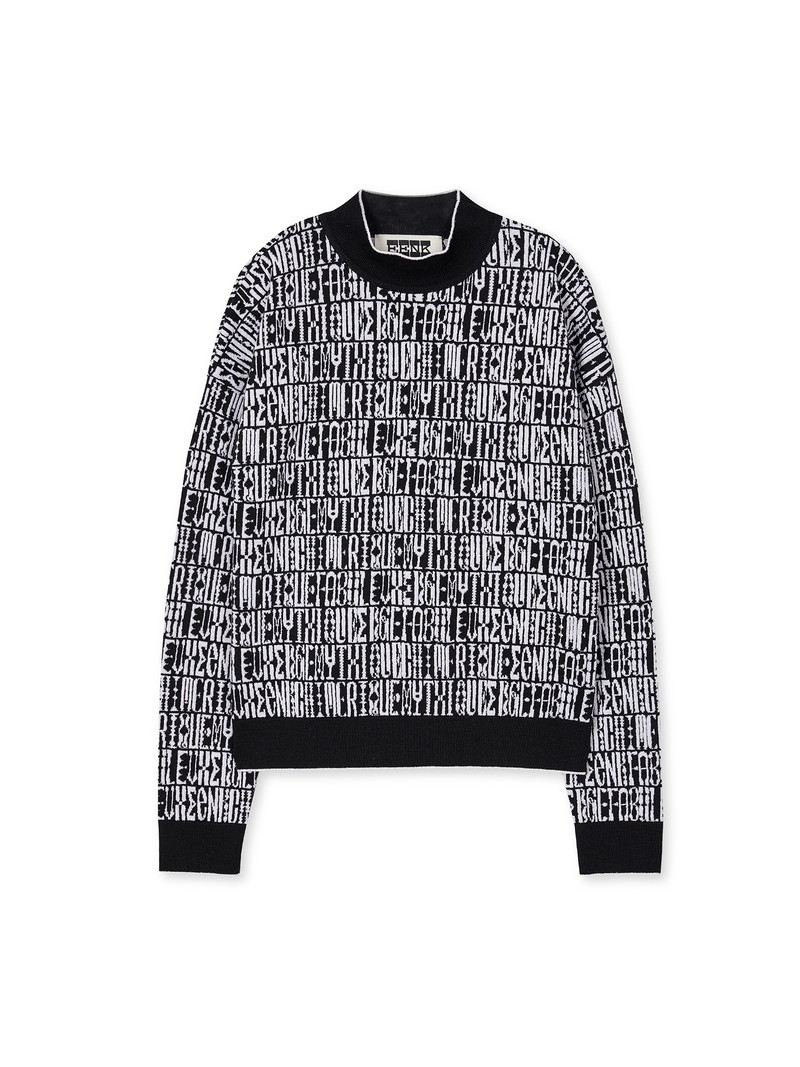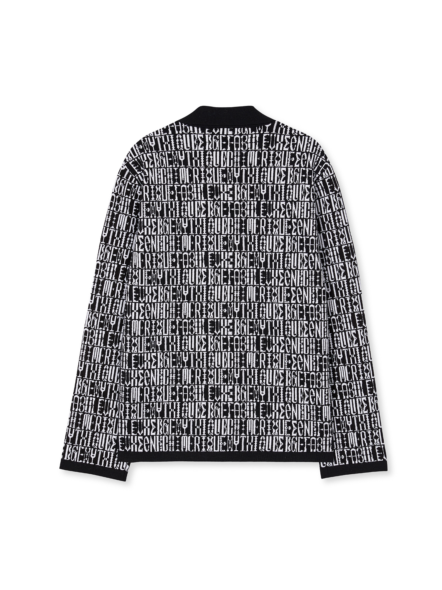 VIBBY Jacquard Pattern High Neck Cardigan - Black/Ivory Multi