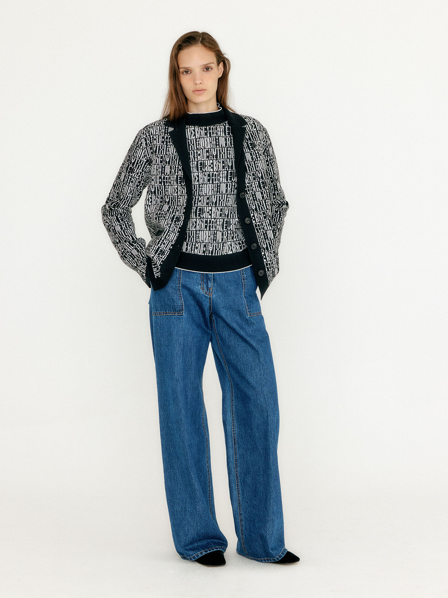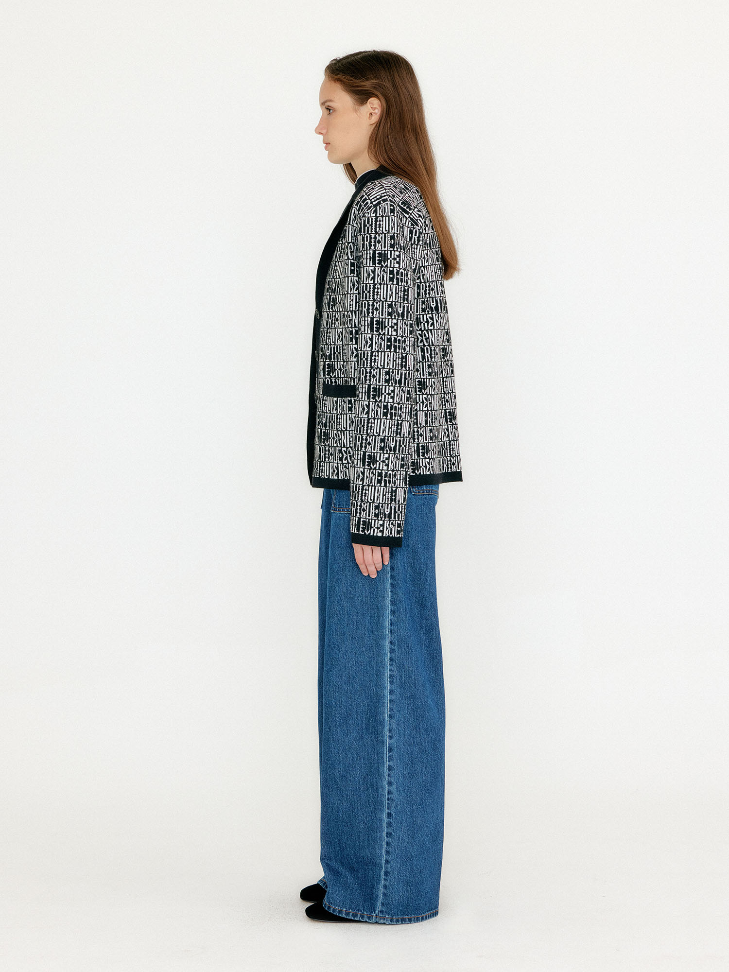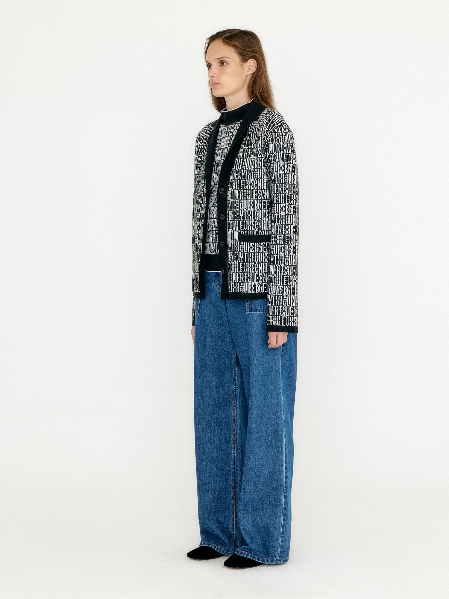 - 레터링 문양의 가디건입니다.