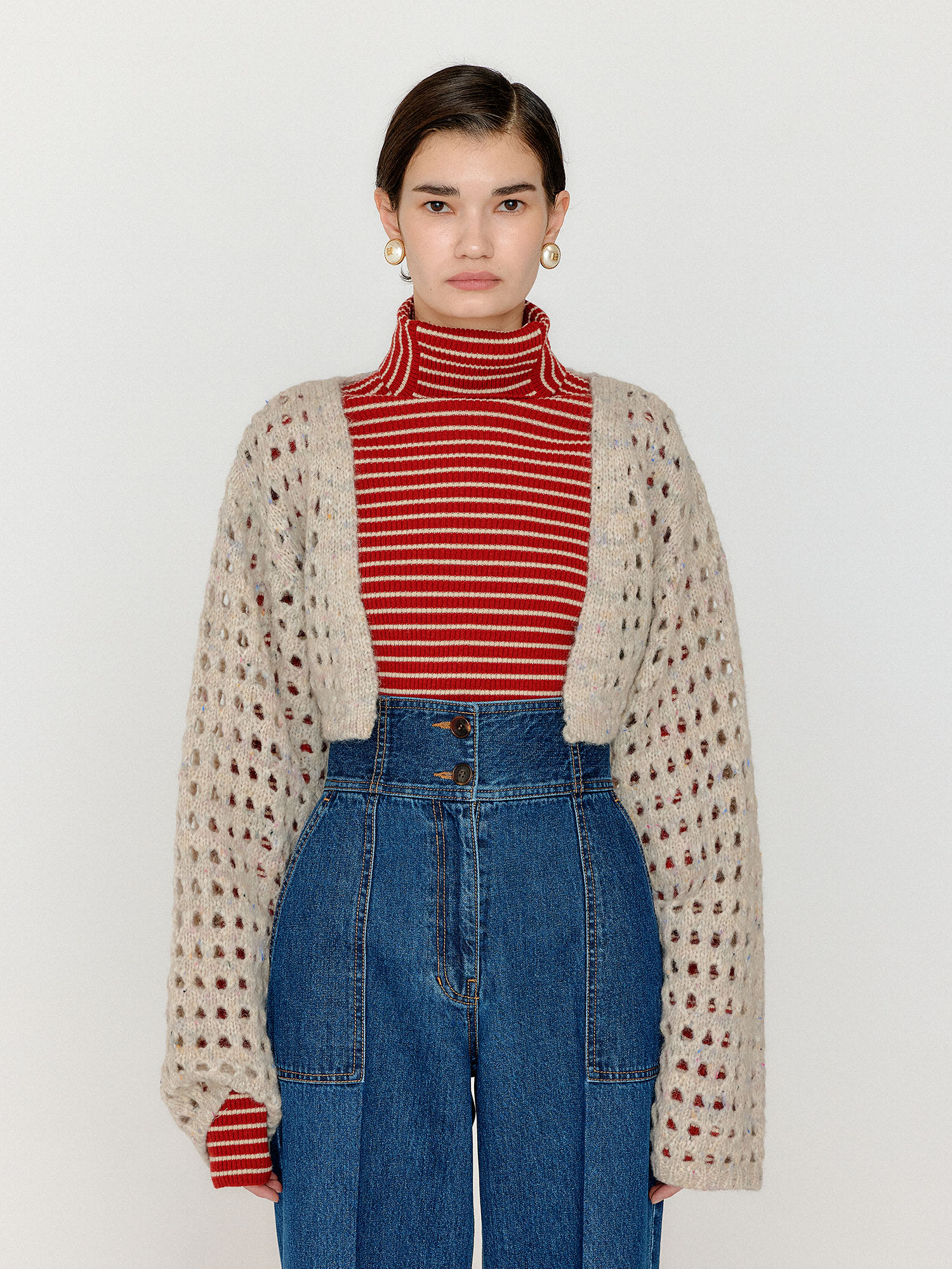 - 베이지 컬러의 볼레로 가디건입니다.