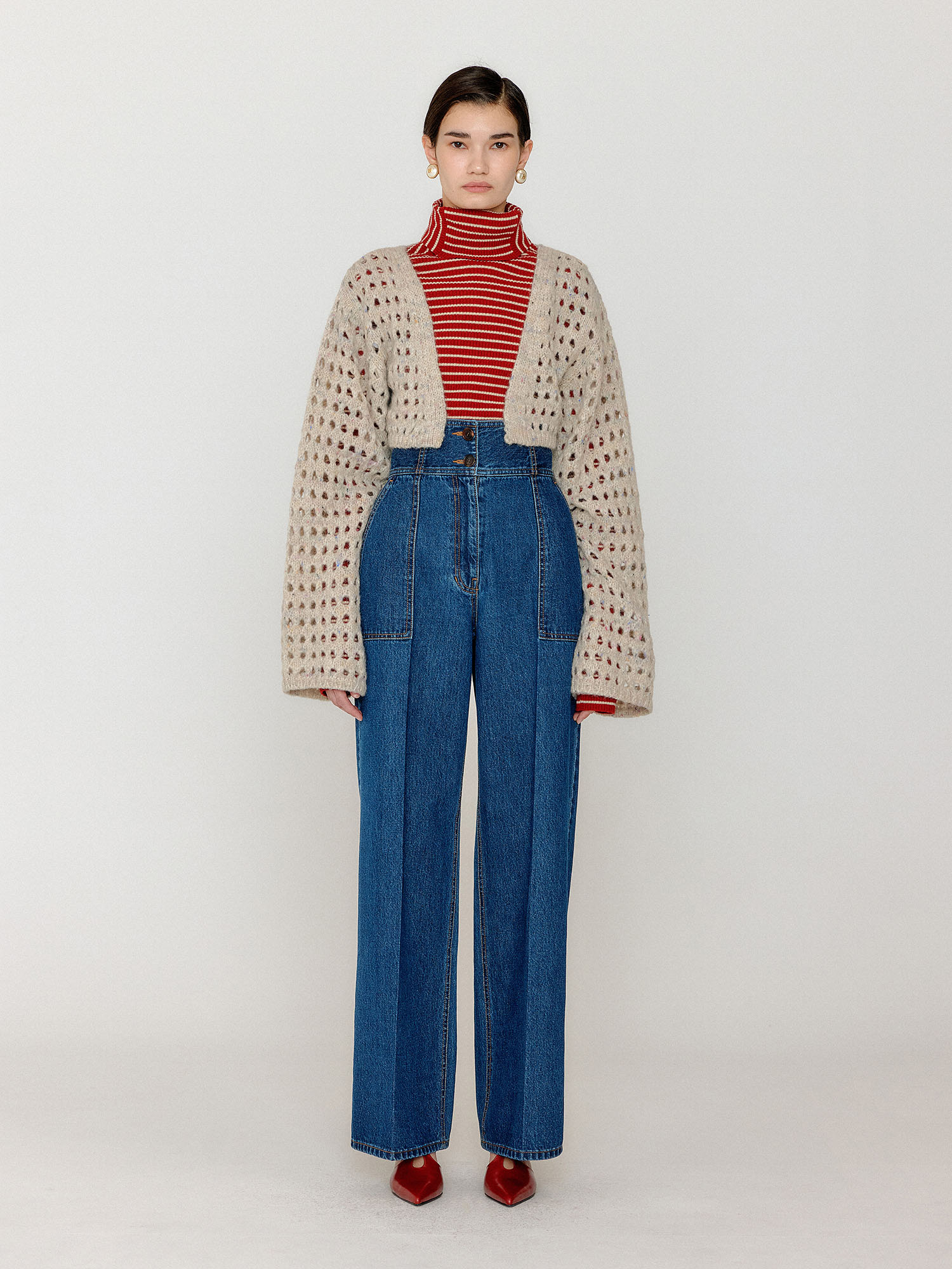 모델이 착용한 제품은 촬영용 샘플이며 S 사이즈 기준으로 제작되었으나 실제 제품과는 기장 및 상세 사이즈 차이가 있습니다. 정확한 사이즈는 상세페이지에 안내된 실측 사이즈를 참고해 주시기 바랍니다.