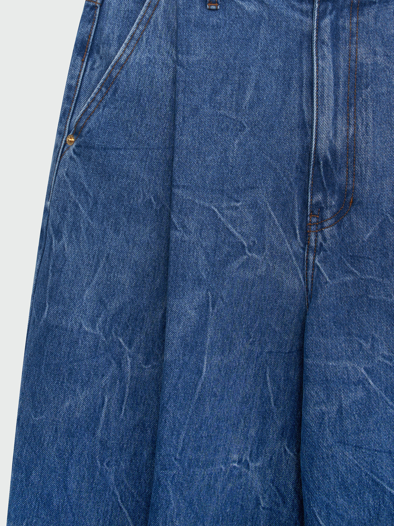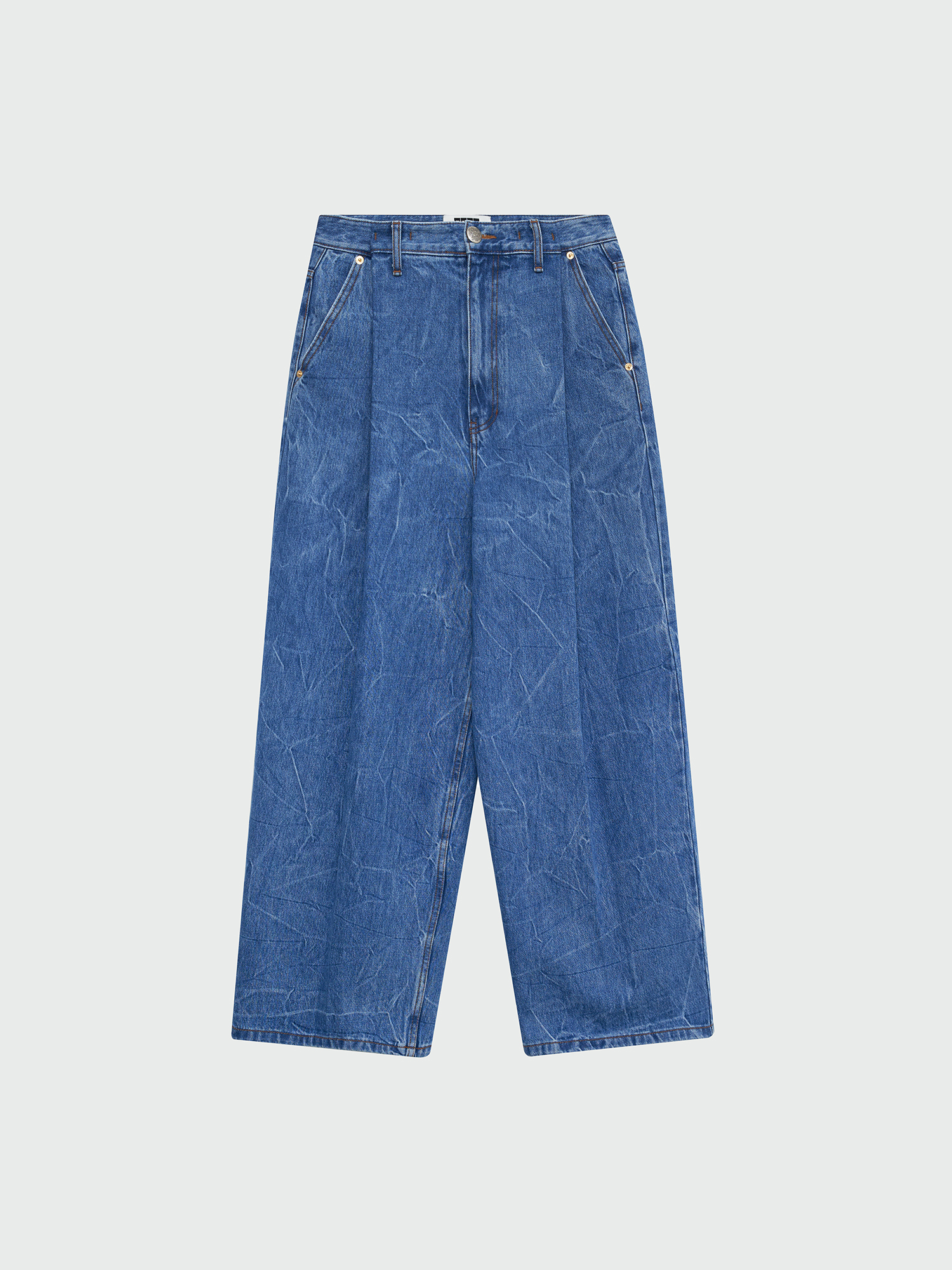 WJEAN Folded Front Wide Denim Pants - Denim Blue