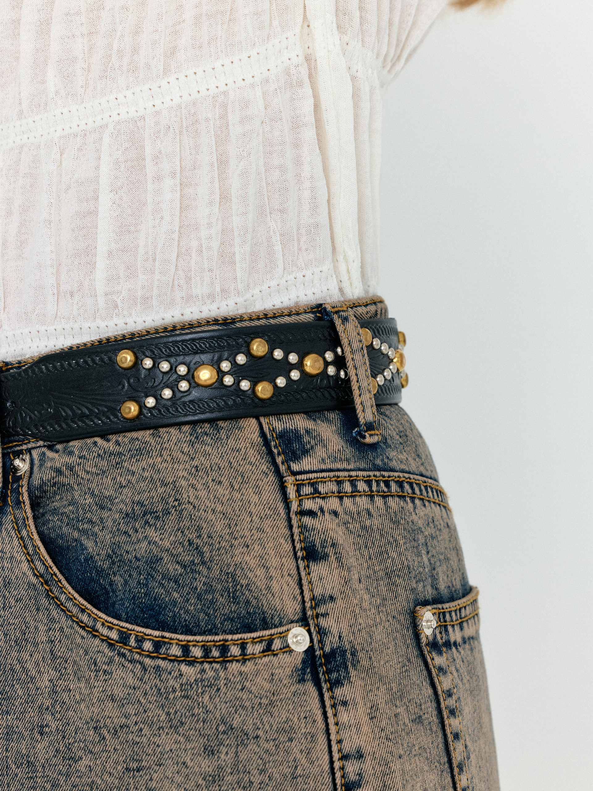 - 데님에 은은한 워싱 디테일을 주었습니다.