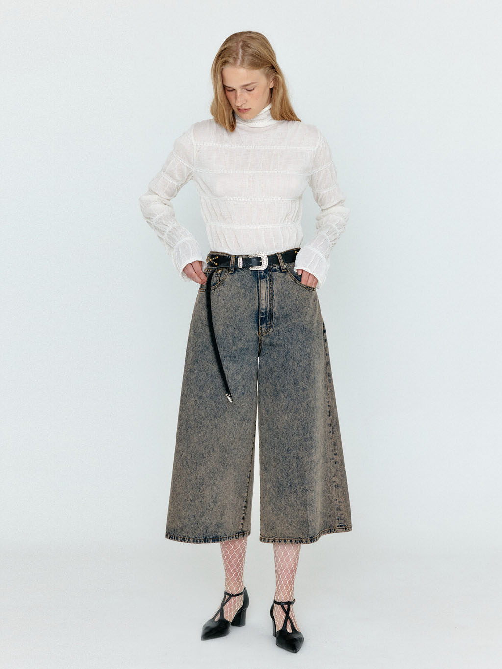 - 와이드한 실루엣에 크롭한 기장감이 특징입니다.
