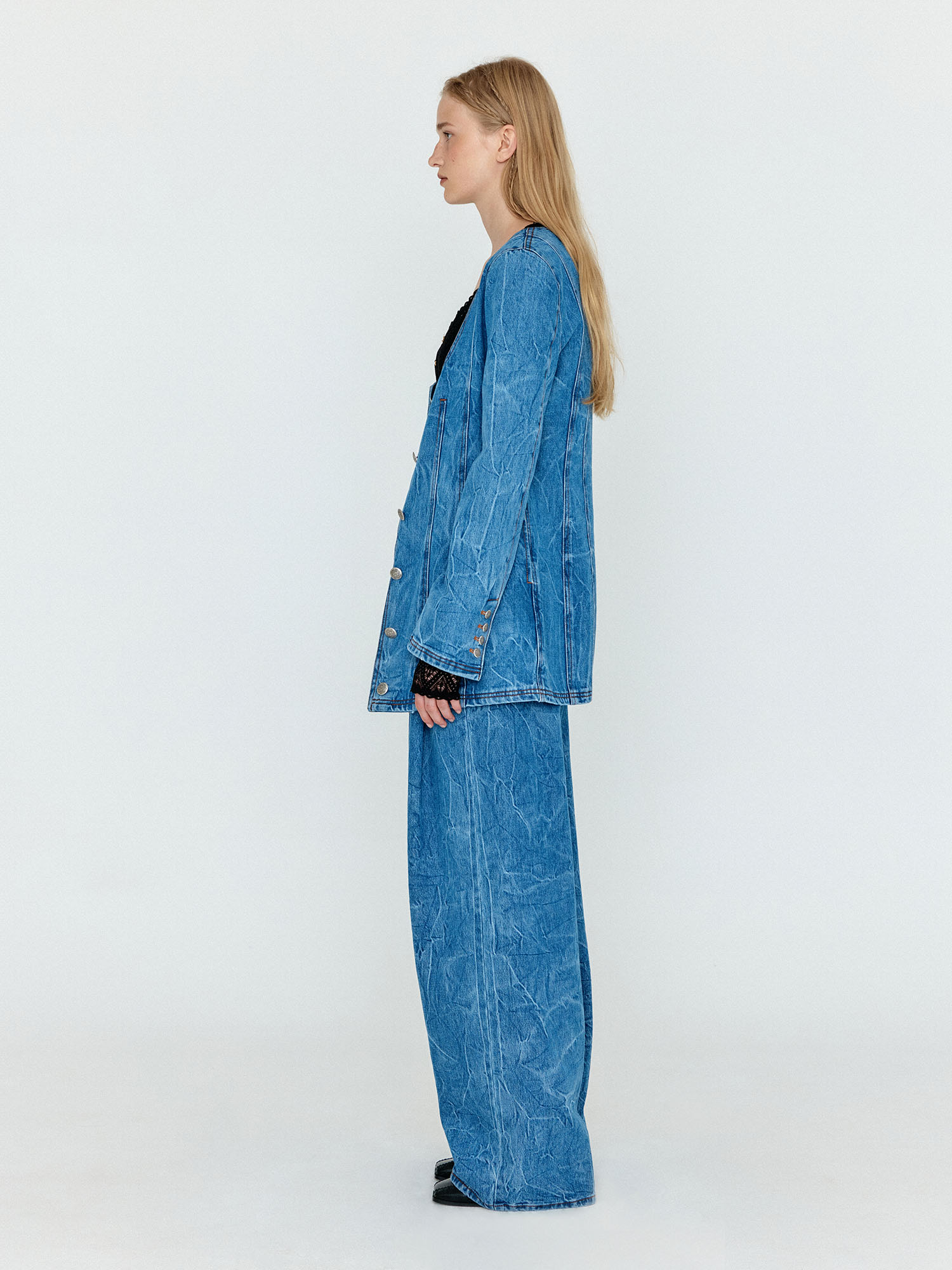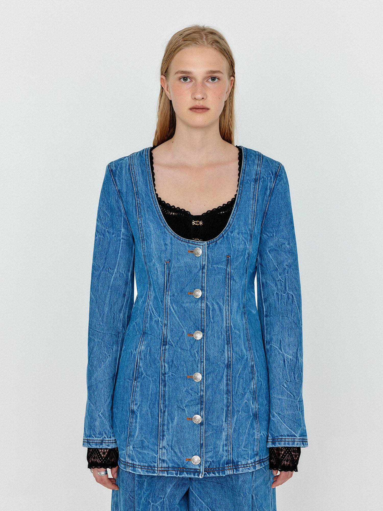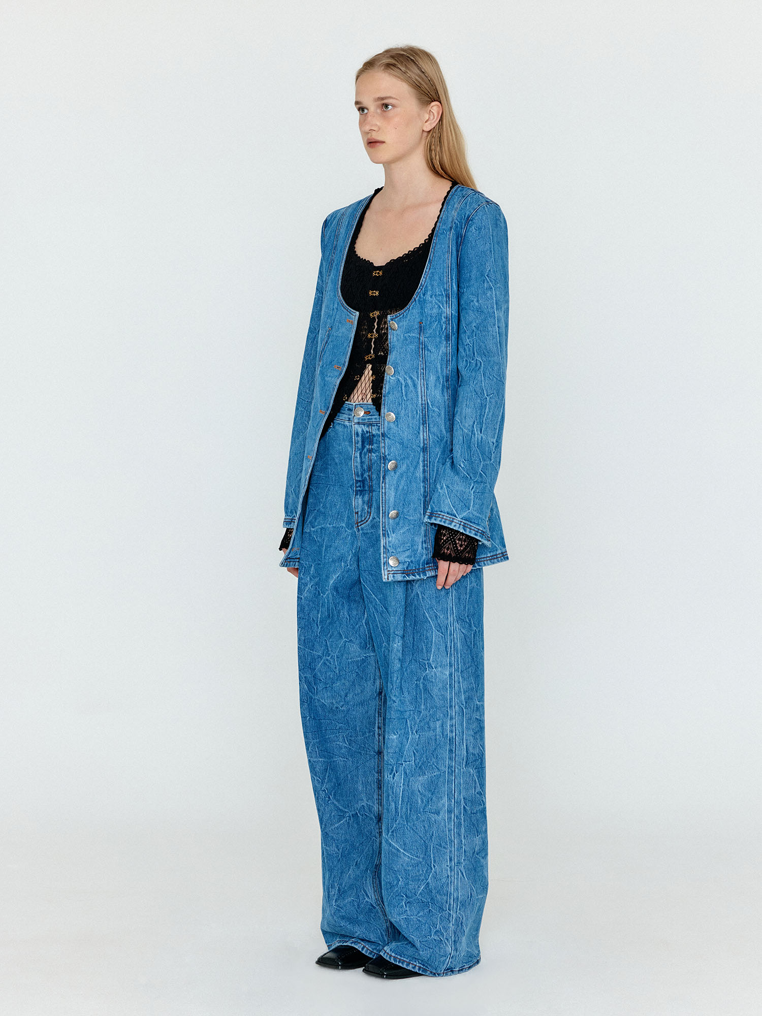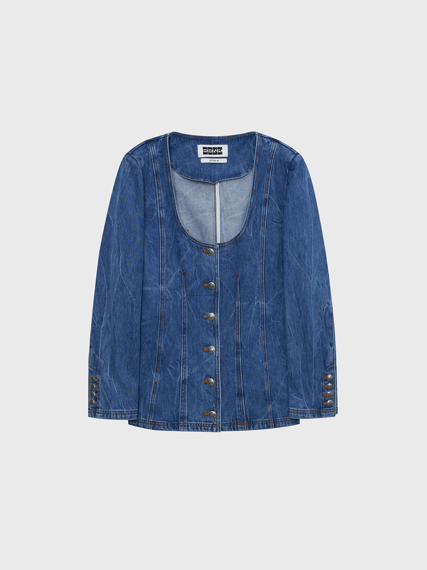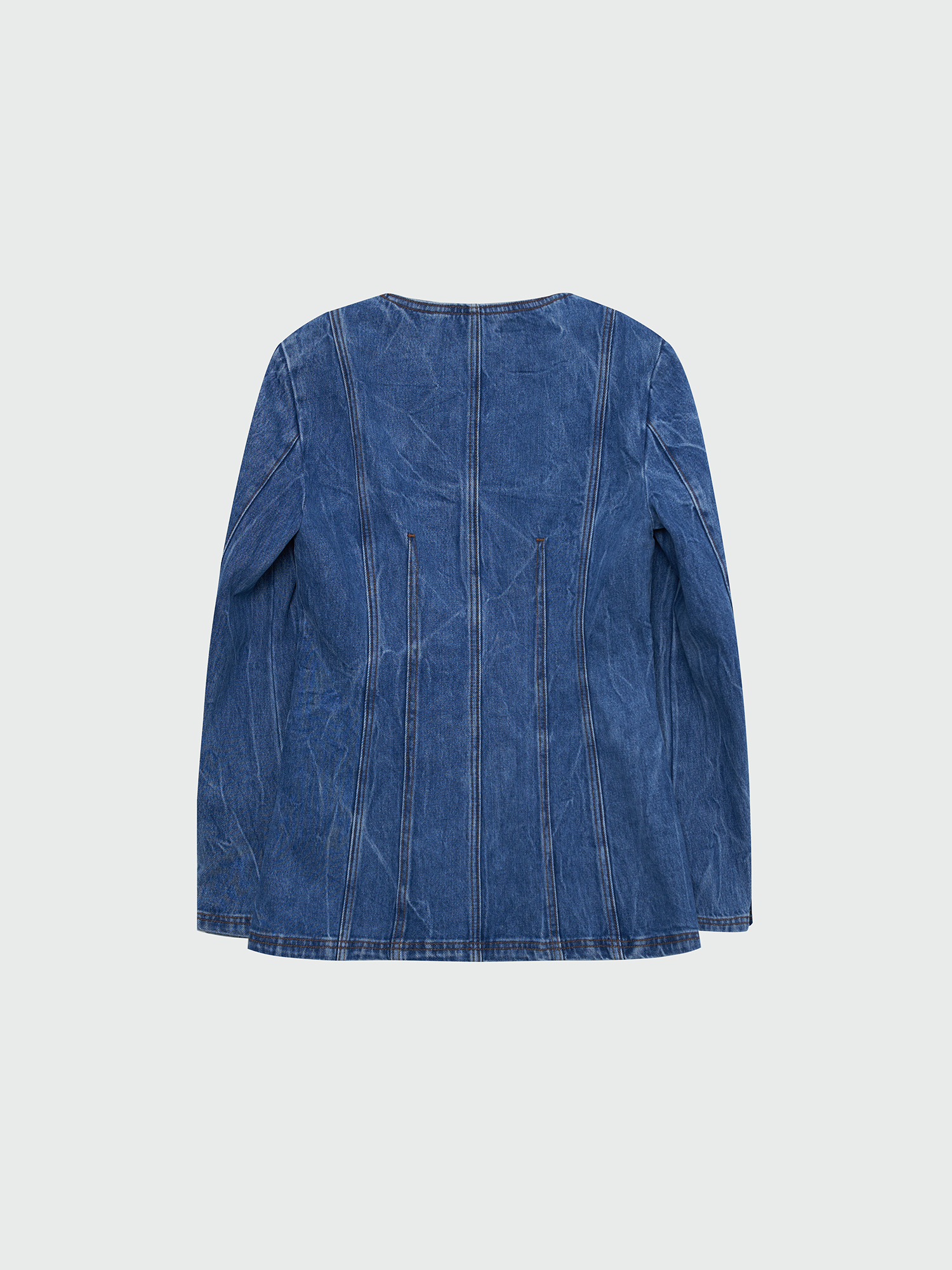 WEVIS U-Neck Denim Jacket - Denim Blue