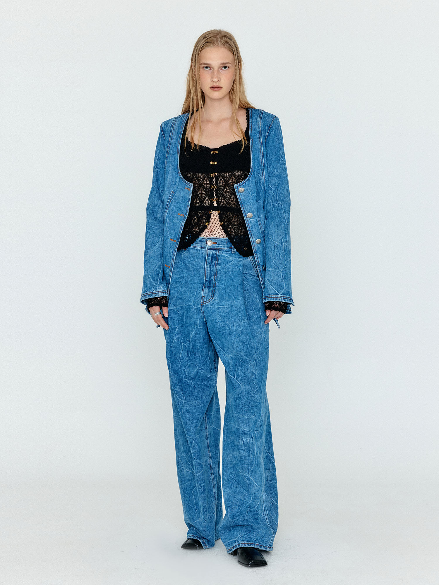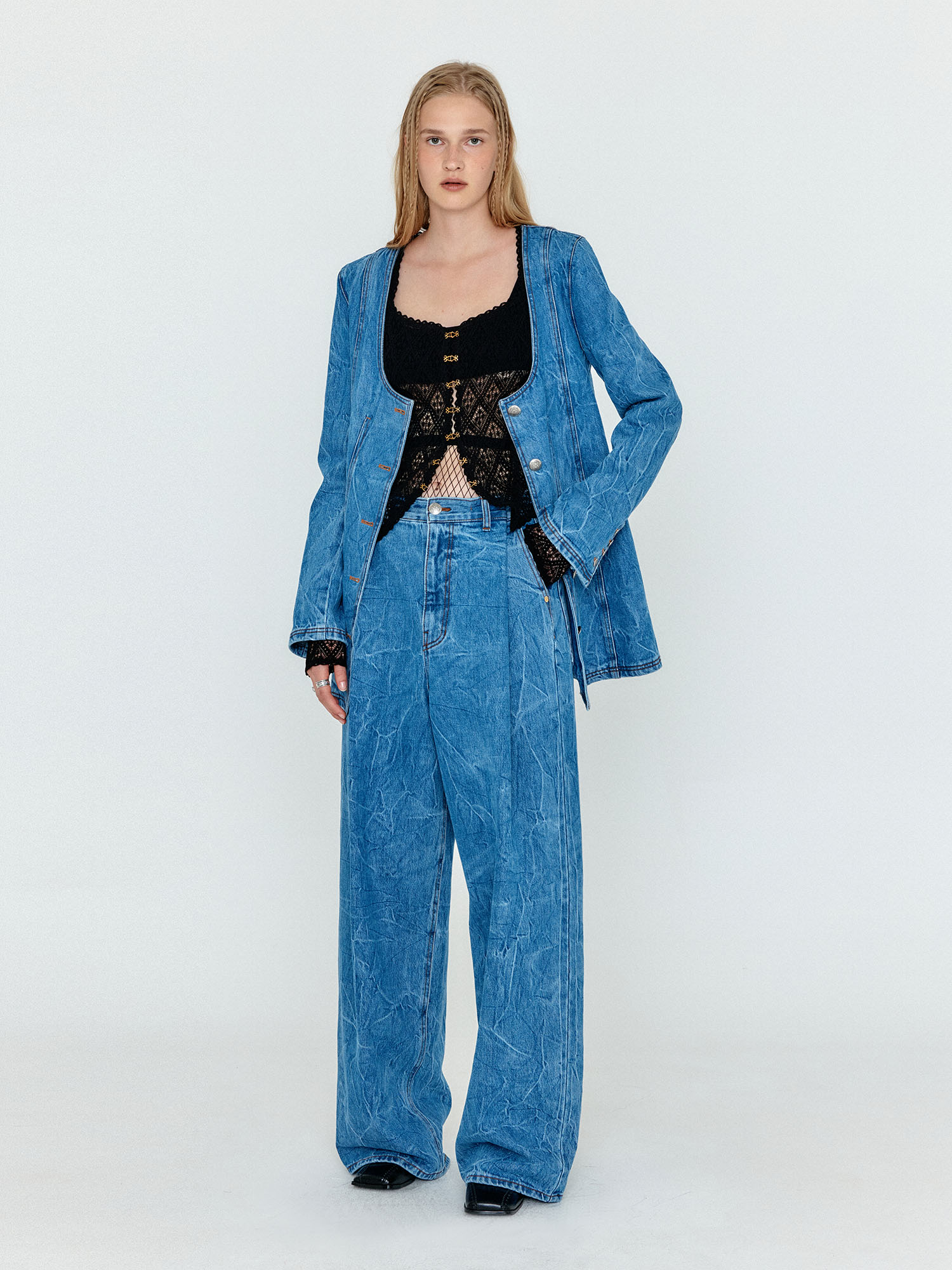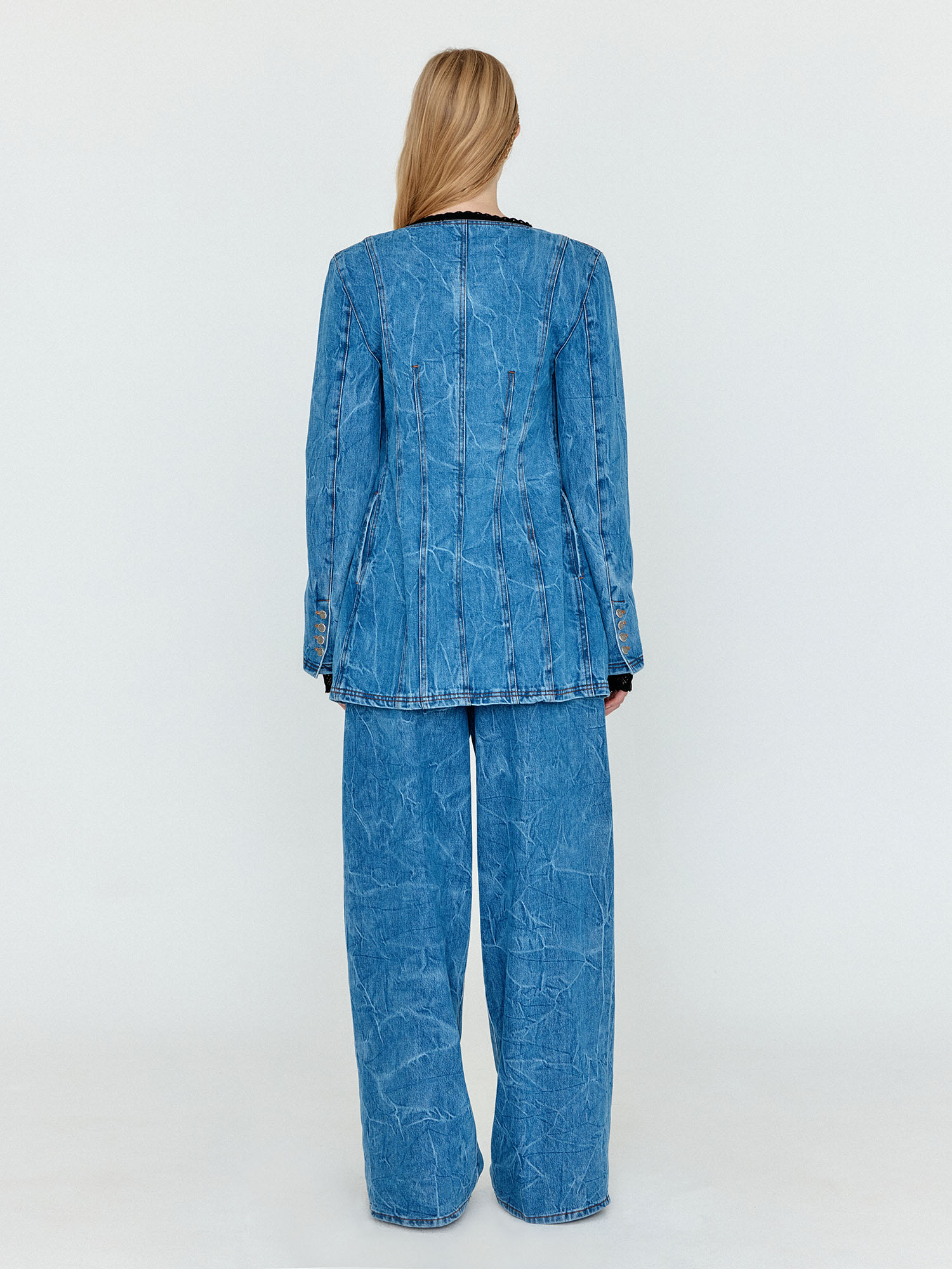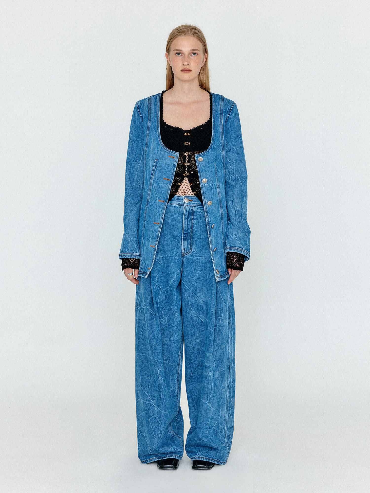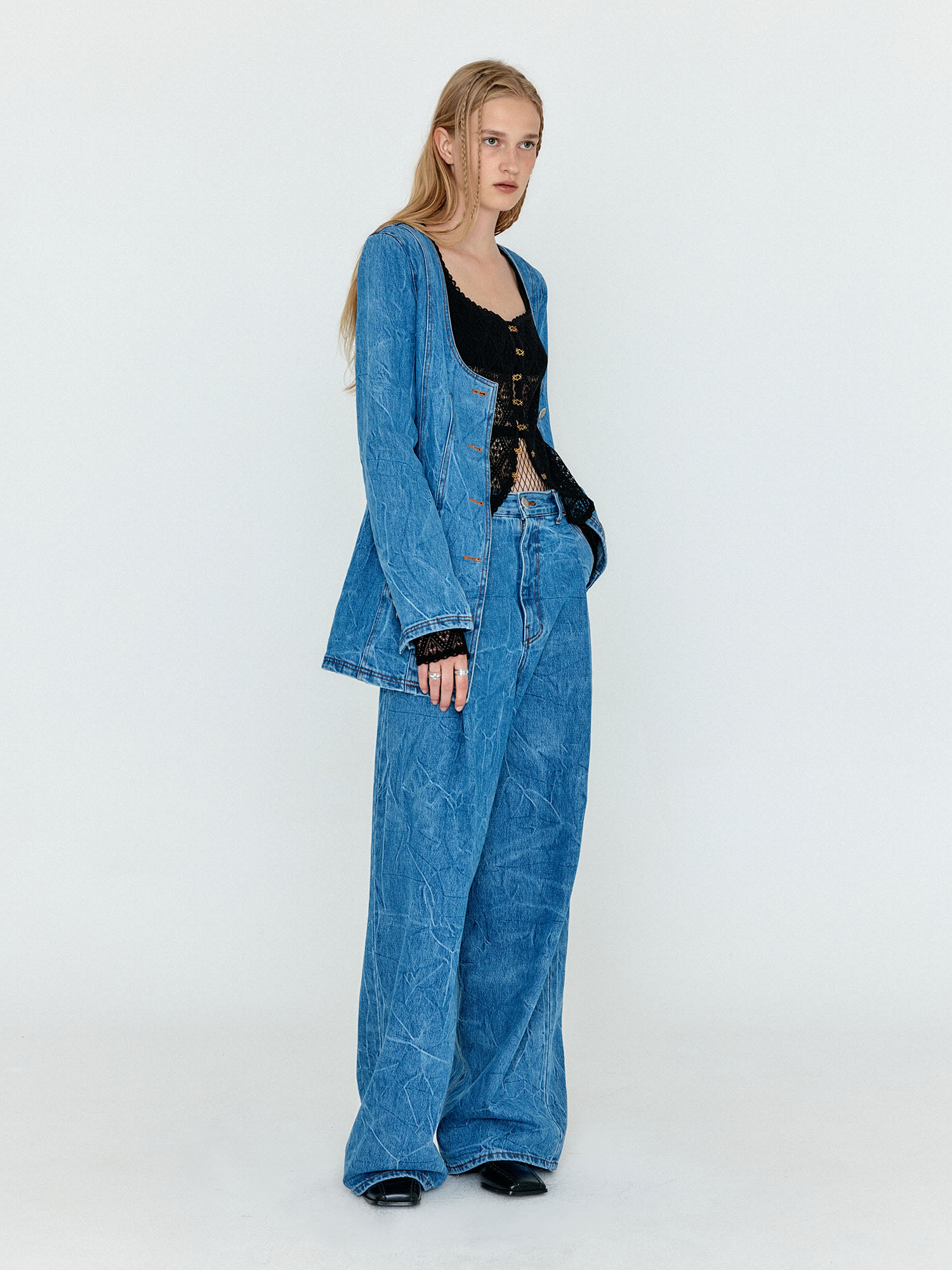WEVIS U-Neck Denim Jacket - Denim Blue