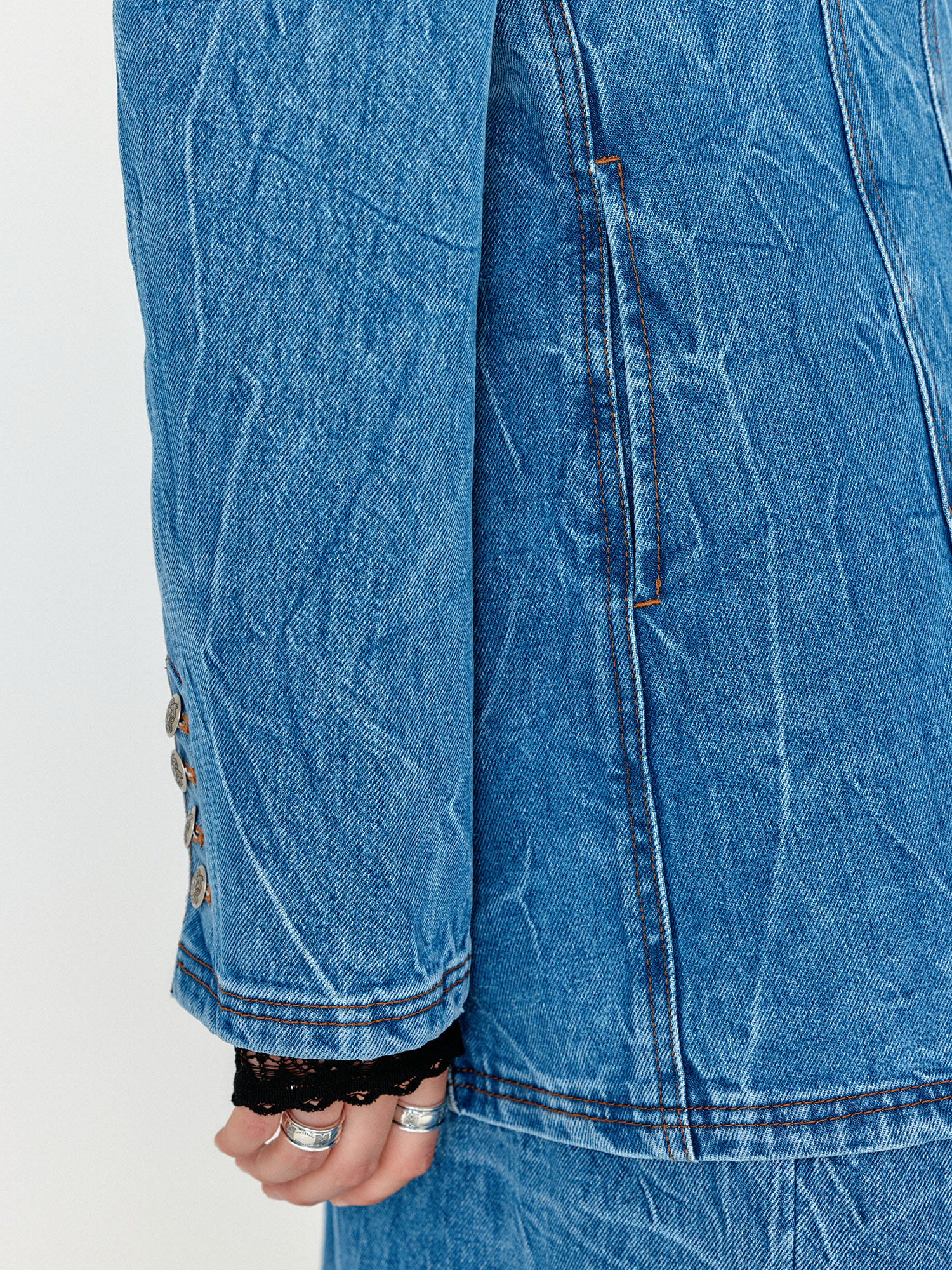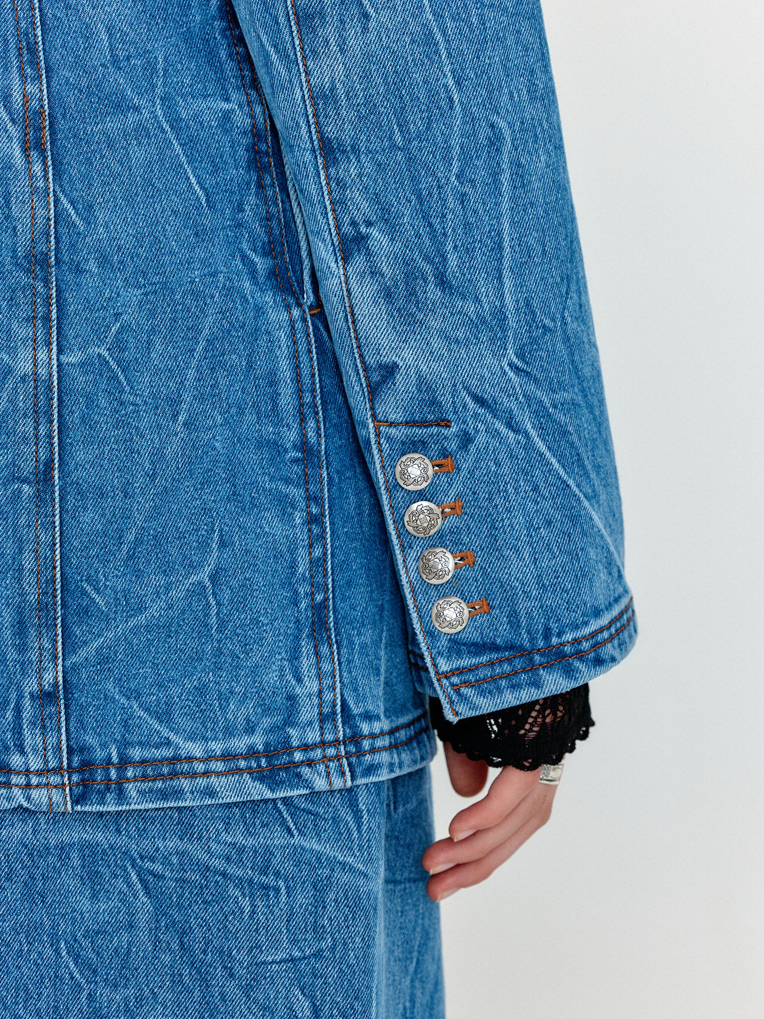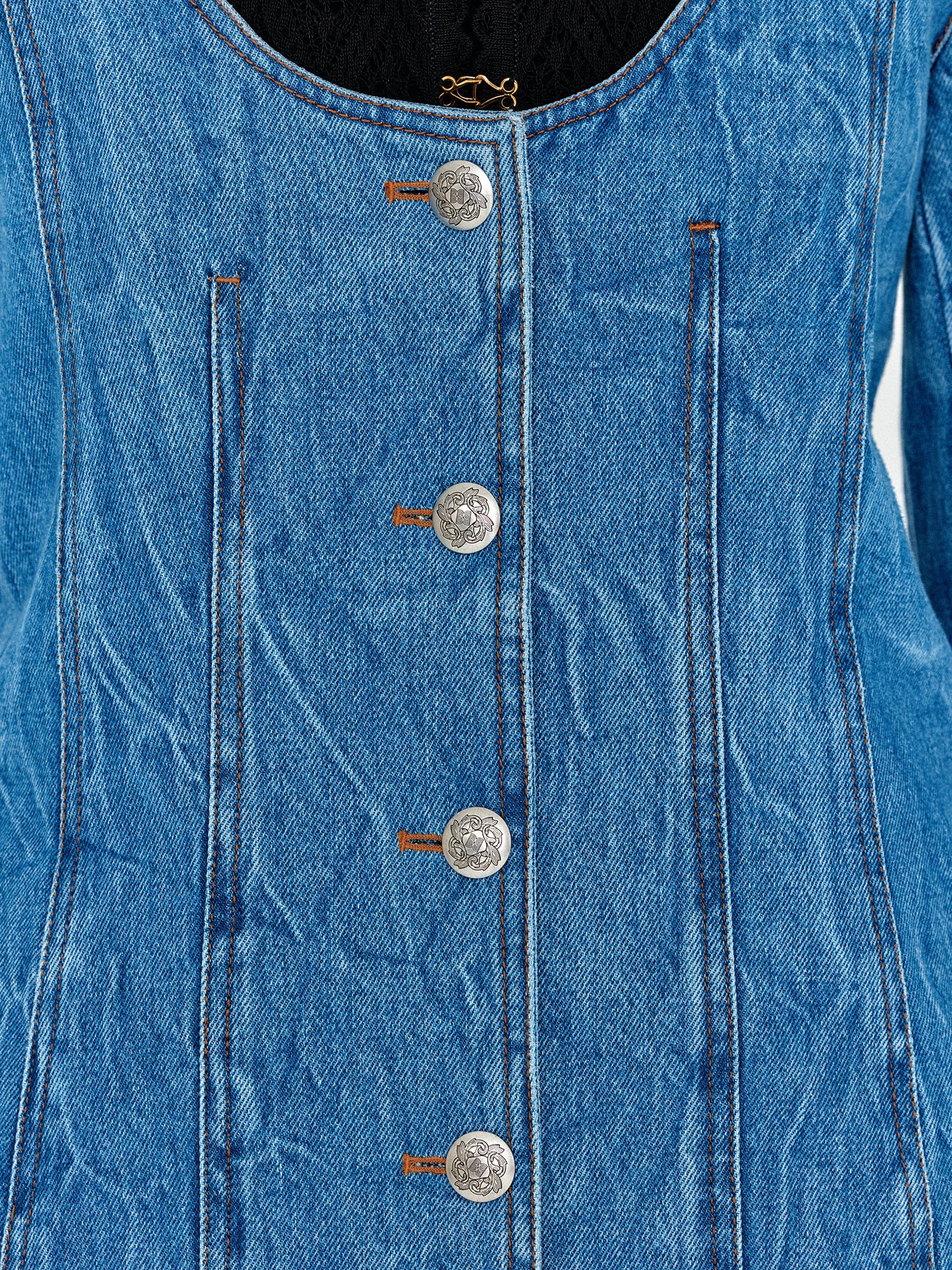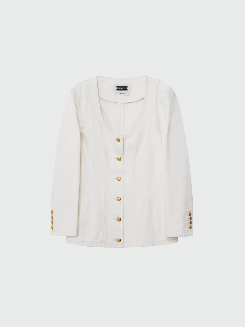 - 코튼 100% 소재의 라운드넥 데님자켓입니다.