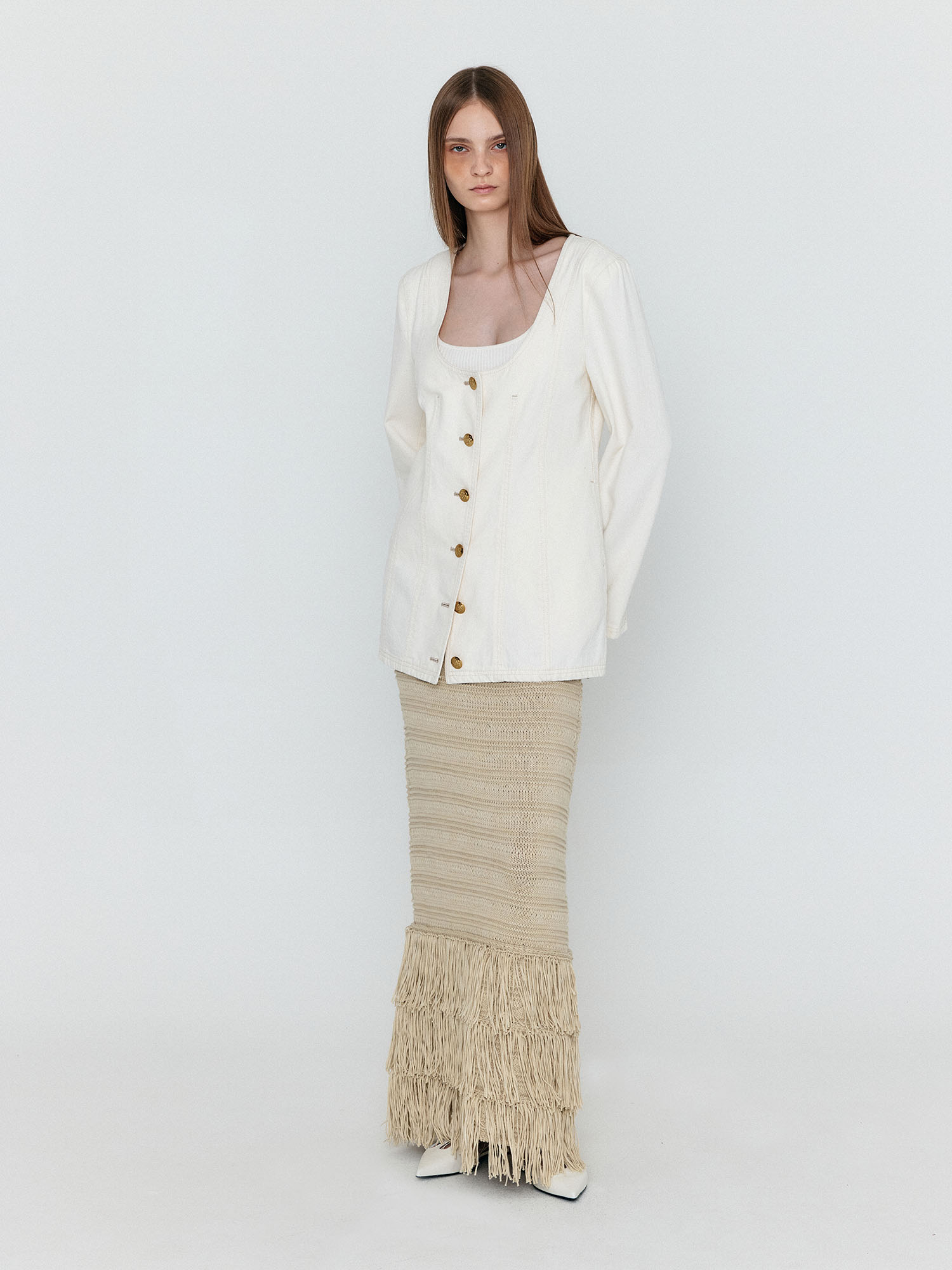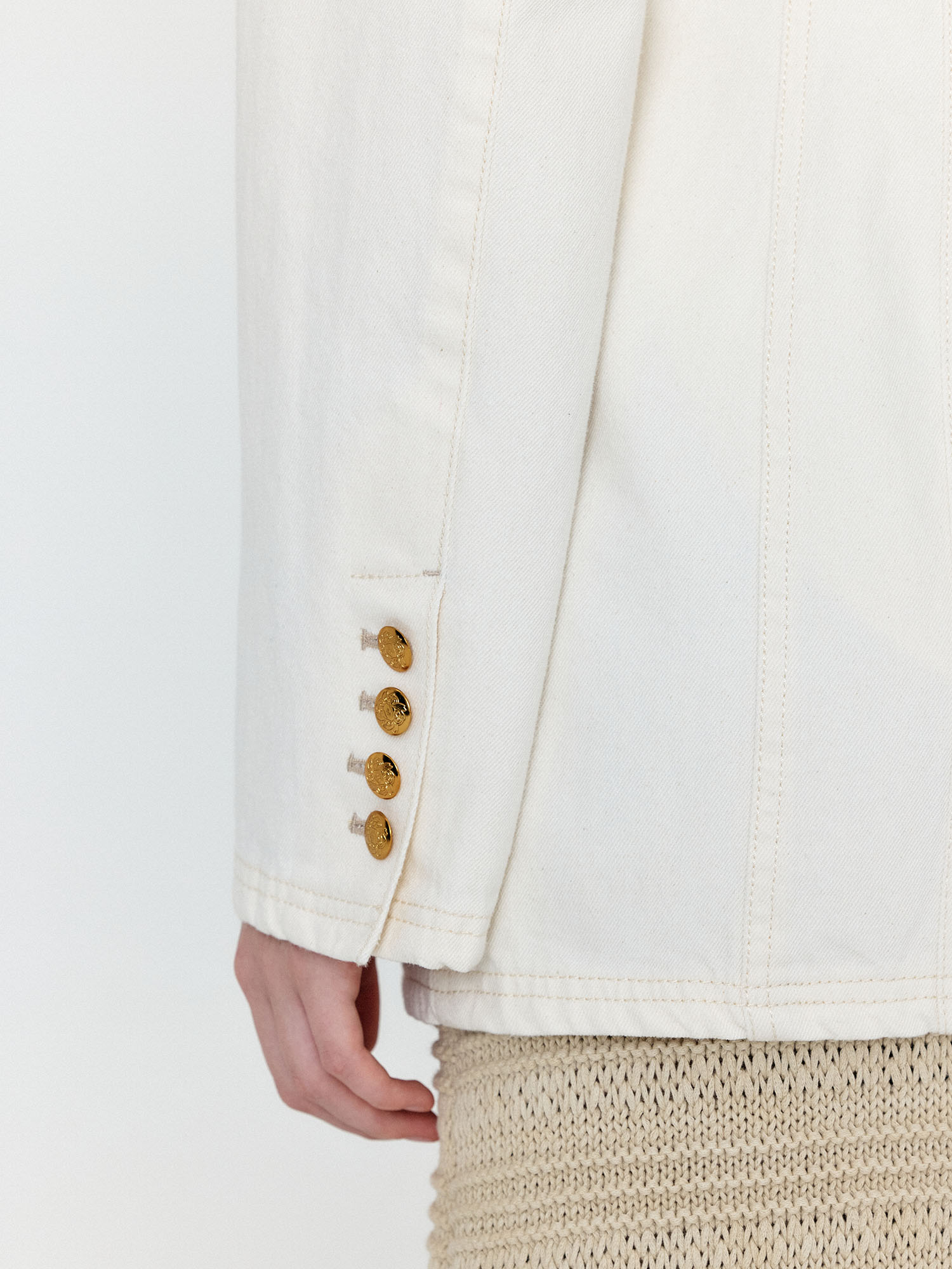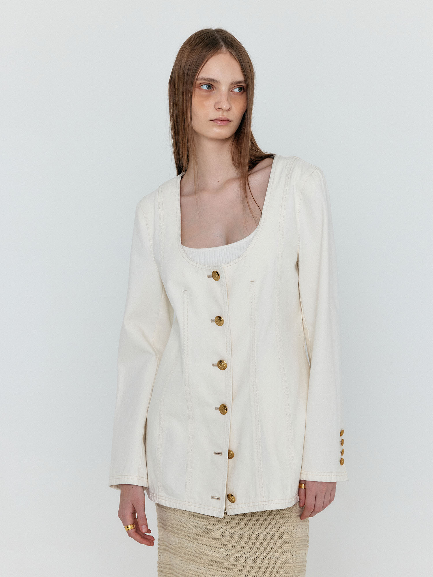 - 코튼 100% 소재의 라운드넥 데님자켓입니다.
