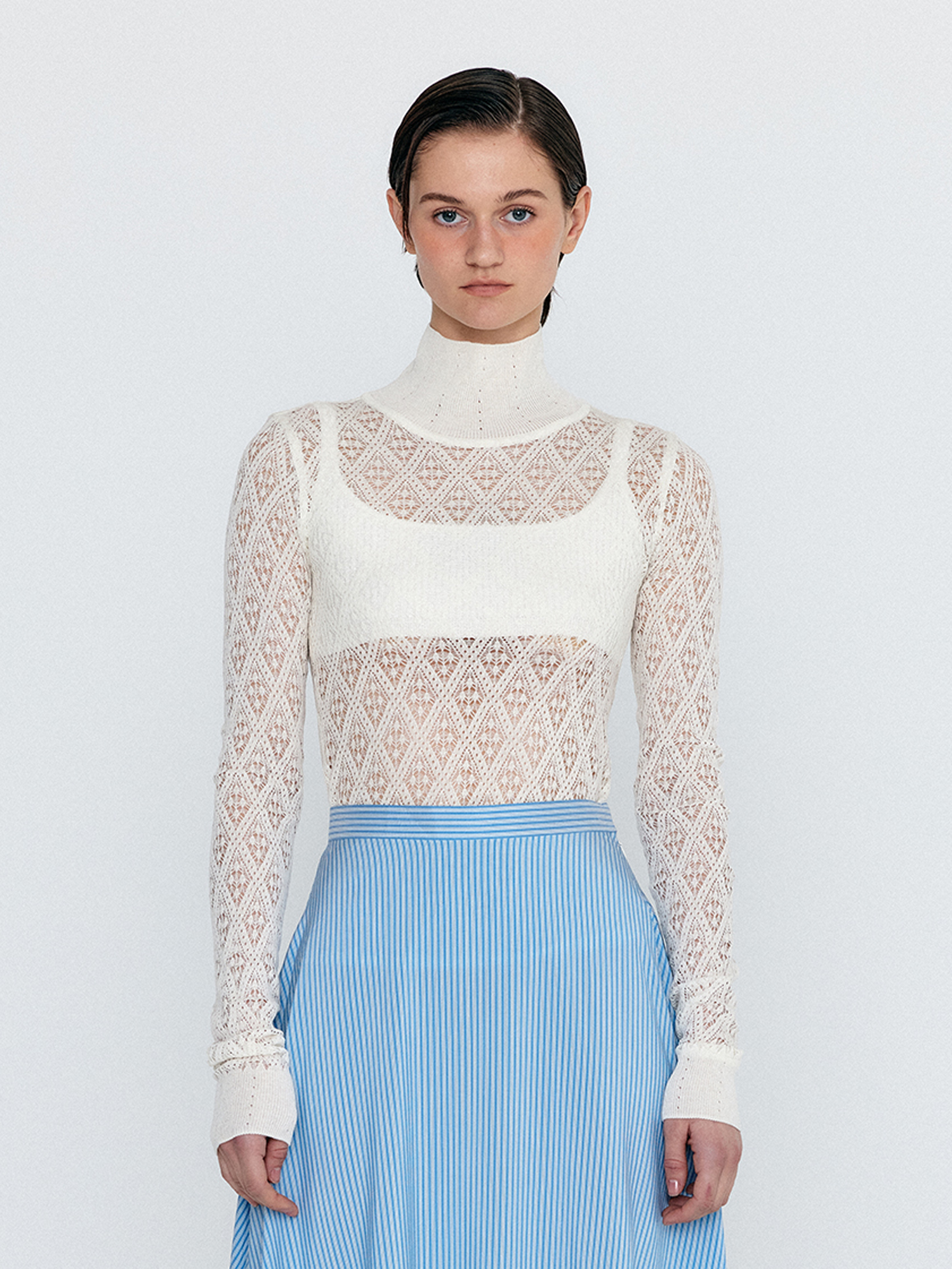 - 아크릴 100% 소재의 시스루 니트탑입니다.