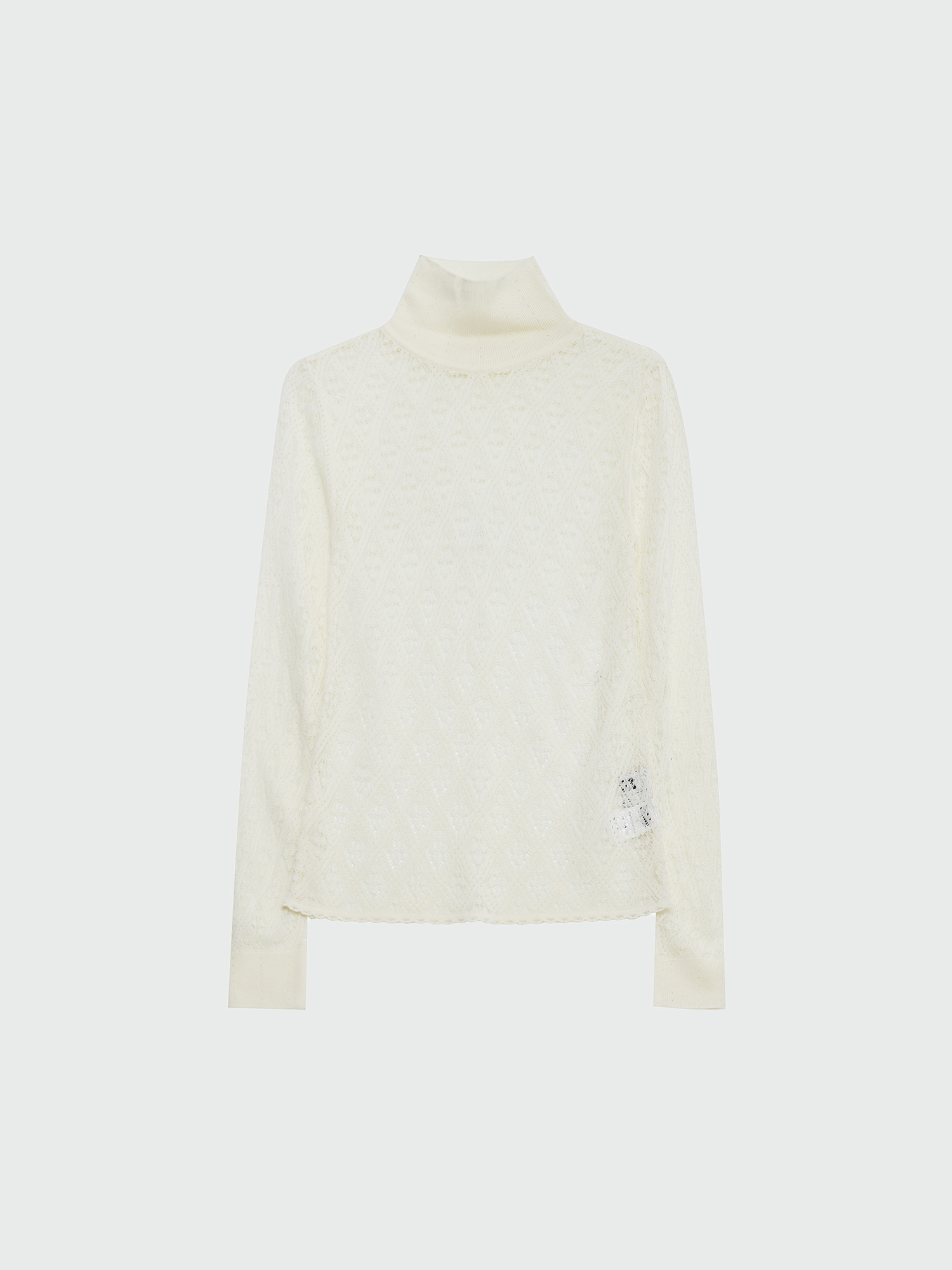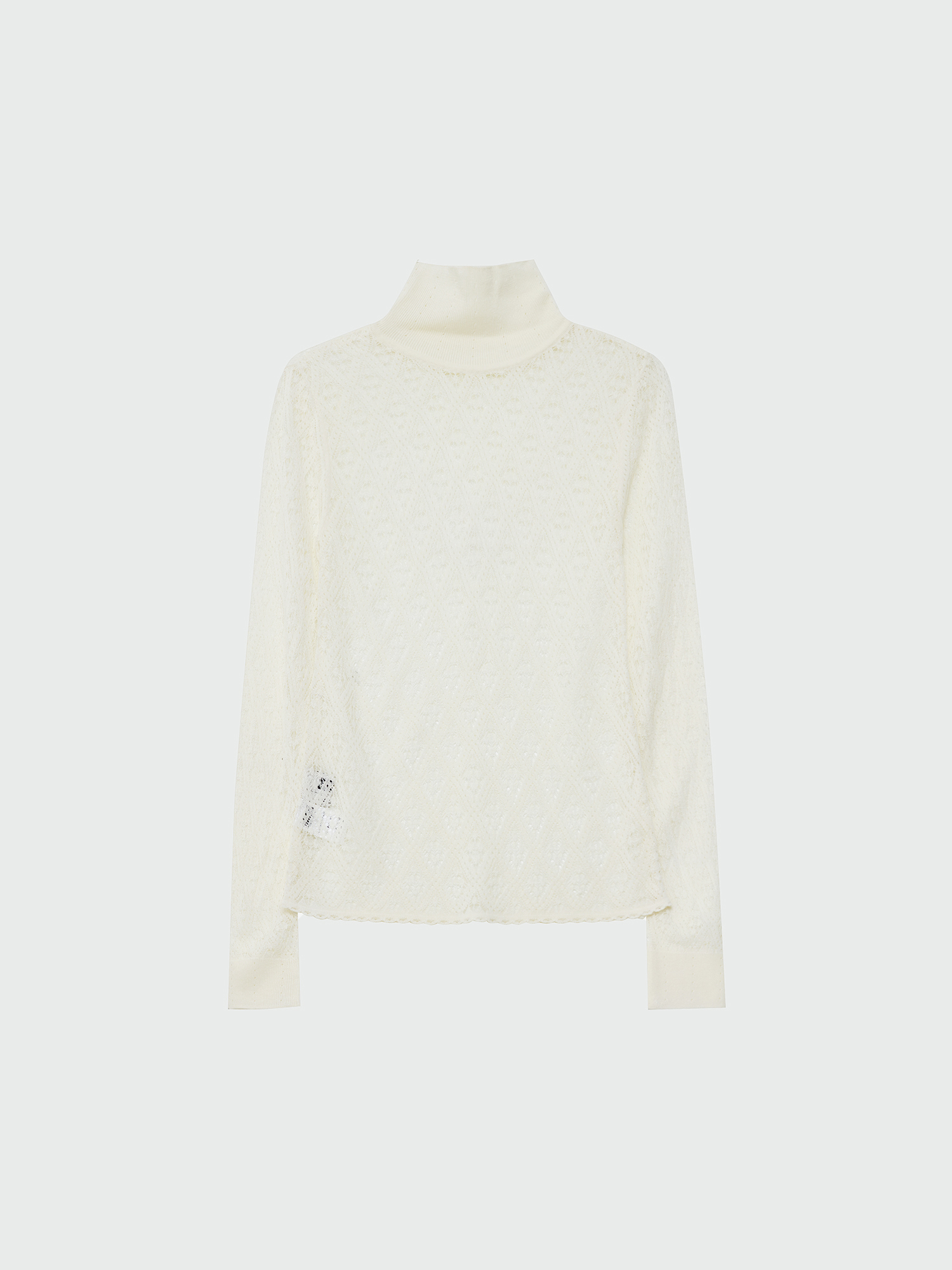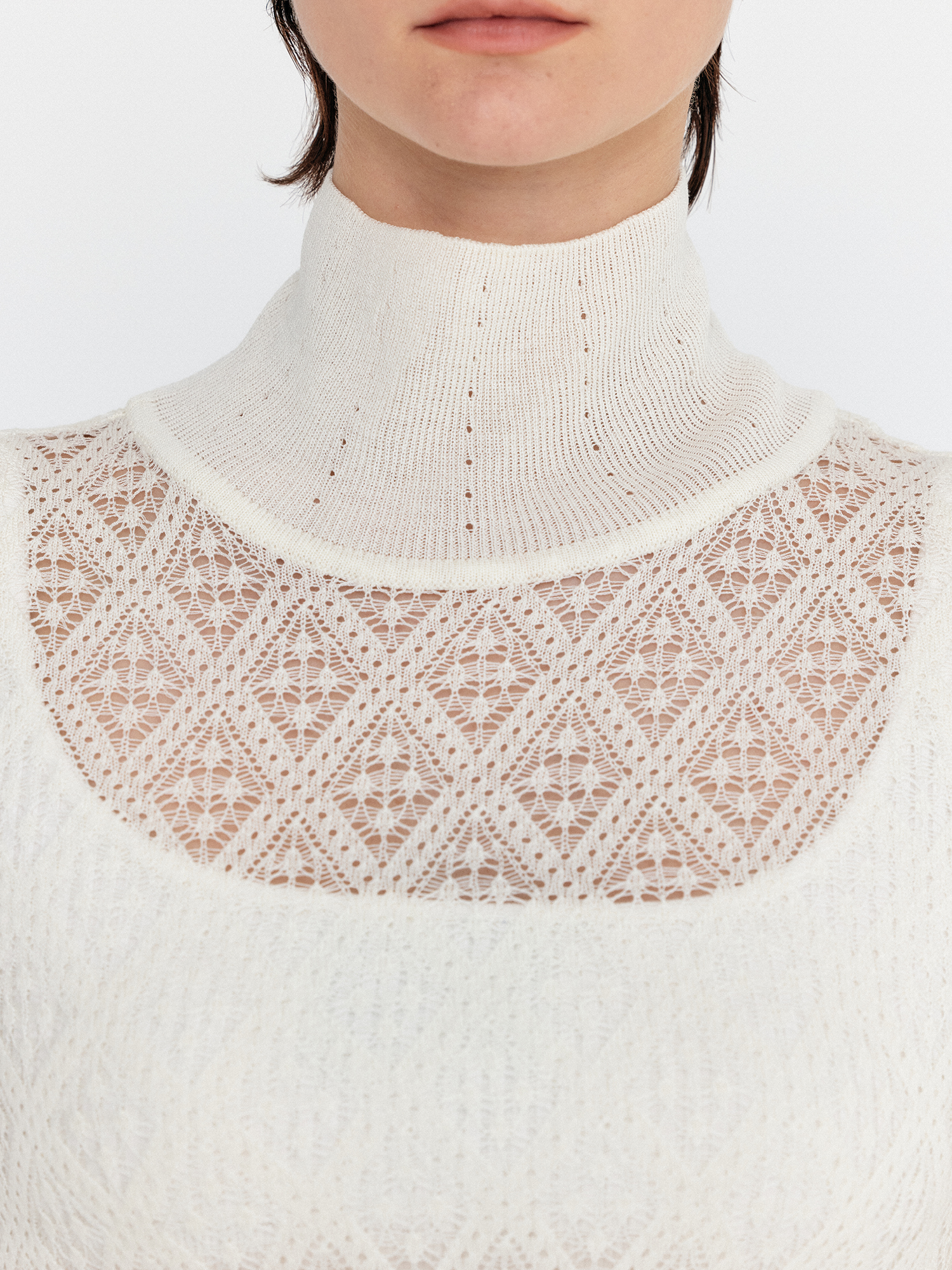 WIOM Diamond-Lace Turtleneck Knit Pullover - Ivory