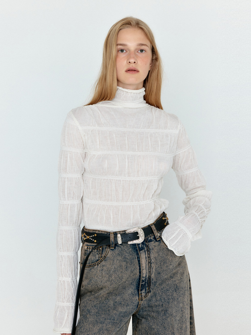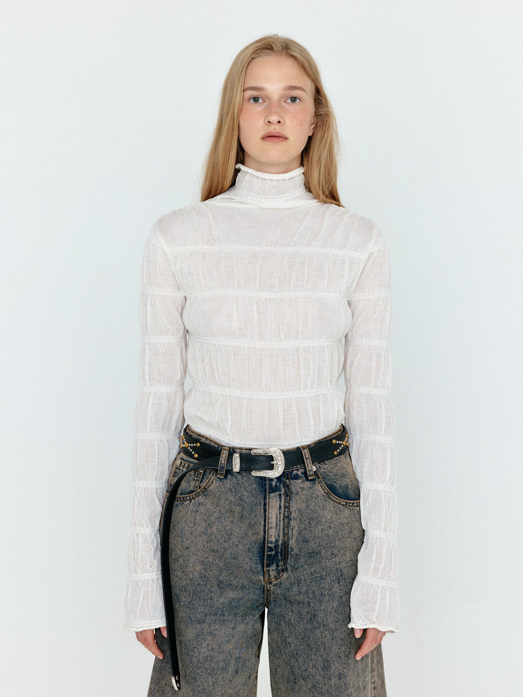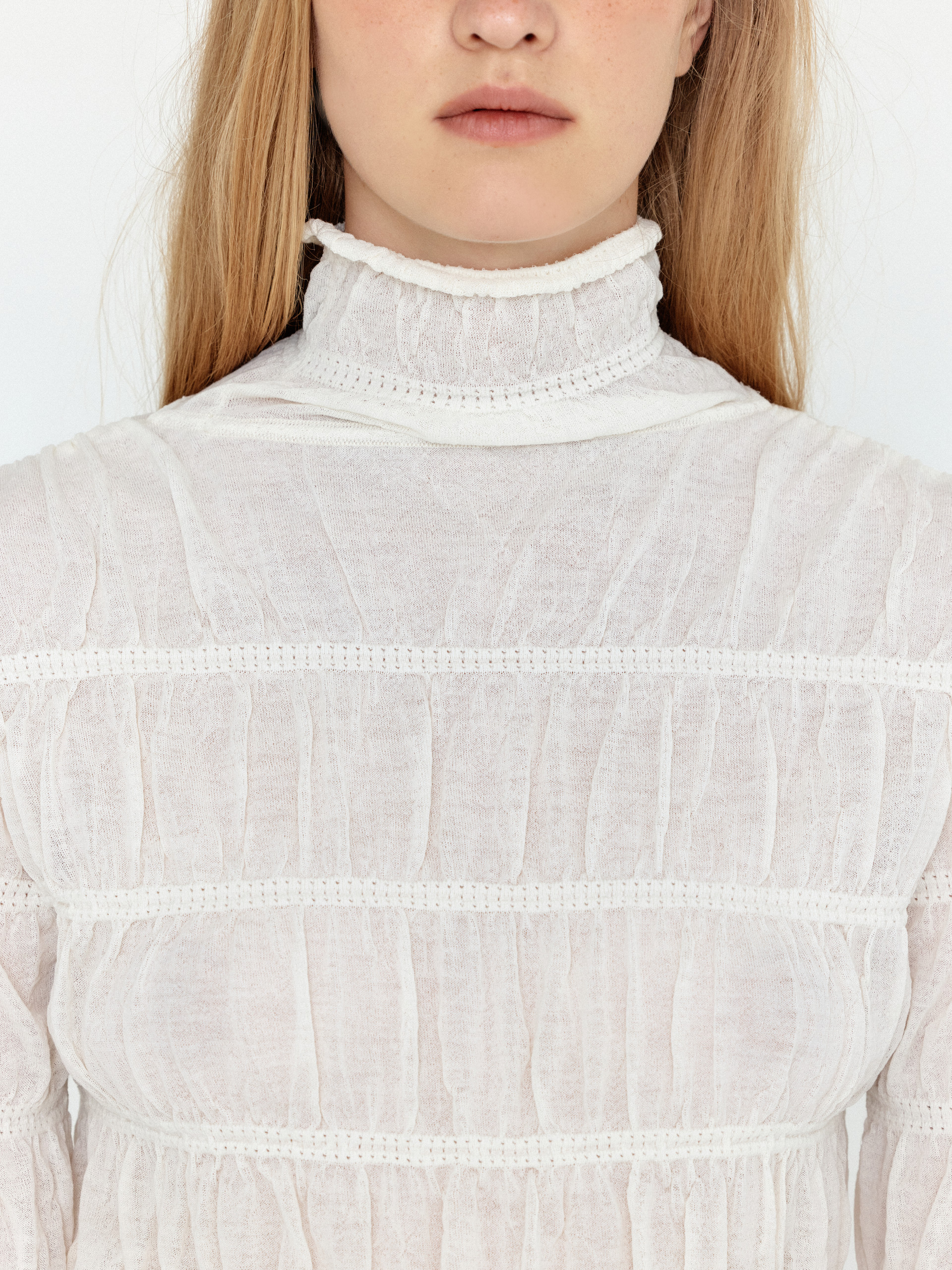 WOLLY High Neck Shirred Knit Top - Ivory