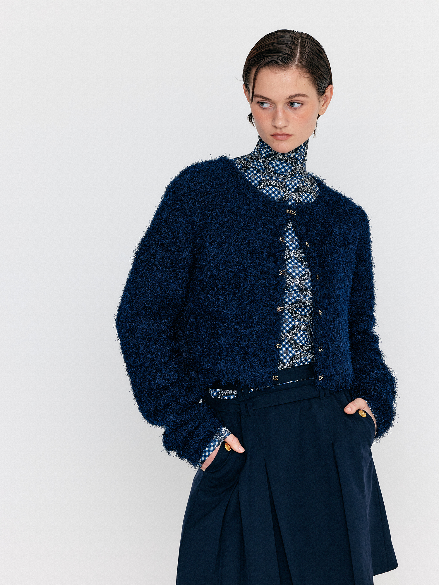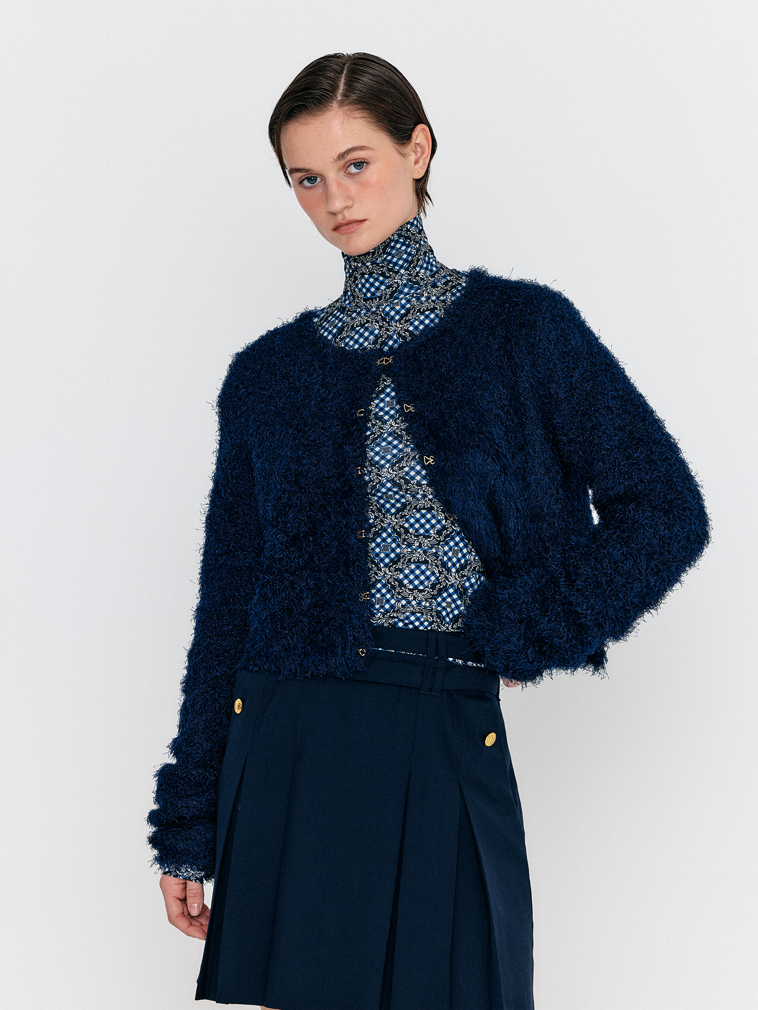 WOEBE Hairy Knit Cardigan - Navy