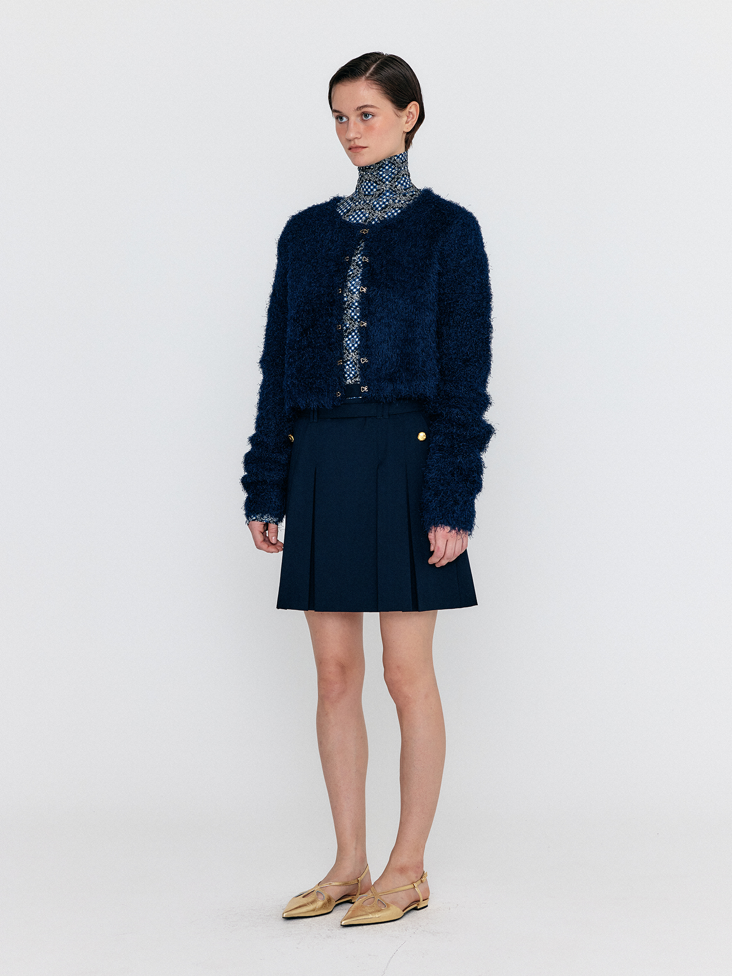 - 크롭한 기장감의 가디건입니다.