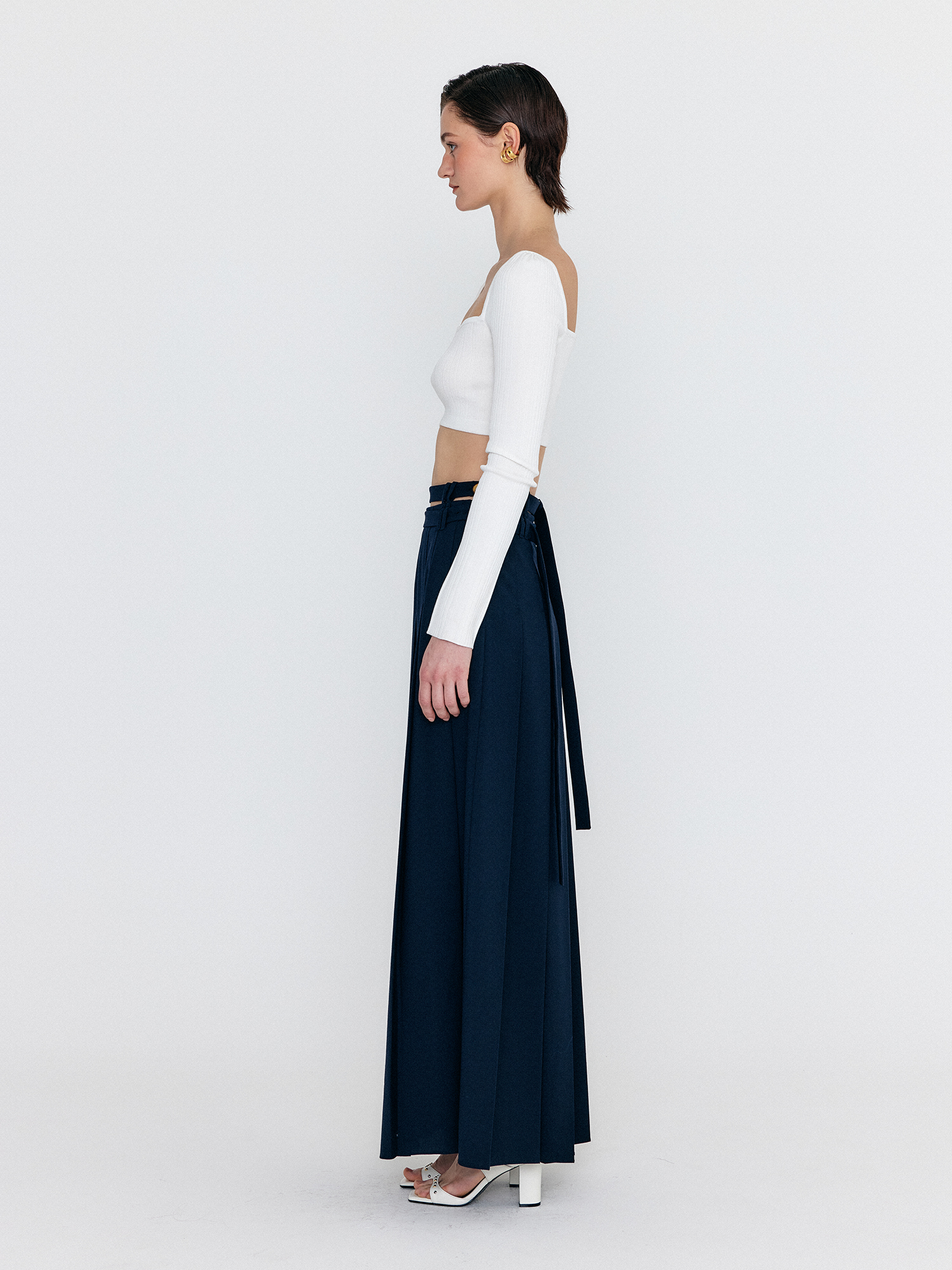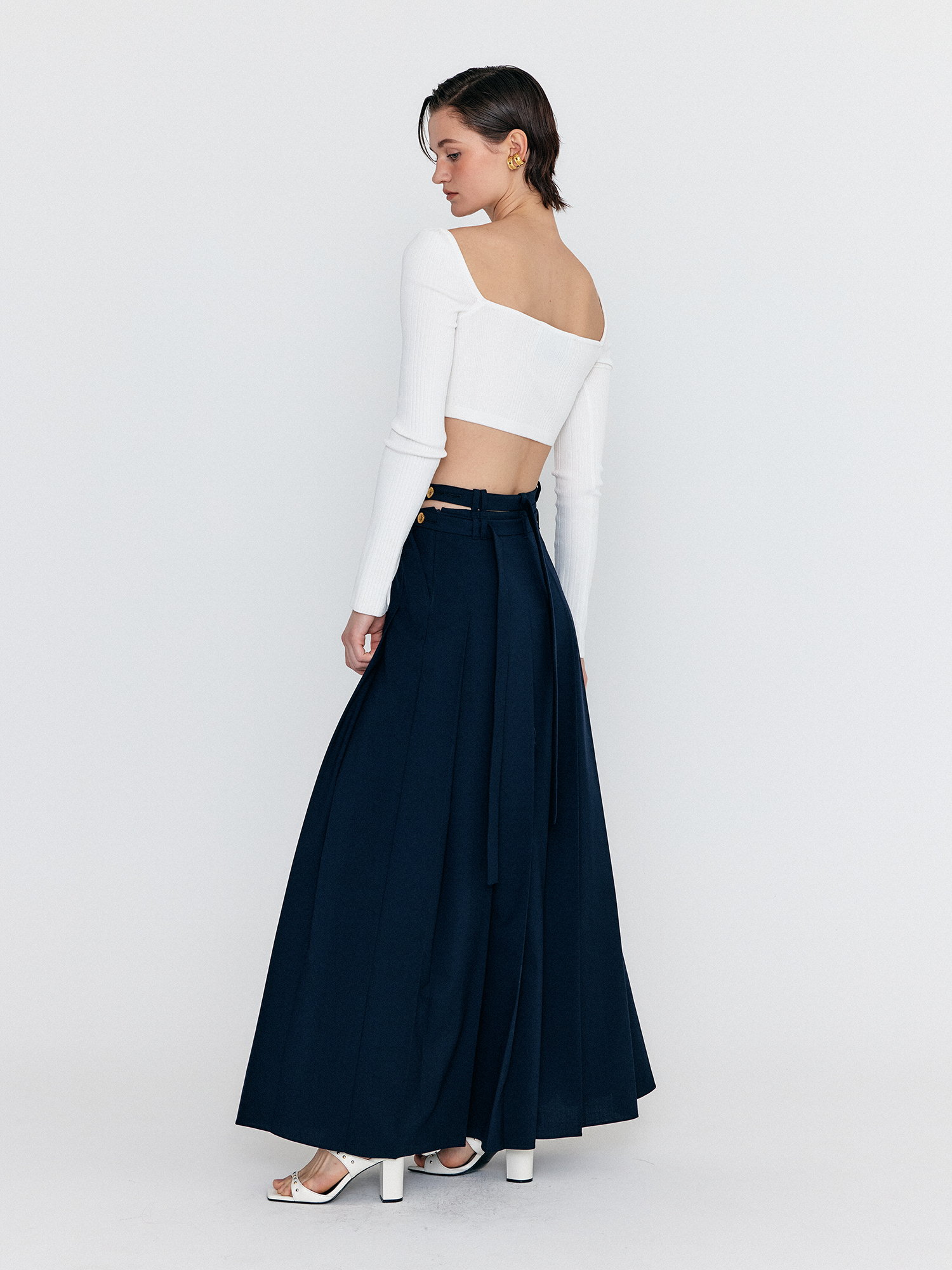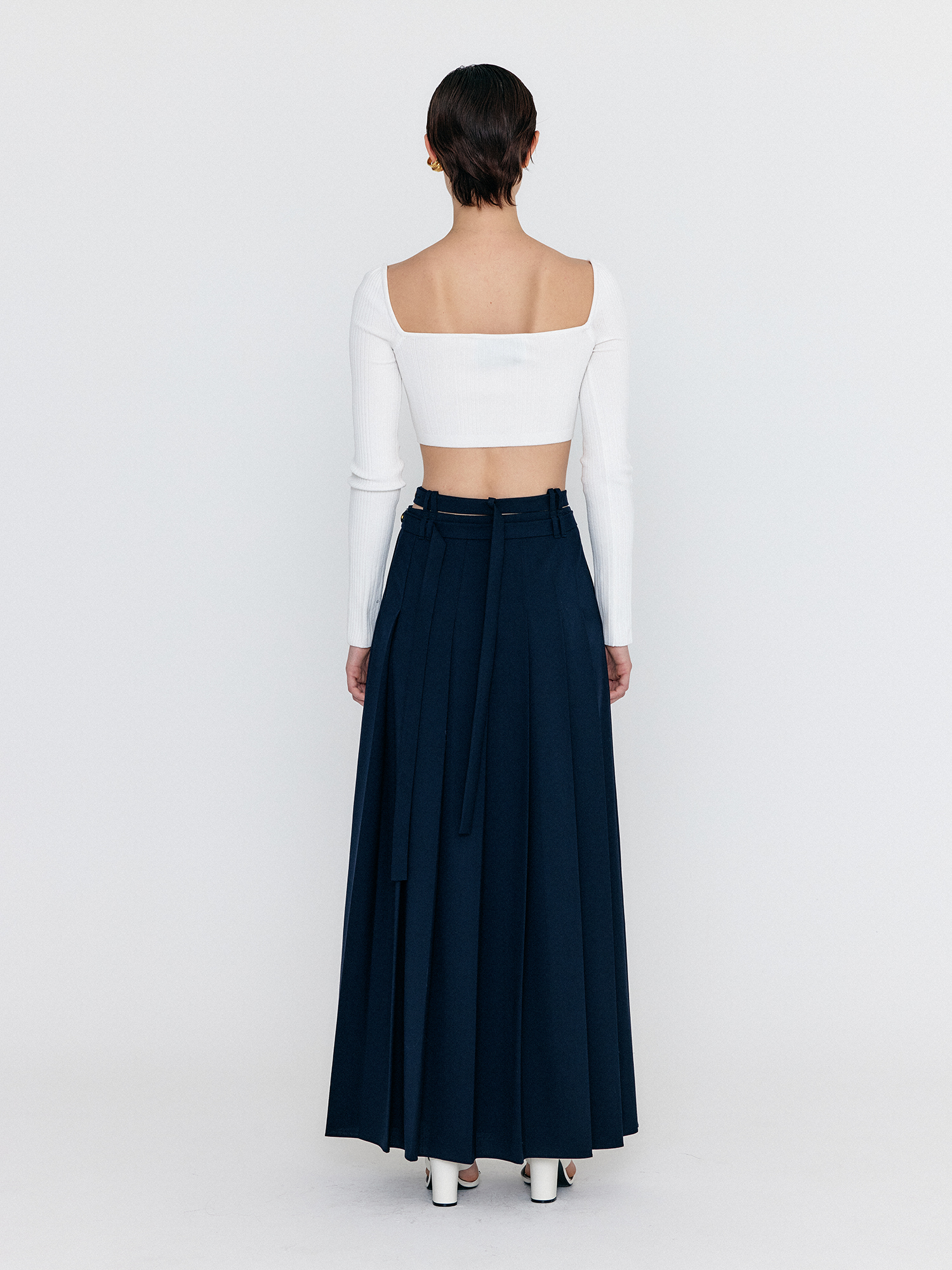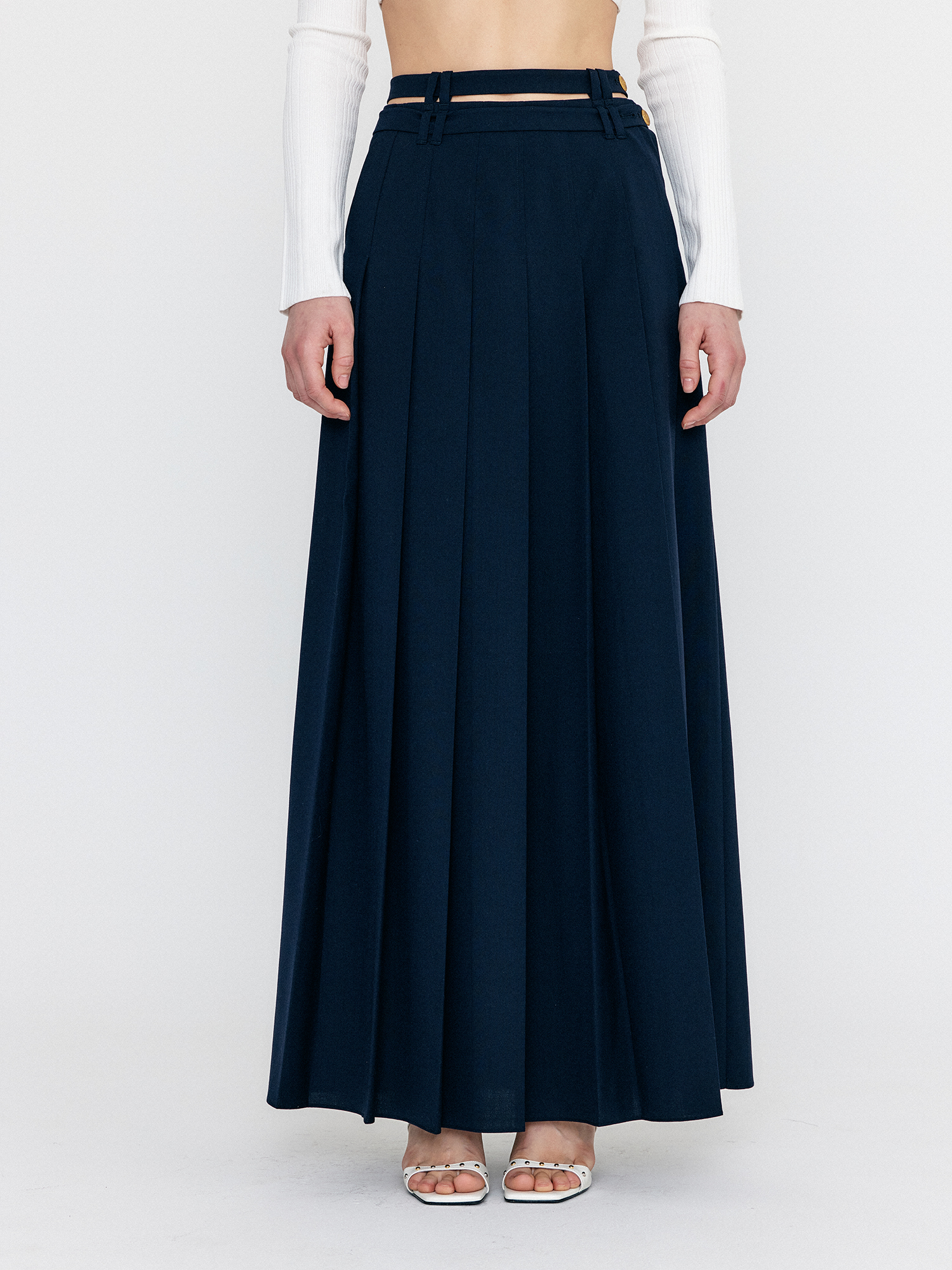 WOVEL Double-Belted Pleated Maxi Skirt - Navy