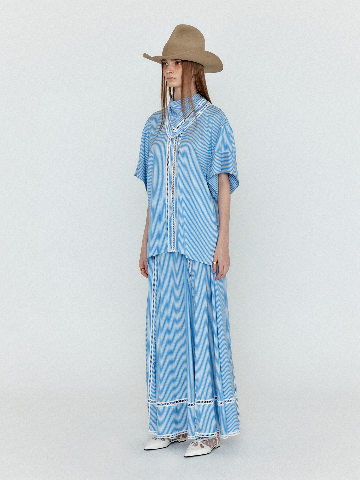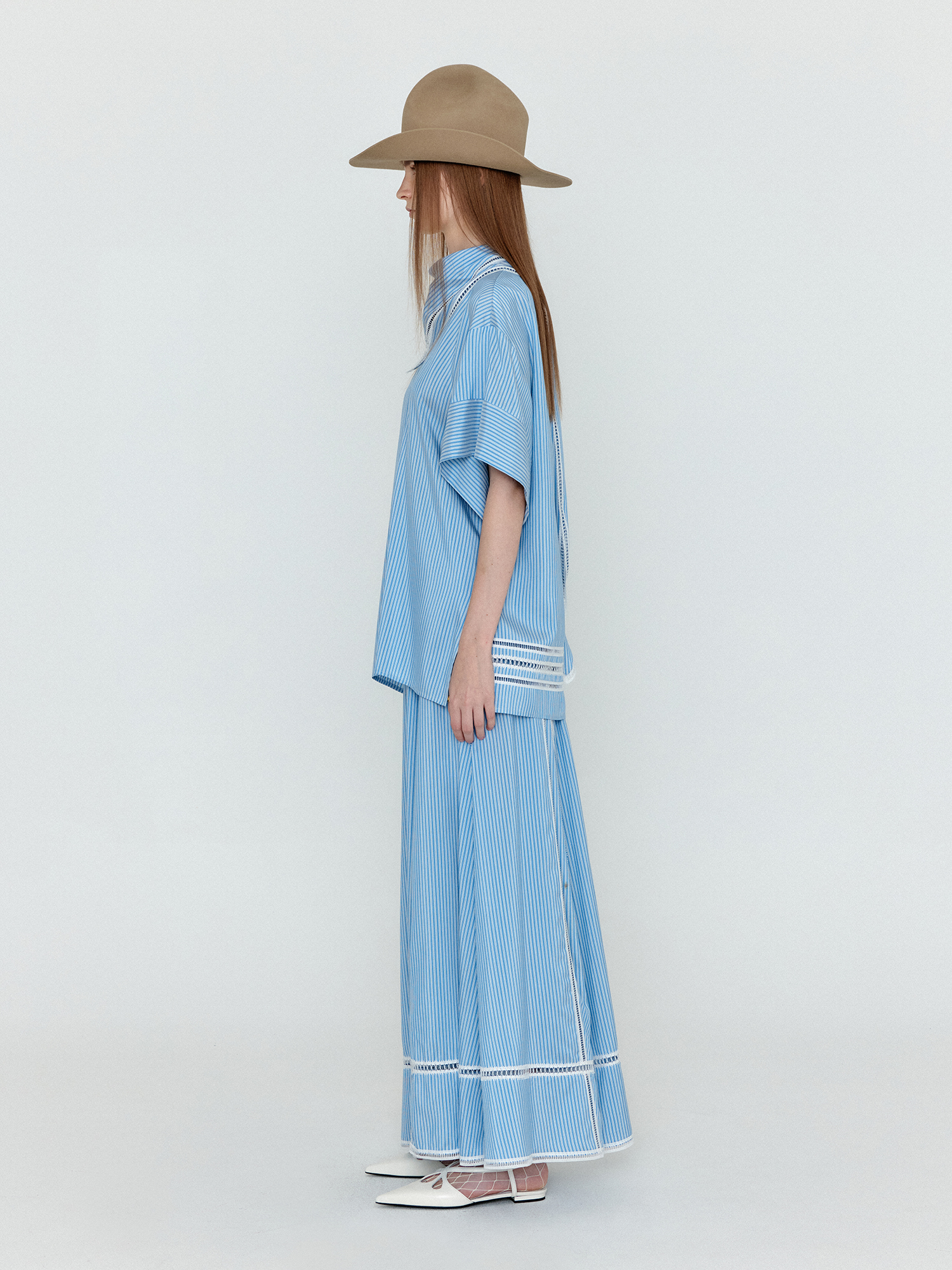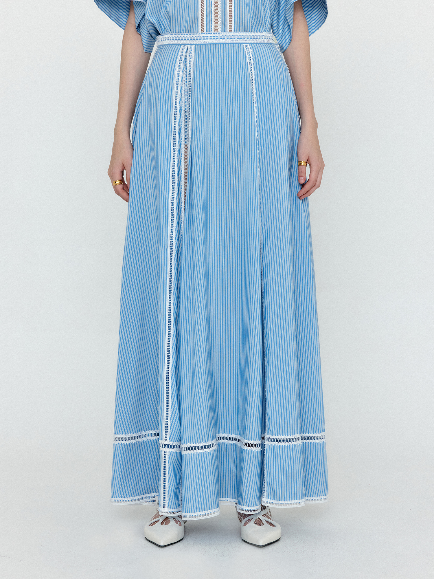 WICOLE Flared Maxi Skirt - Skyblue Stripe