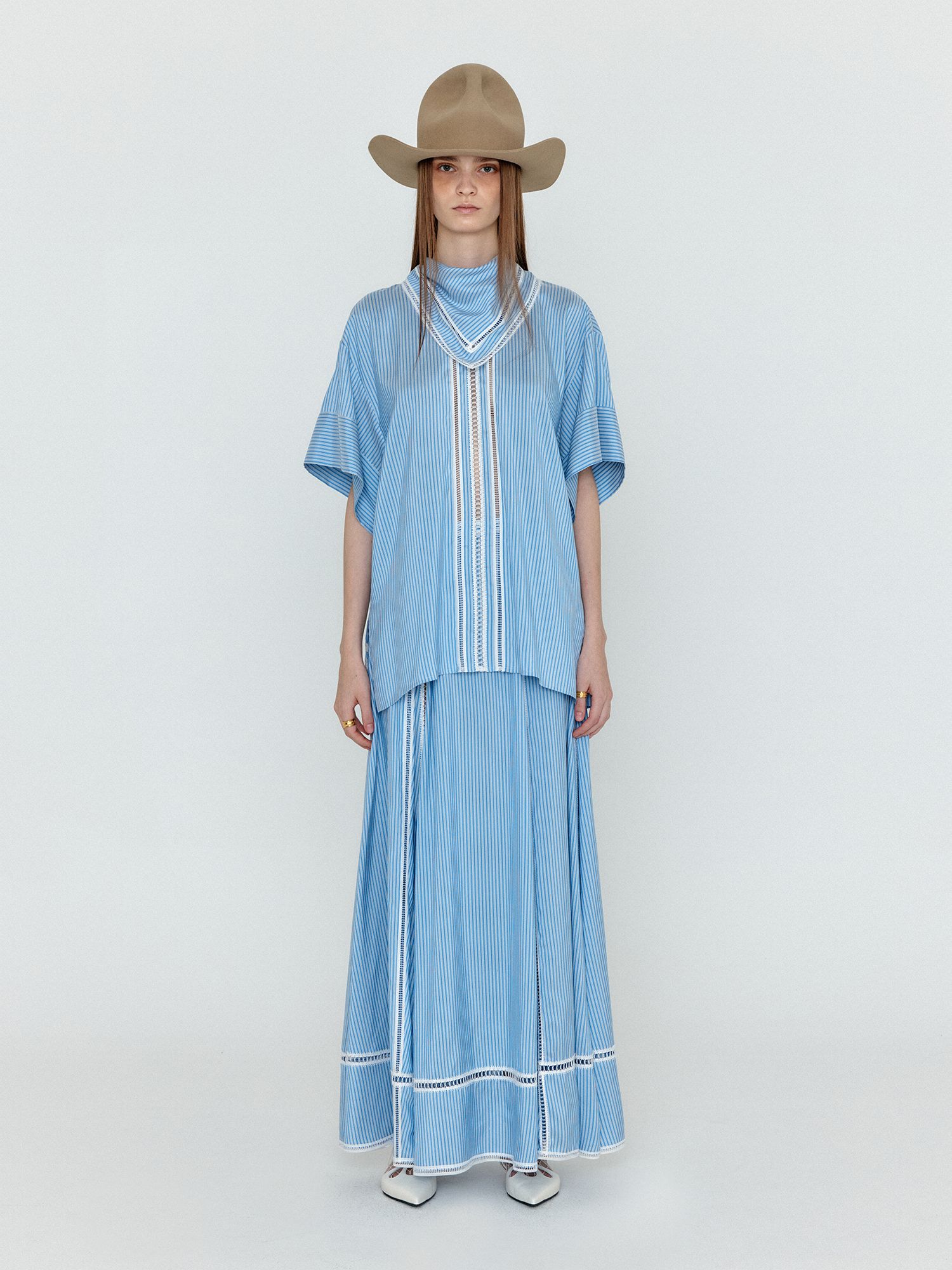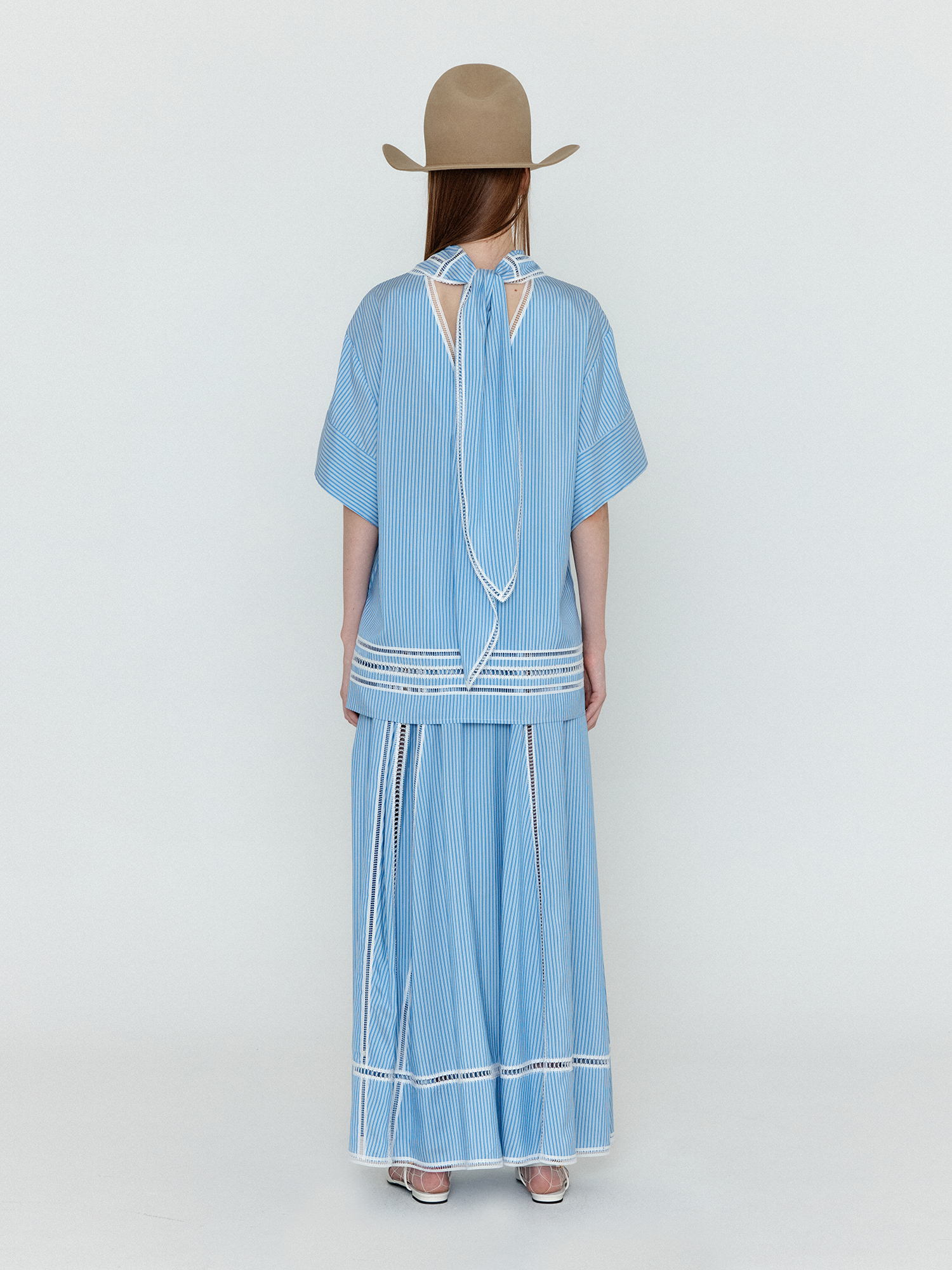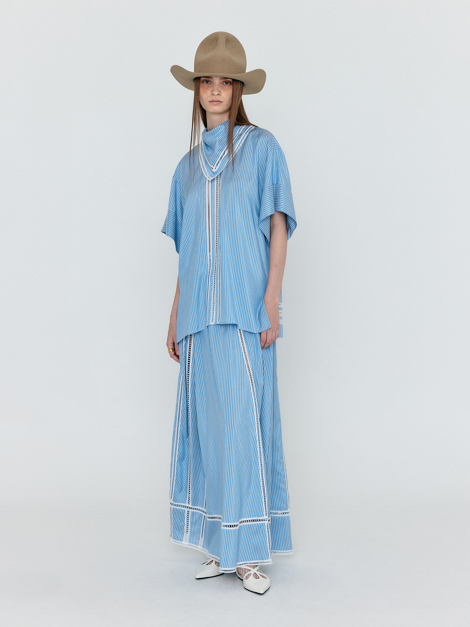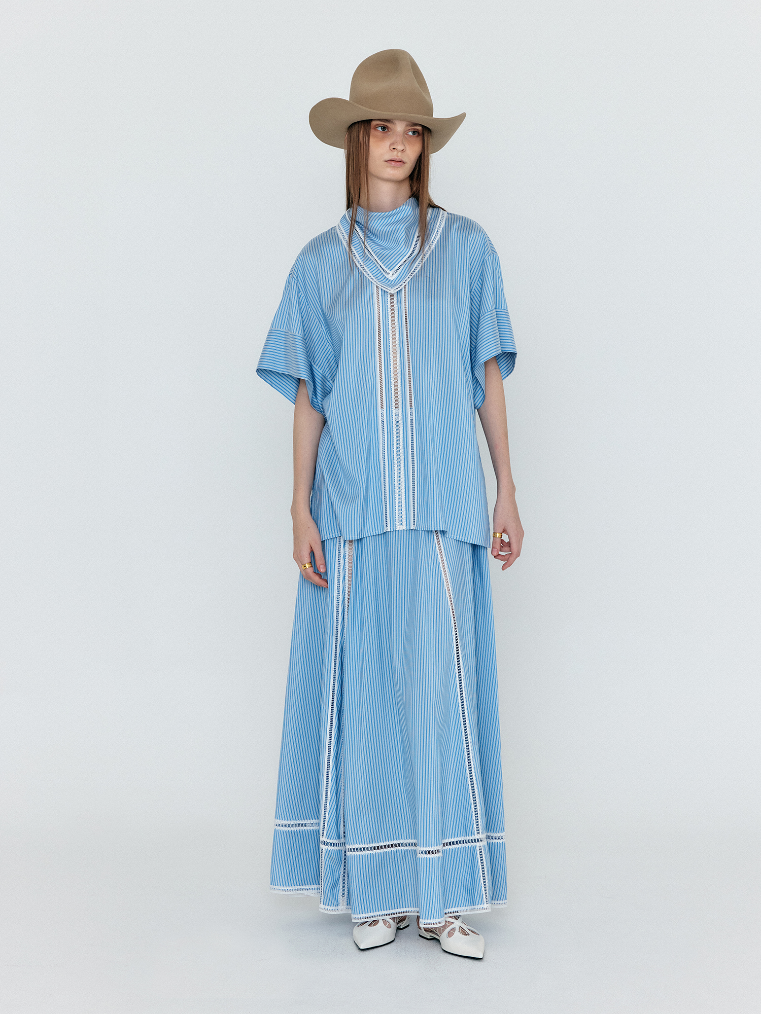 WICOLE Flared Maxi Skirt - Skyblue Stripe