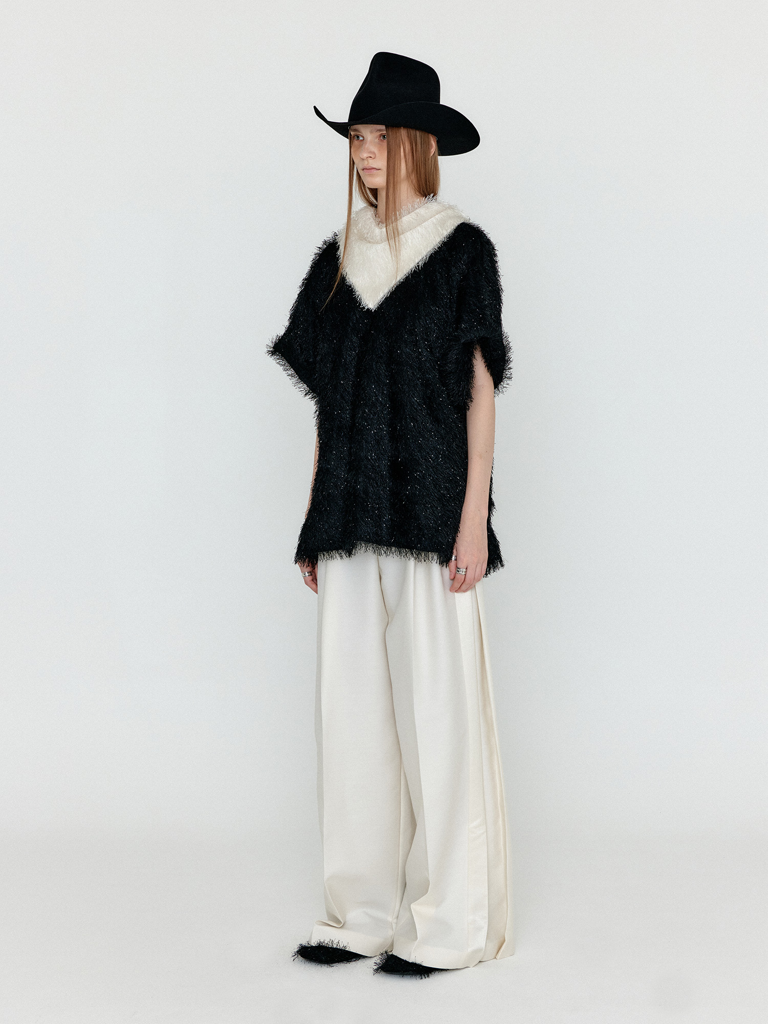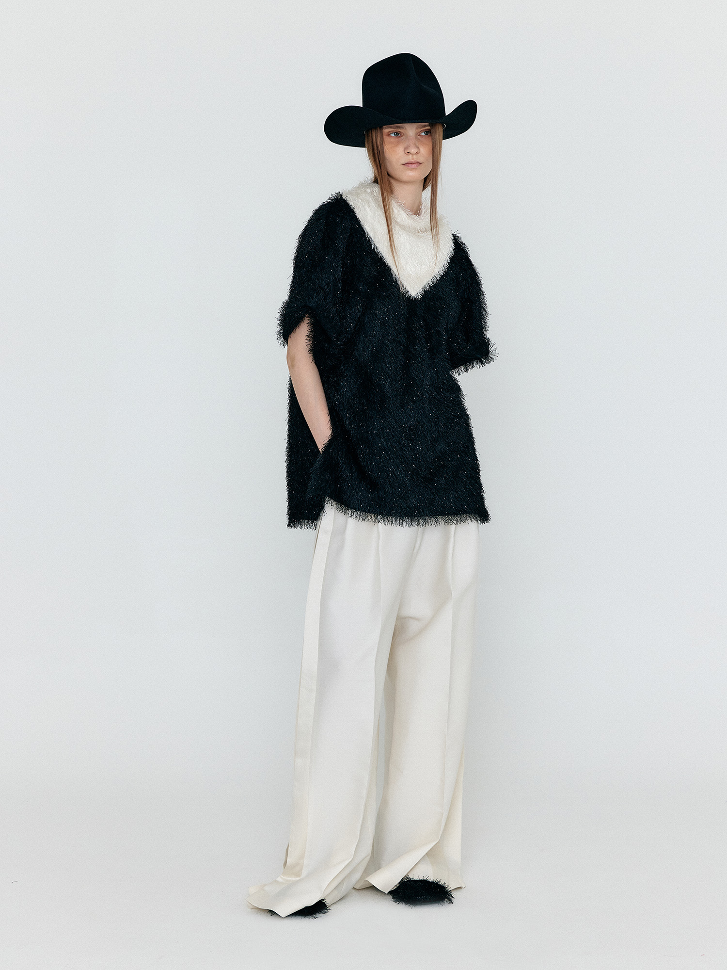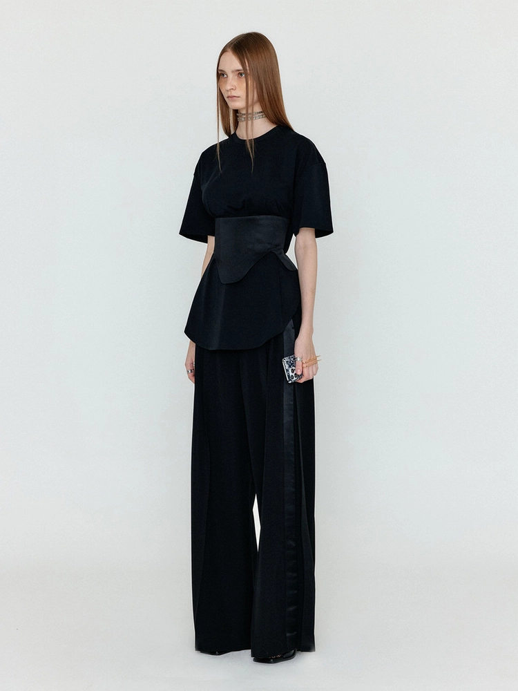 - 울과 실크 혼방 소재의 와이드 팬츠입니다.