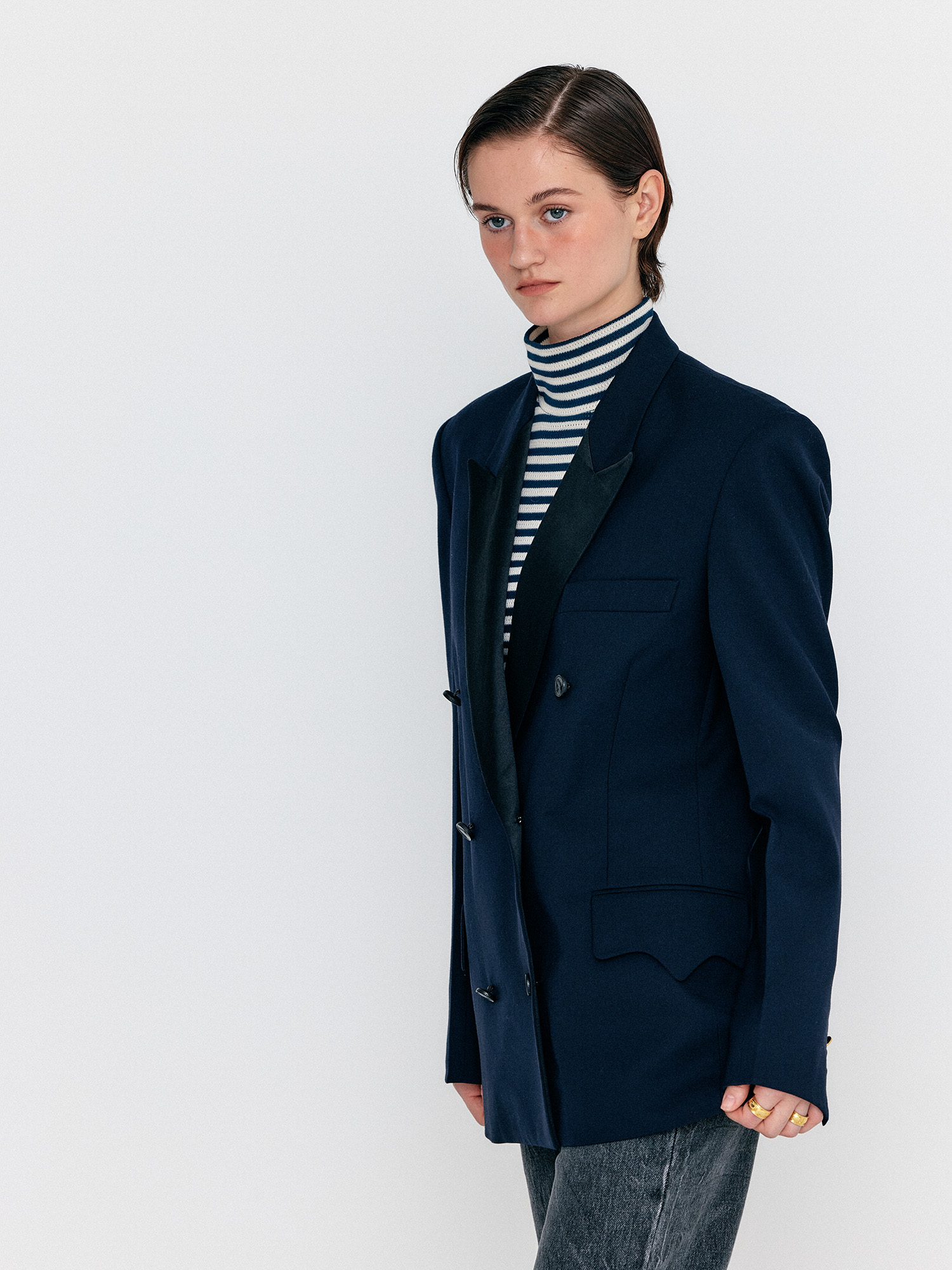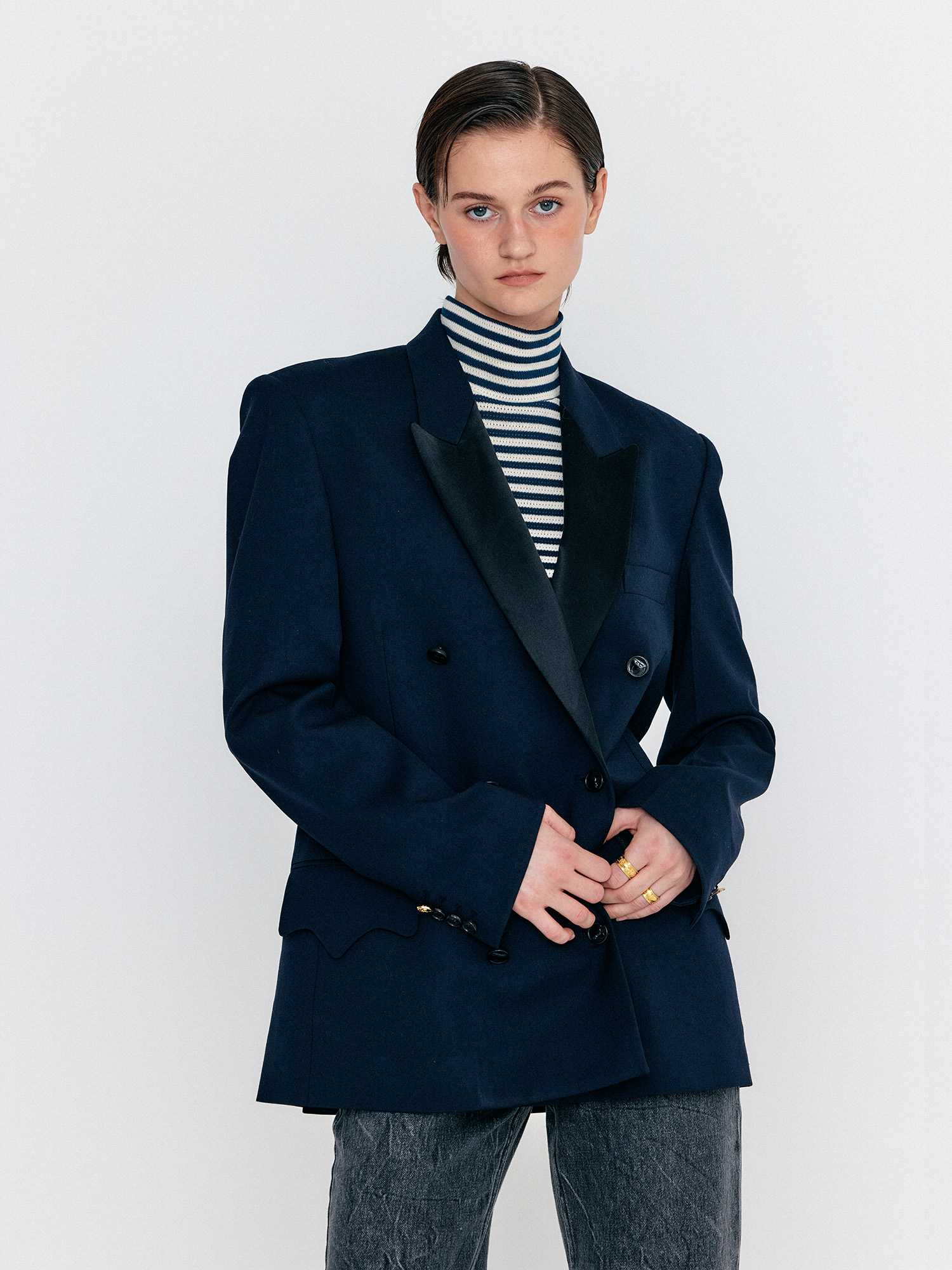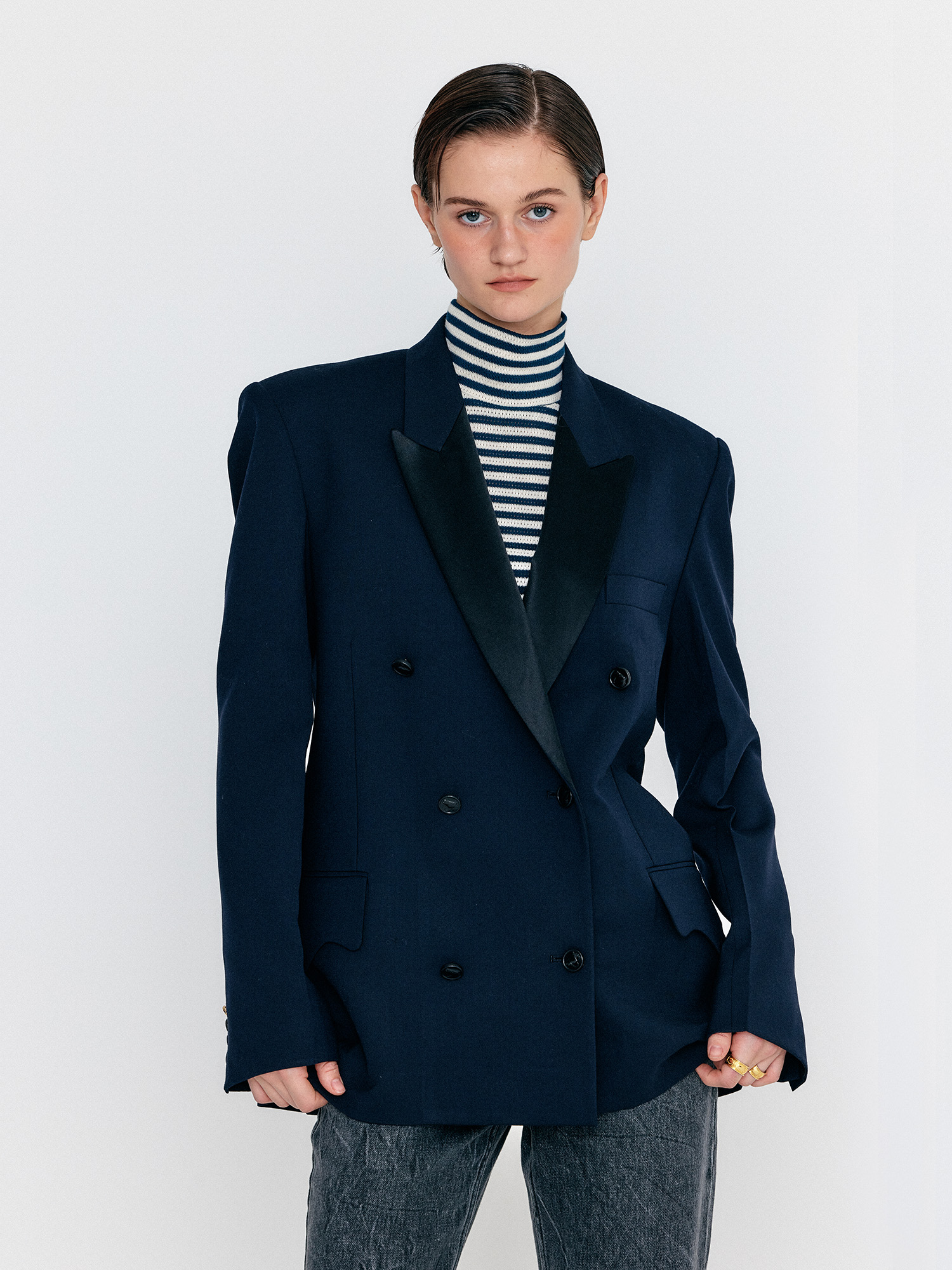 WEIDA Double-Breasted Peaked Blazer - Navy/BlackSOLDOUT
