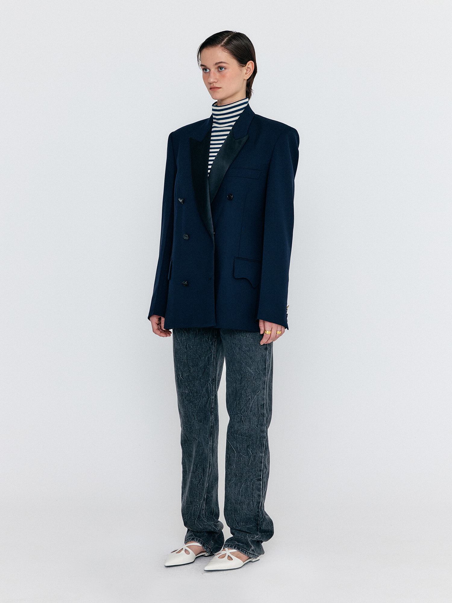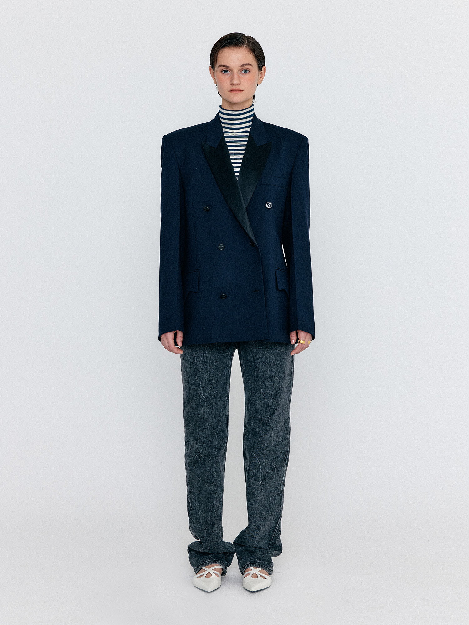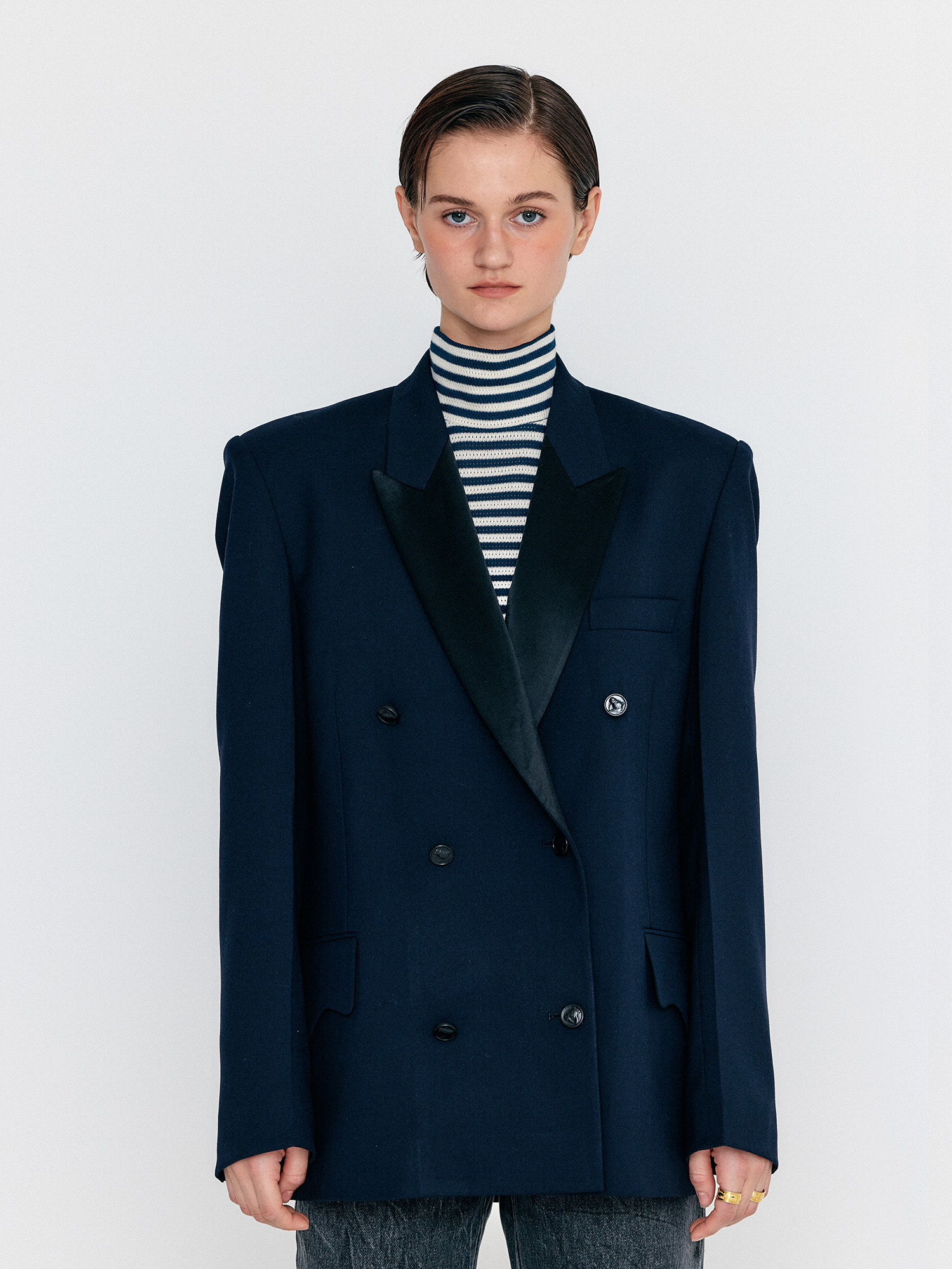 WEIDA Double-Breasted Peaked Blazer - Navy/BlackSOLDOUT