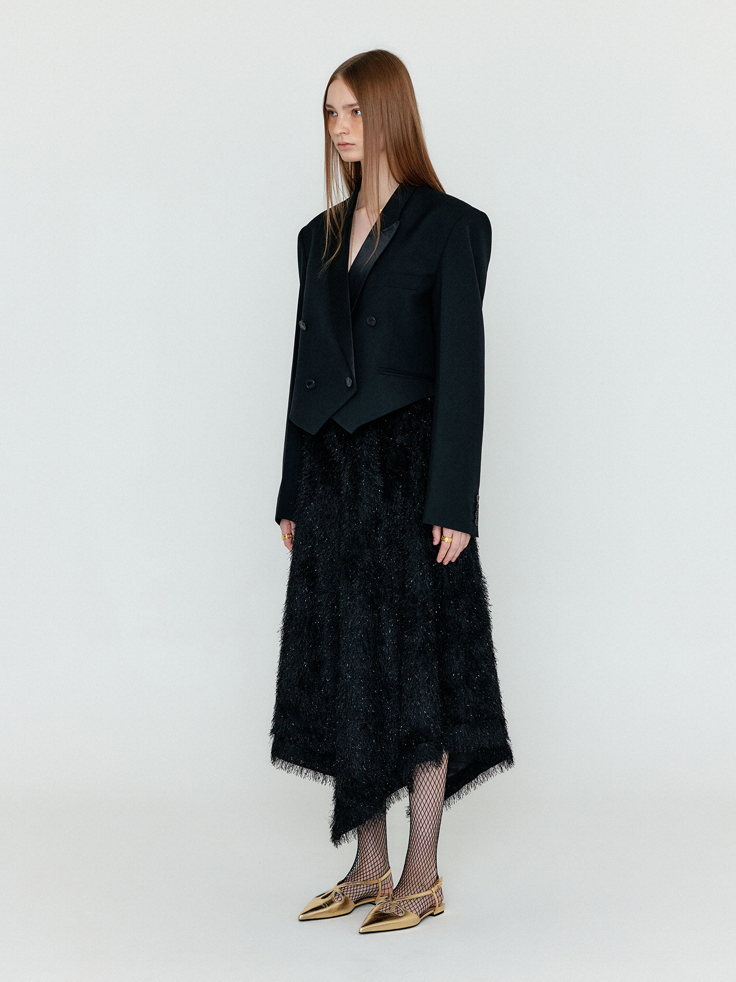 - 클래식한 무드의 크롭 더블 자켓입니다.