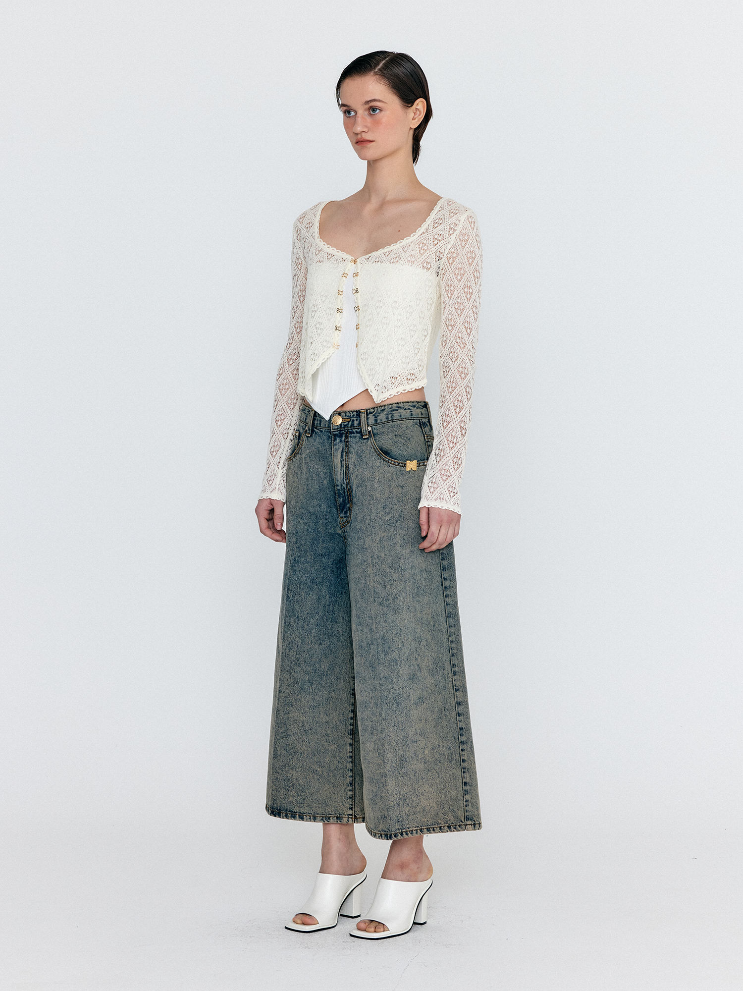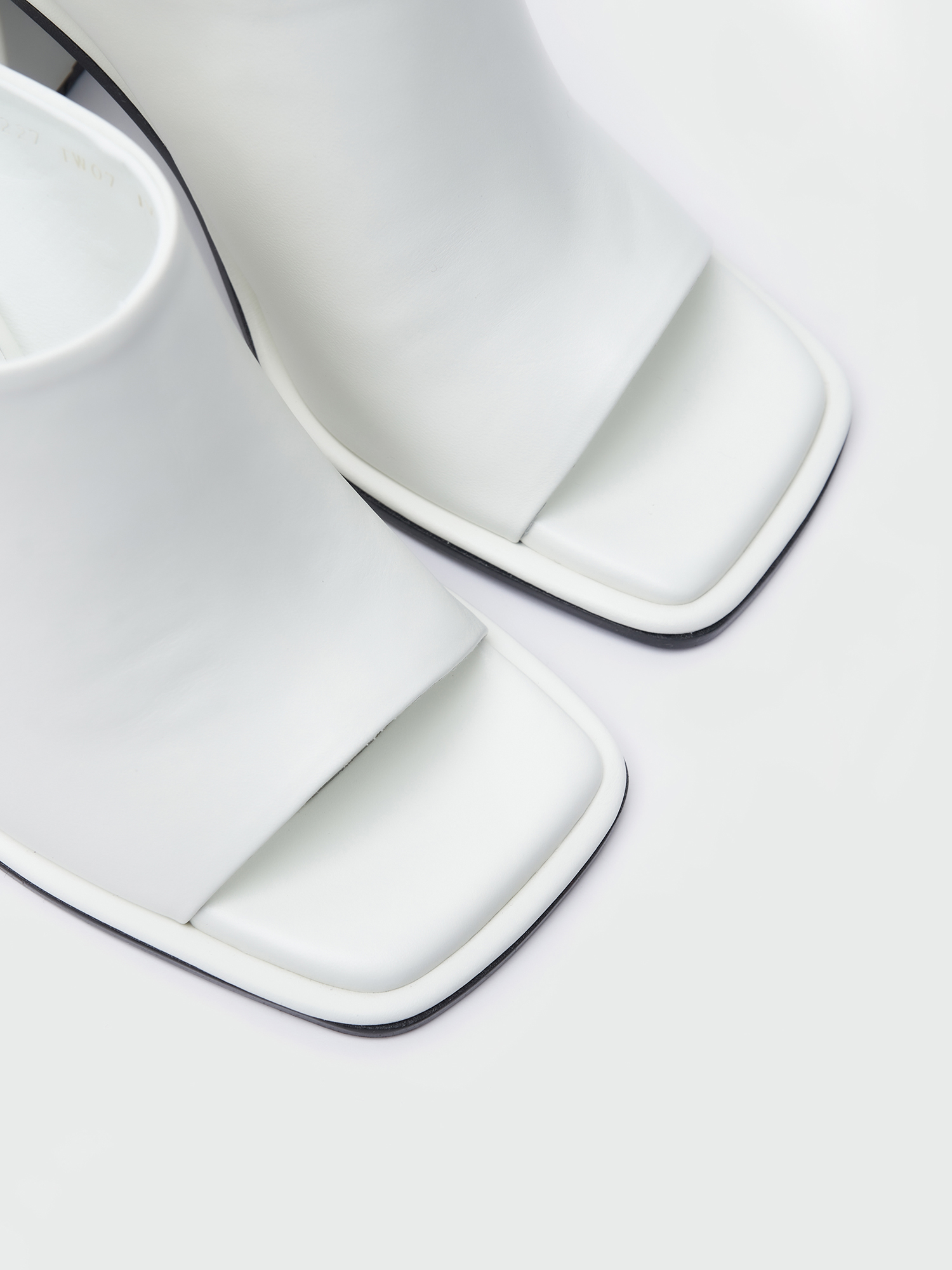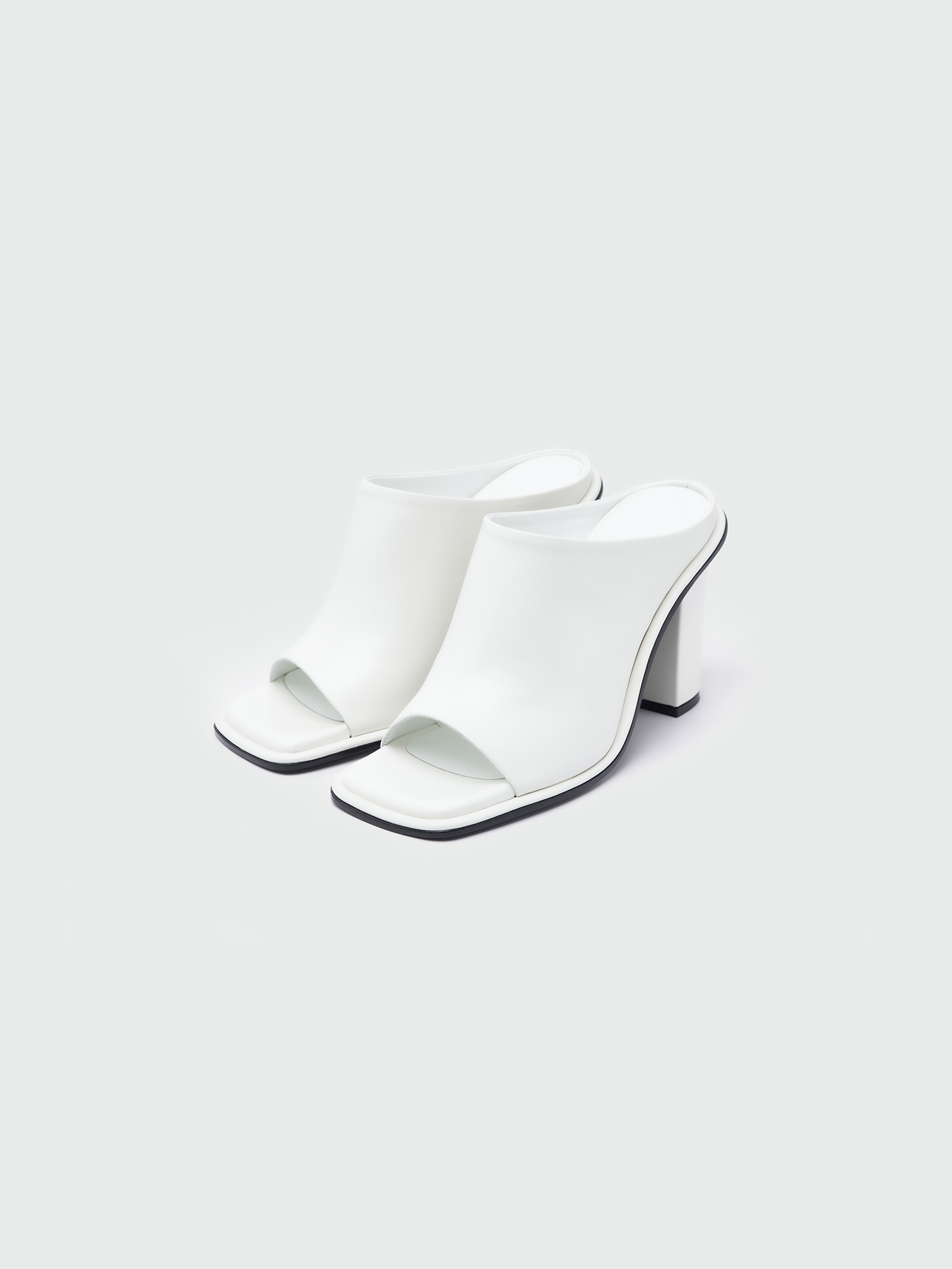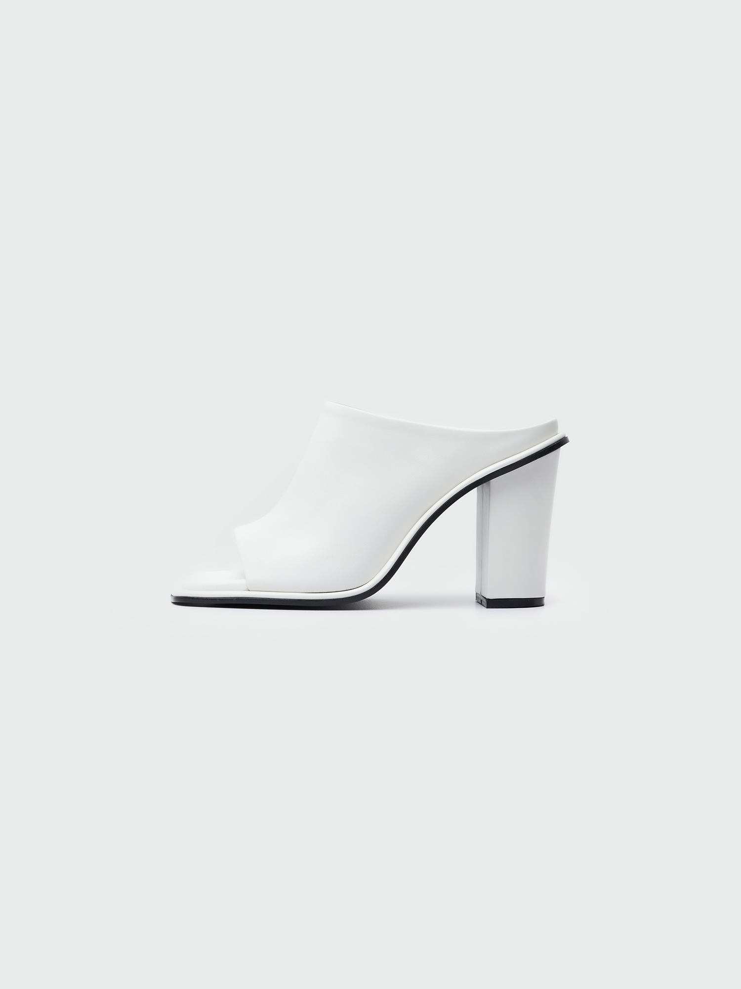 - 소가죽 소재의 스퀘어 오픈토 힐 샌들입니다.