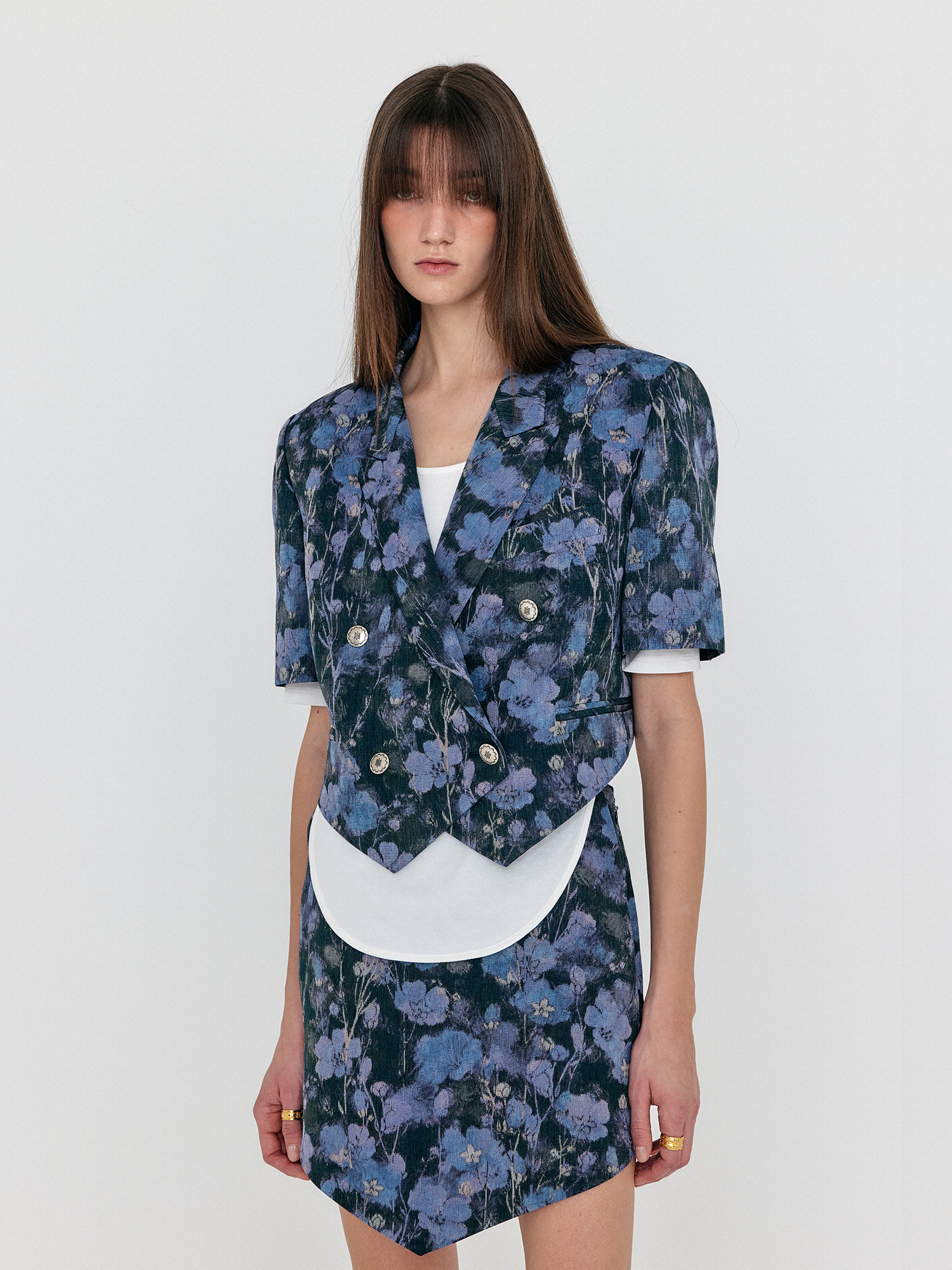 - 클래식한 무드의 크롭 더블 블레이저 자켓입니다.