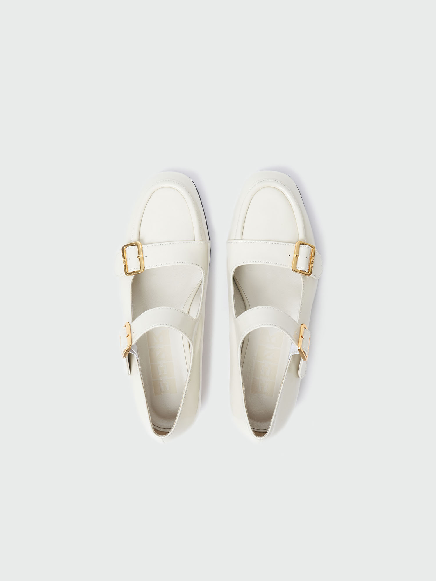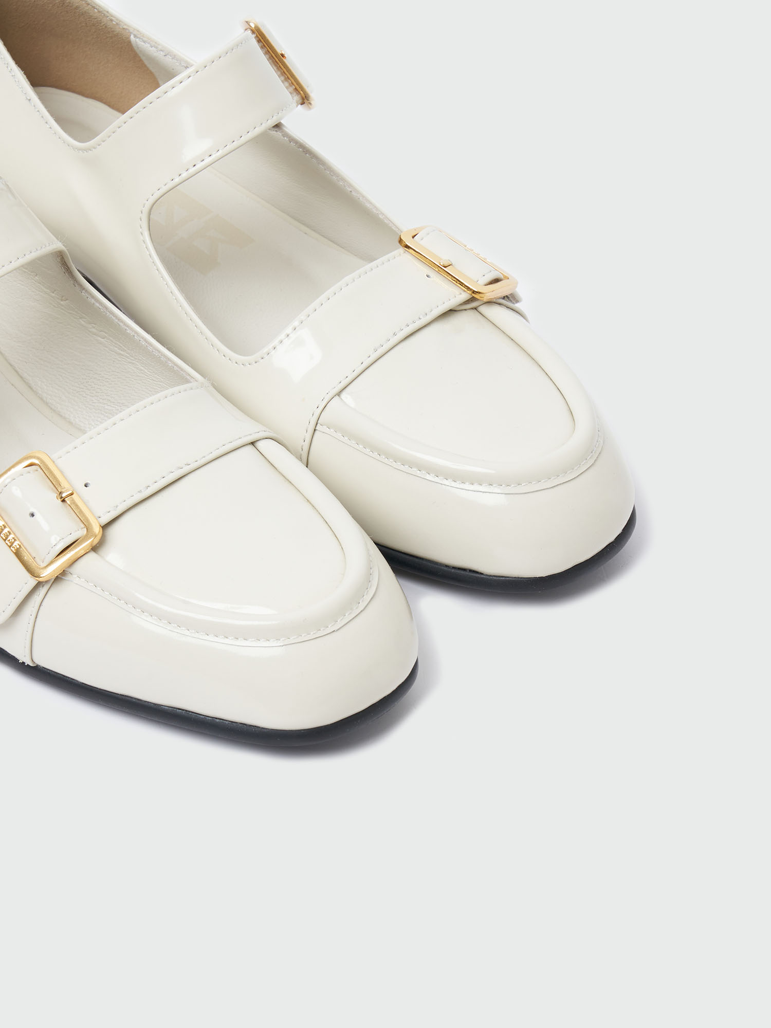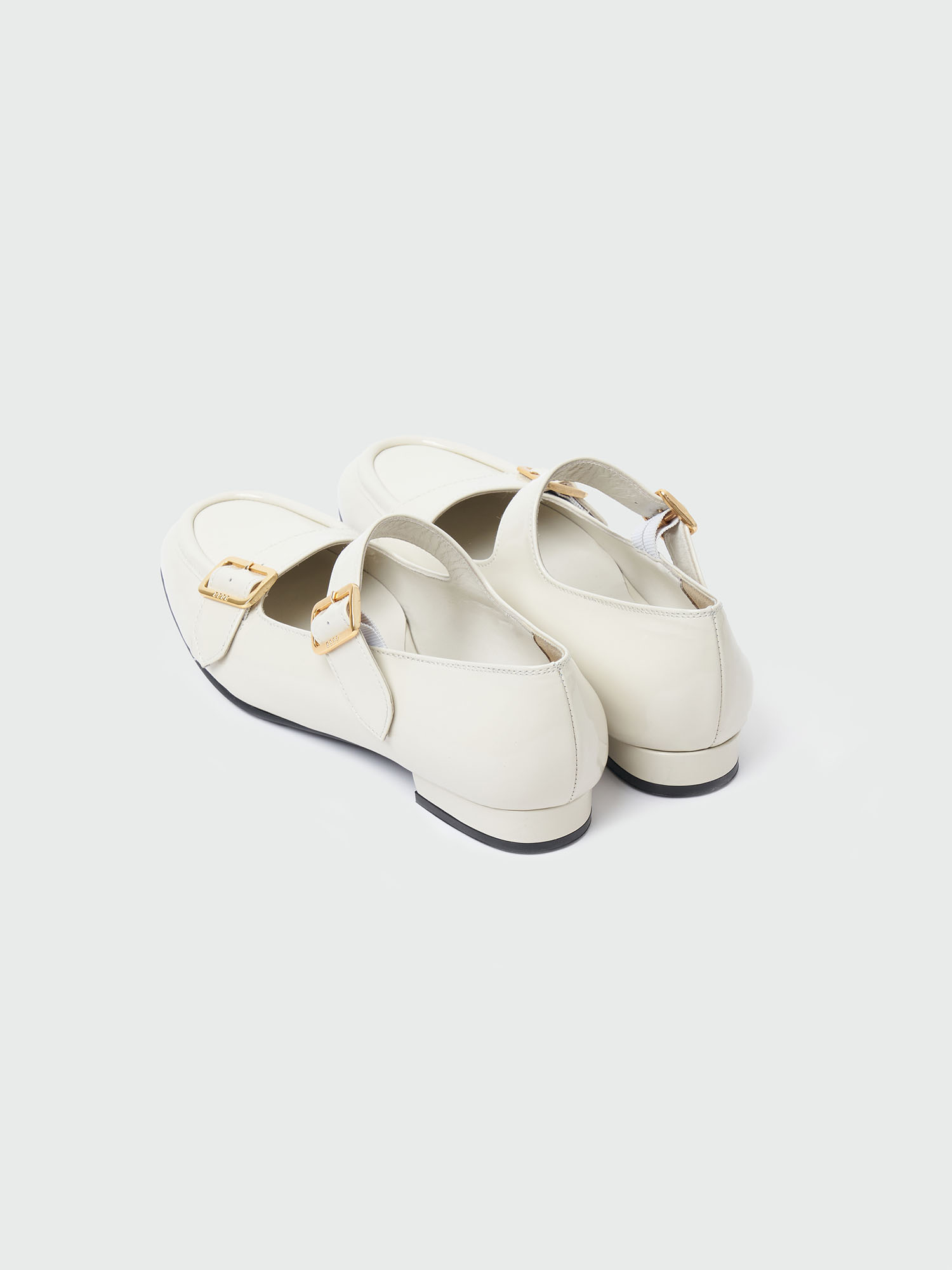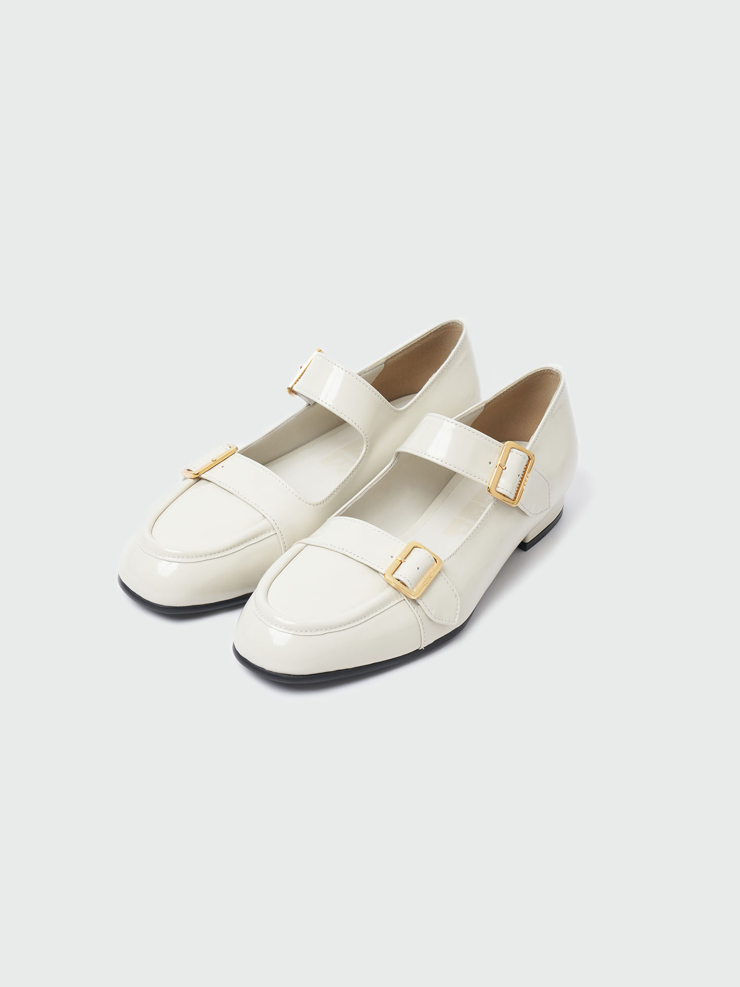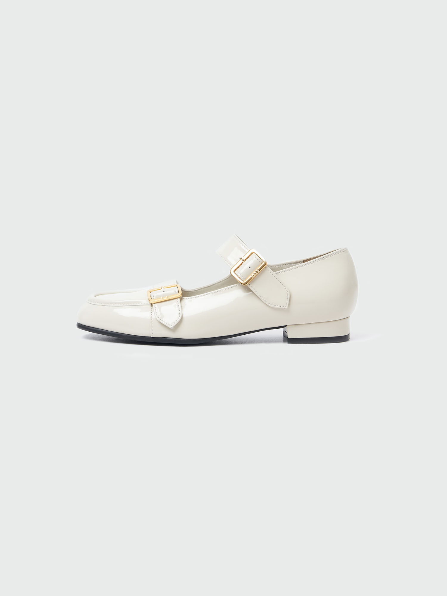- 글로시한 소가죽 소재의 플랫 슈즈입니다.