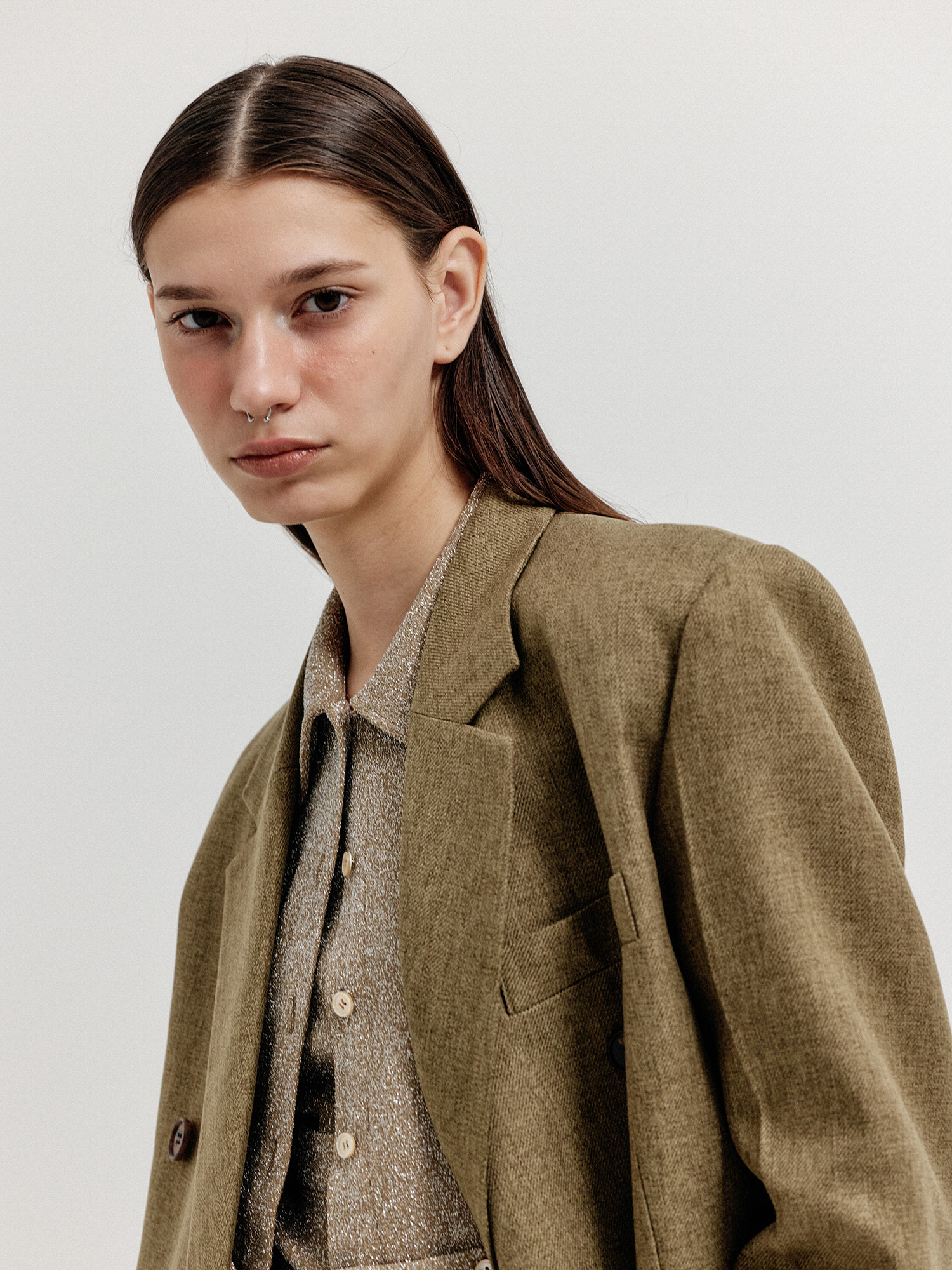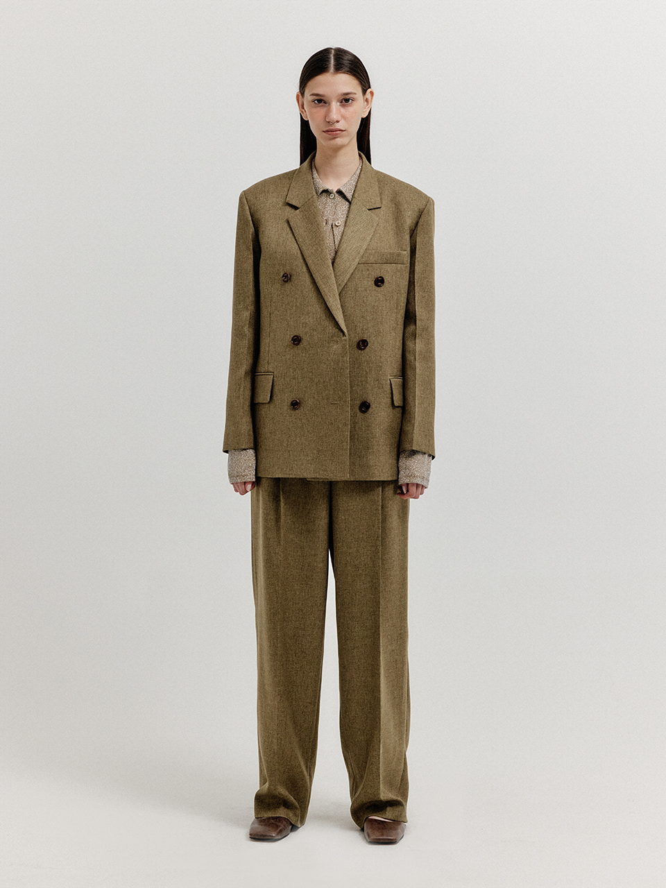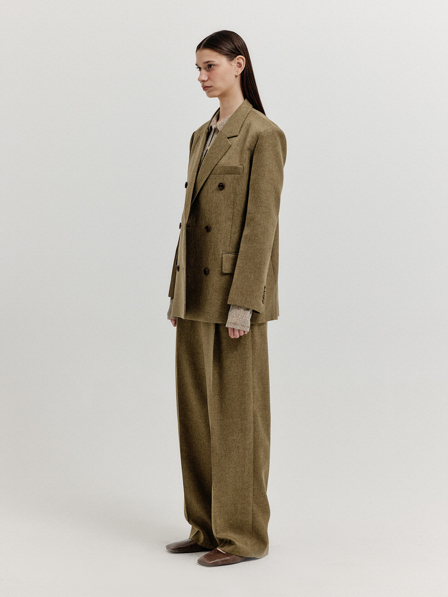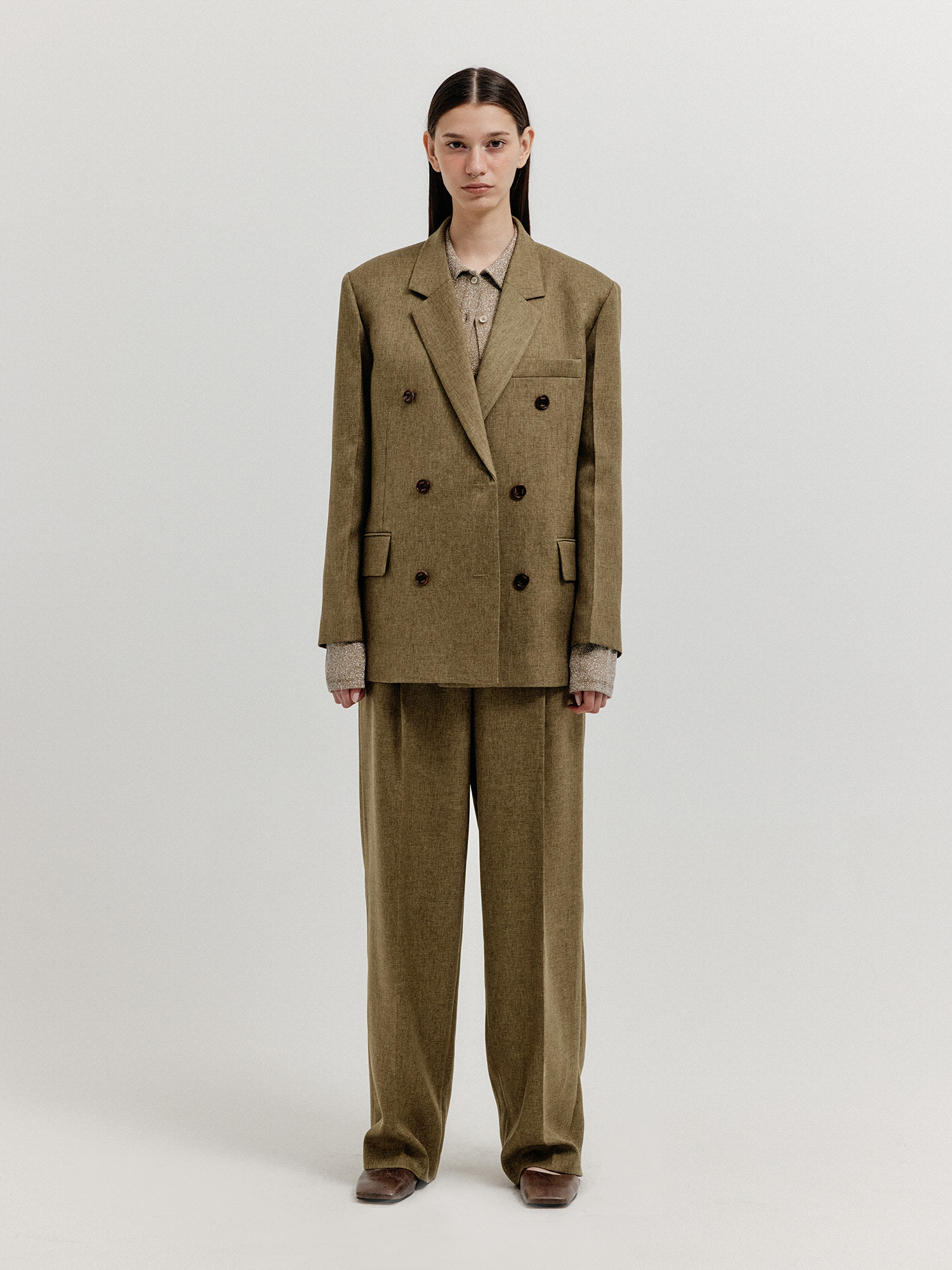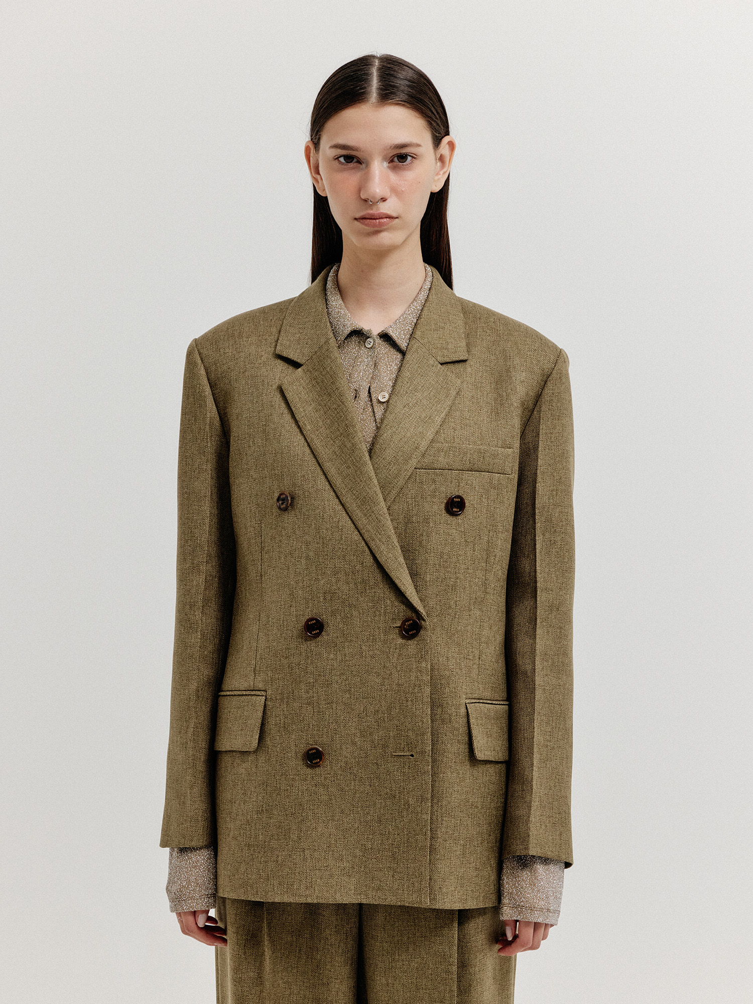 - 클래식한 더블 브레스티드 자켓입니다.