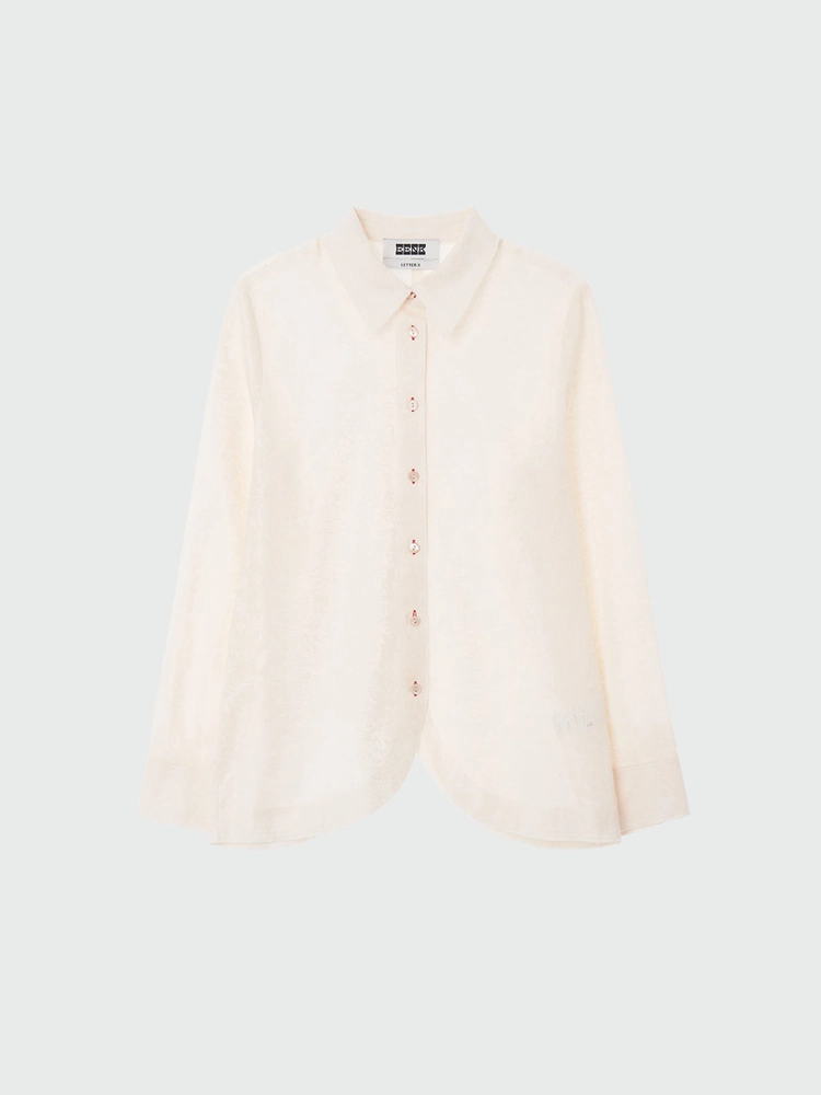 - 밑단에 컷아웃 디테일을 더한 메탈릭 코튼 셔츠입니다.