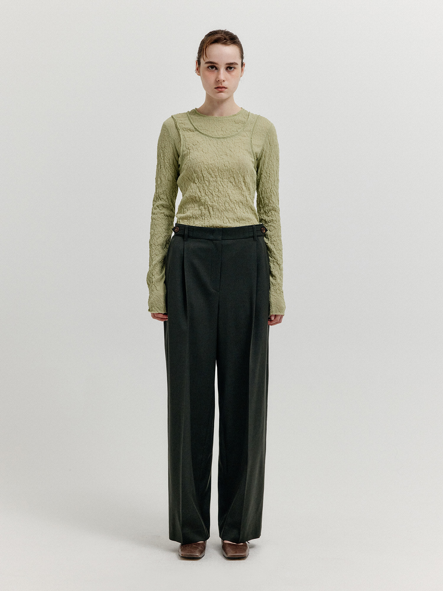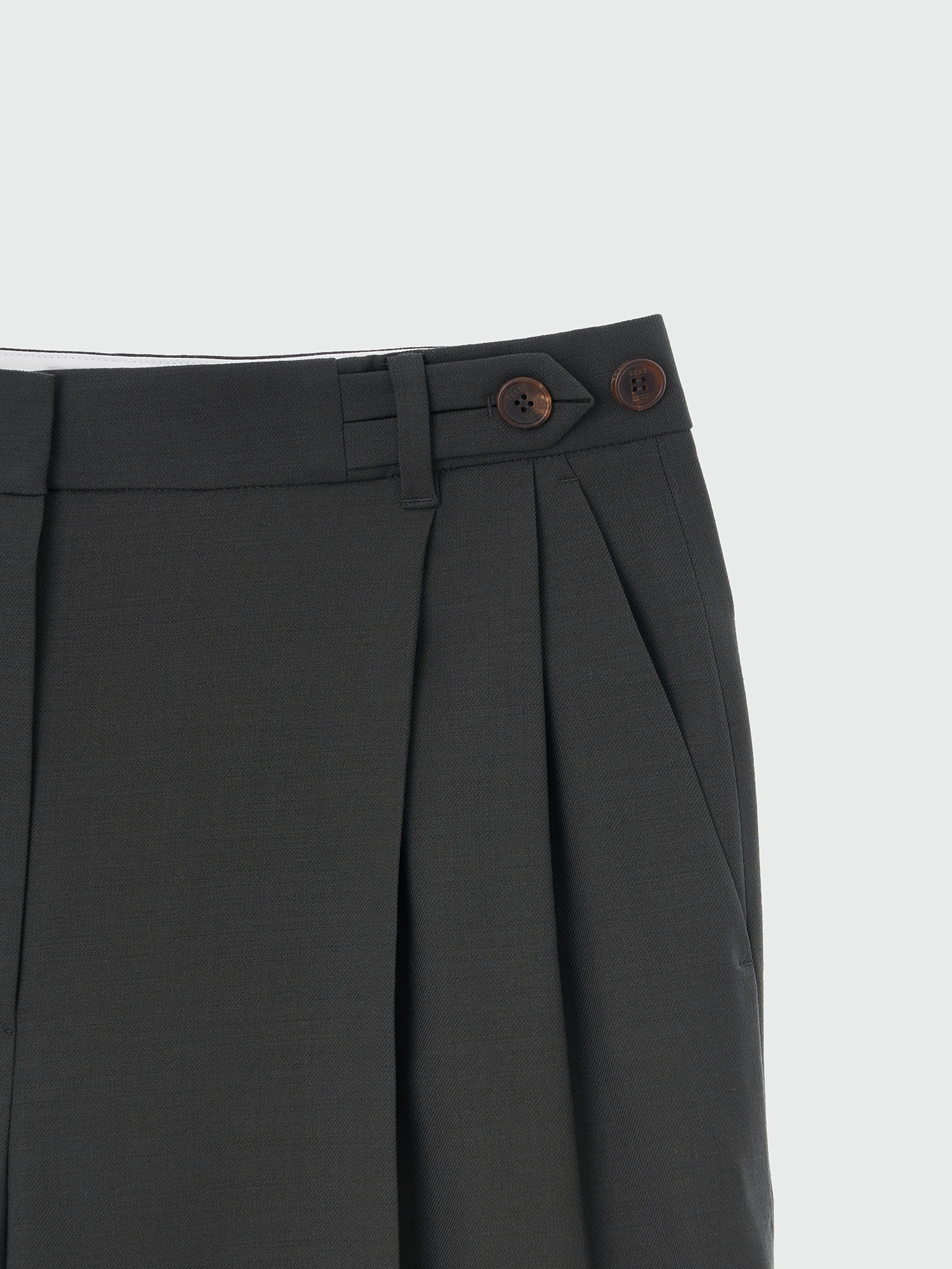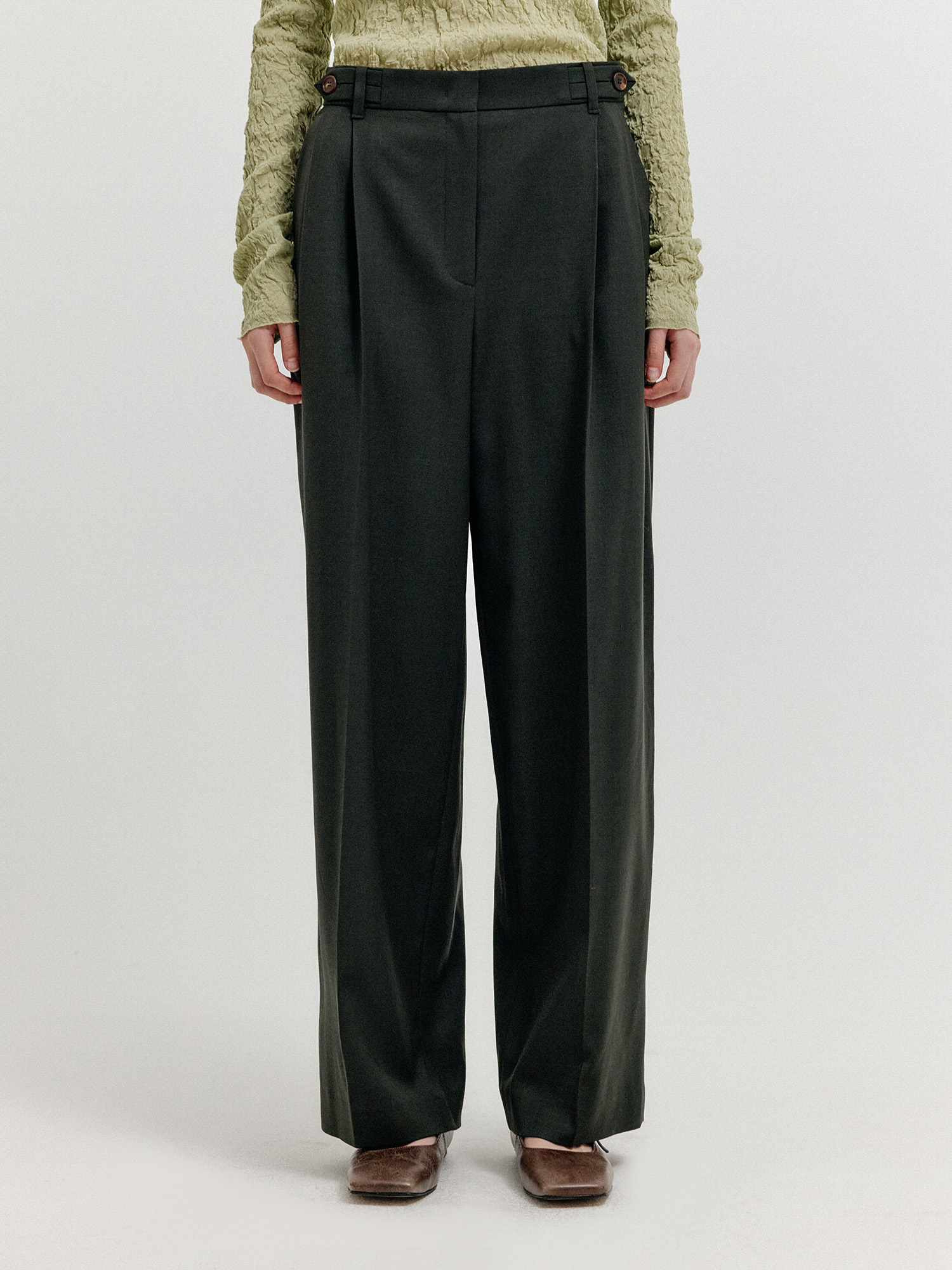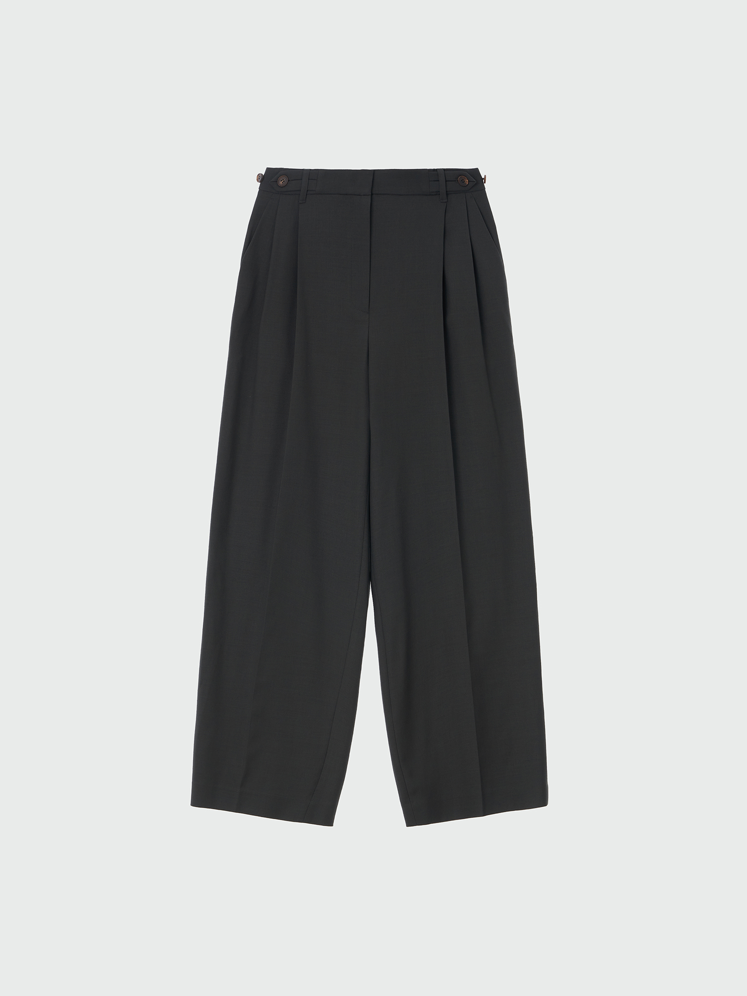 - 세미 와이드 핏의 투 턱 팬츠입니다.