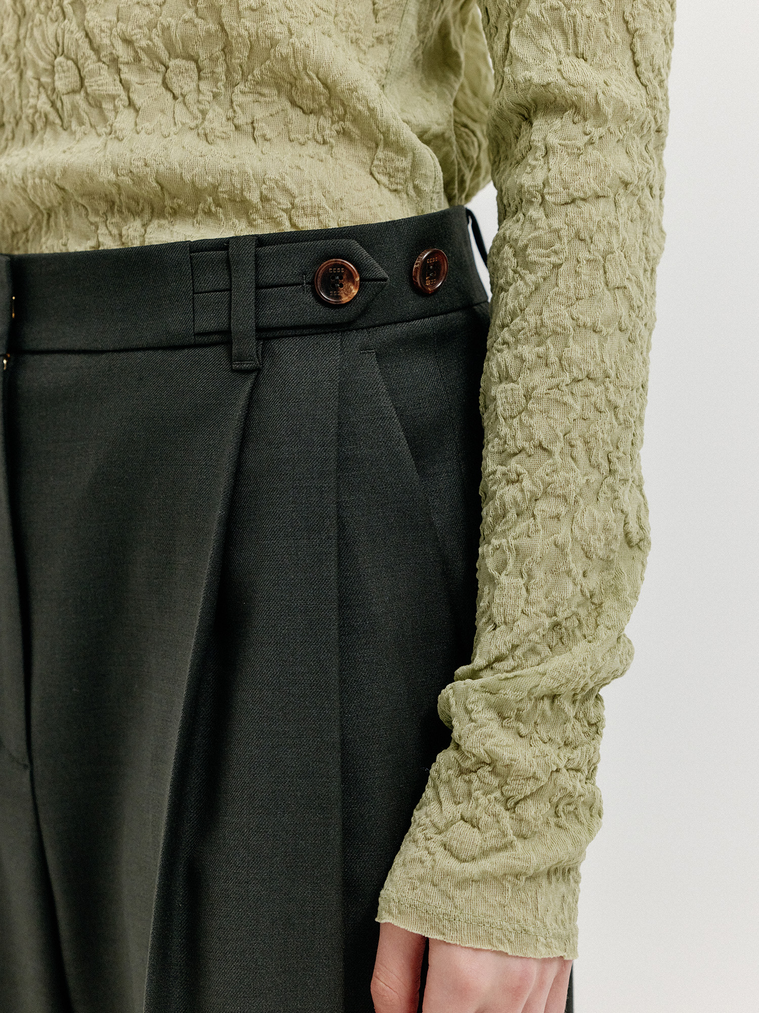 - 허리단에 버튼과 탭 장식으로 포인트를 주었습니다.