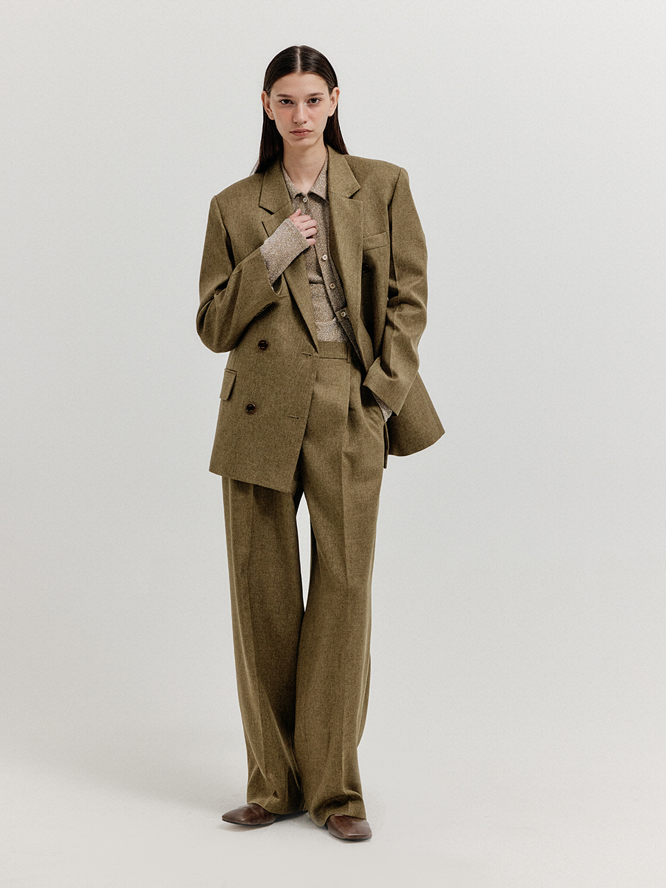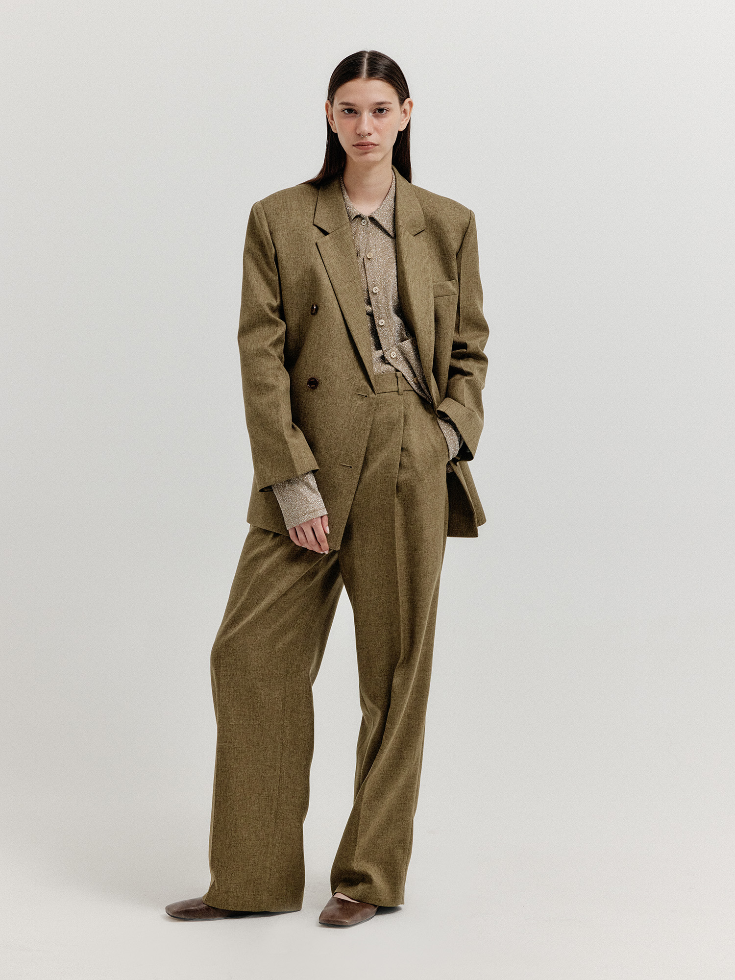 - 같은 소재를 사용한 자켓과 셋업으로 연출할 수 있습니다.