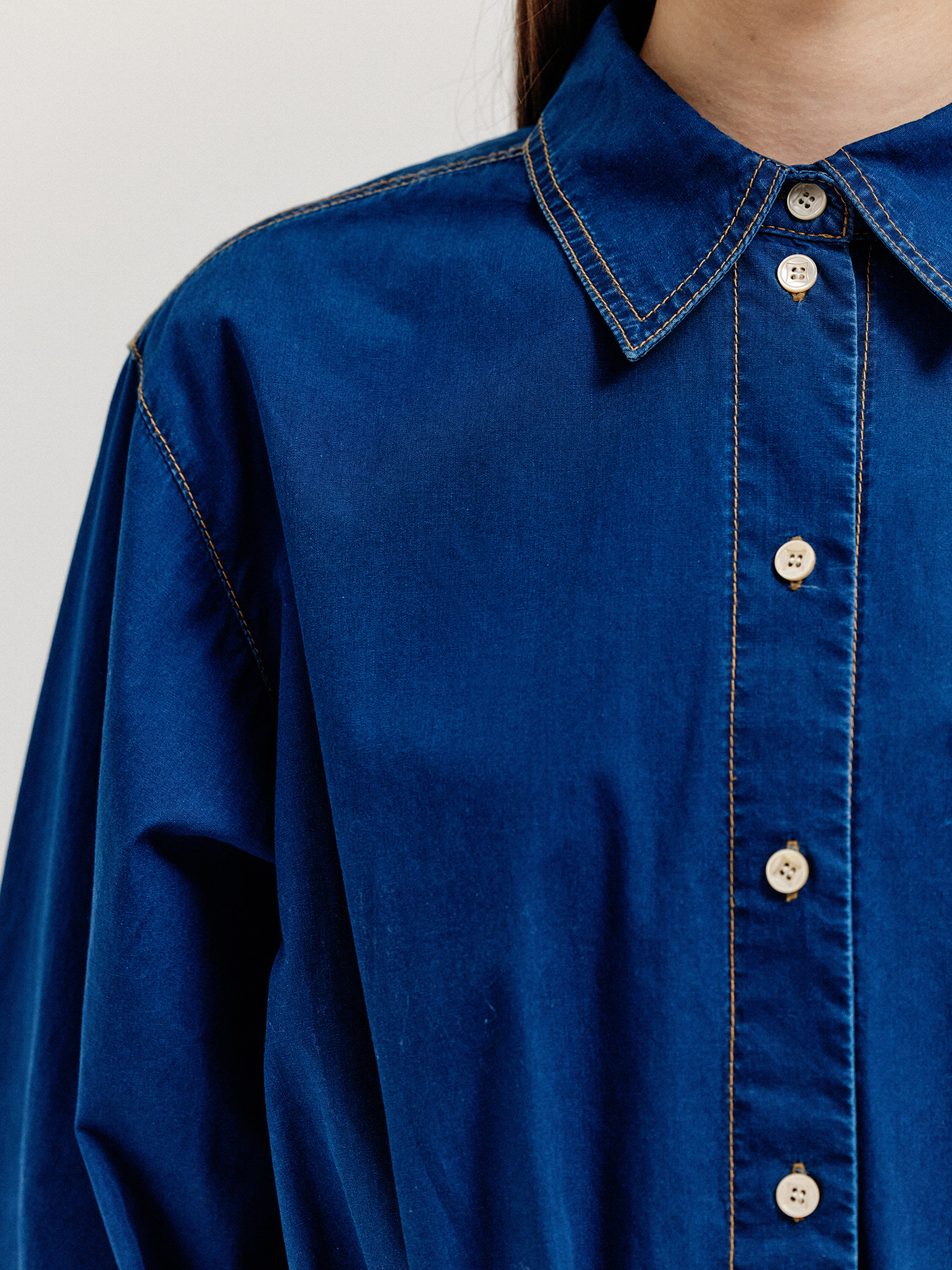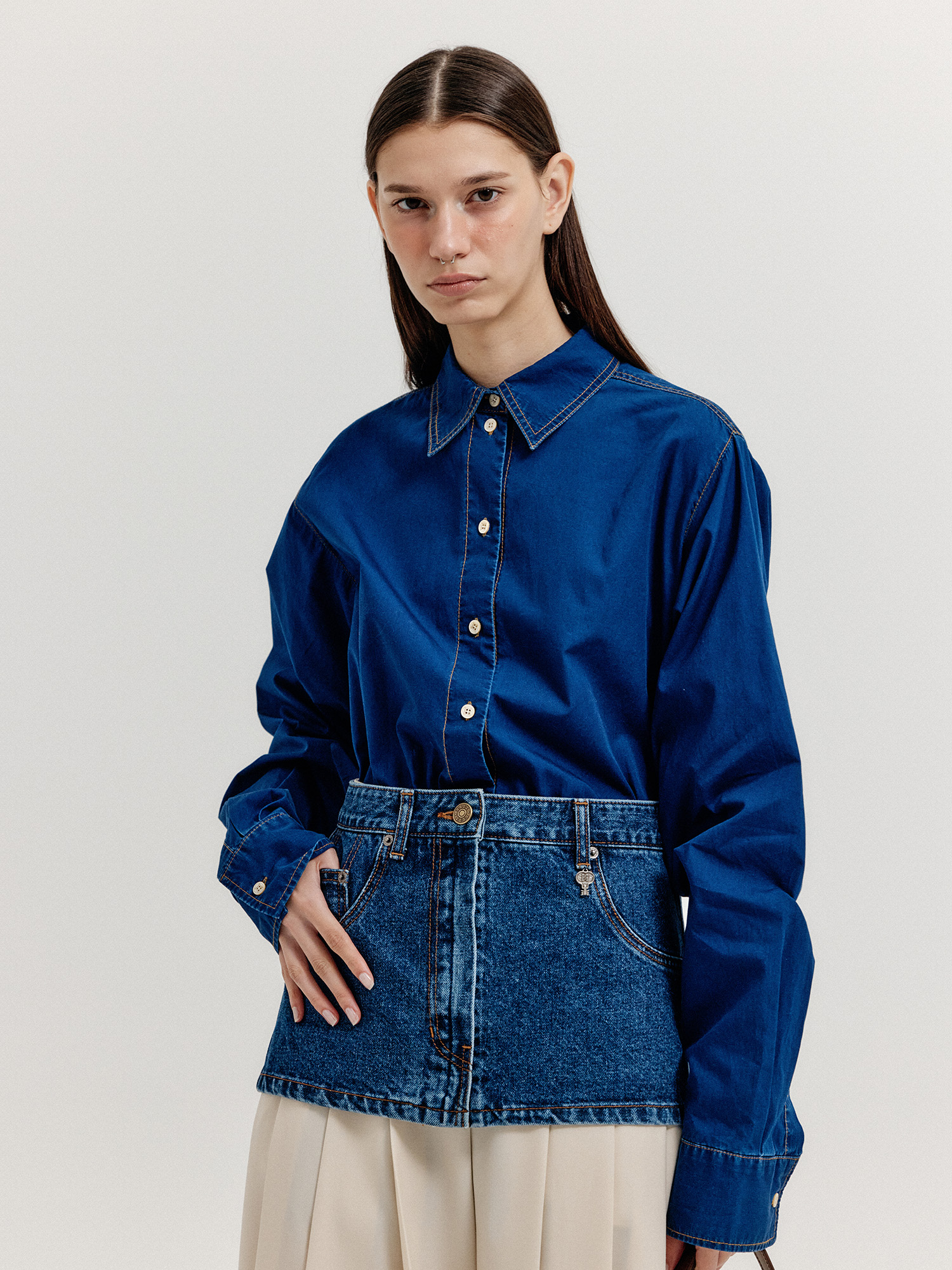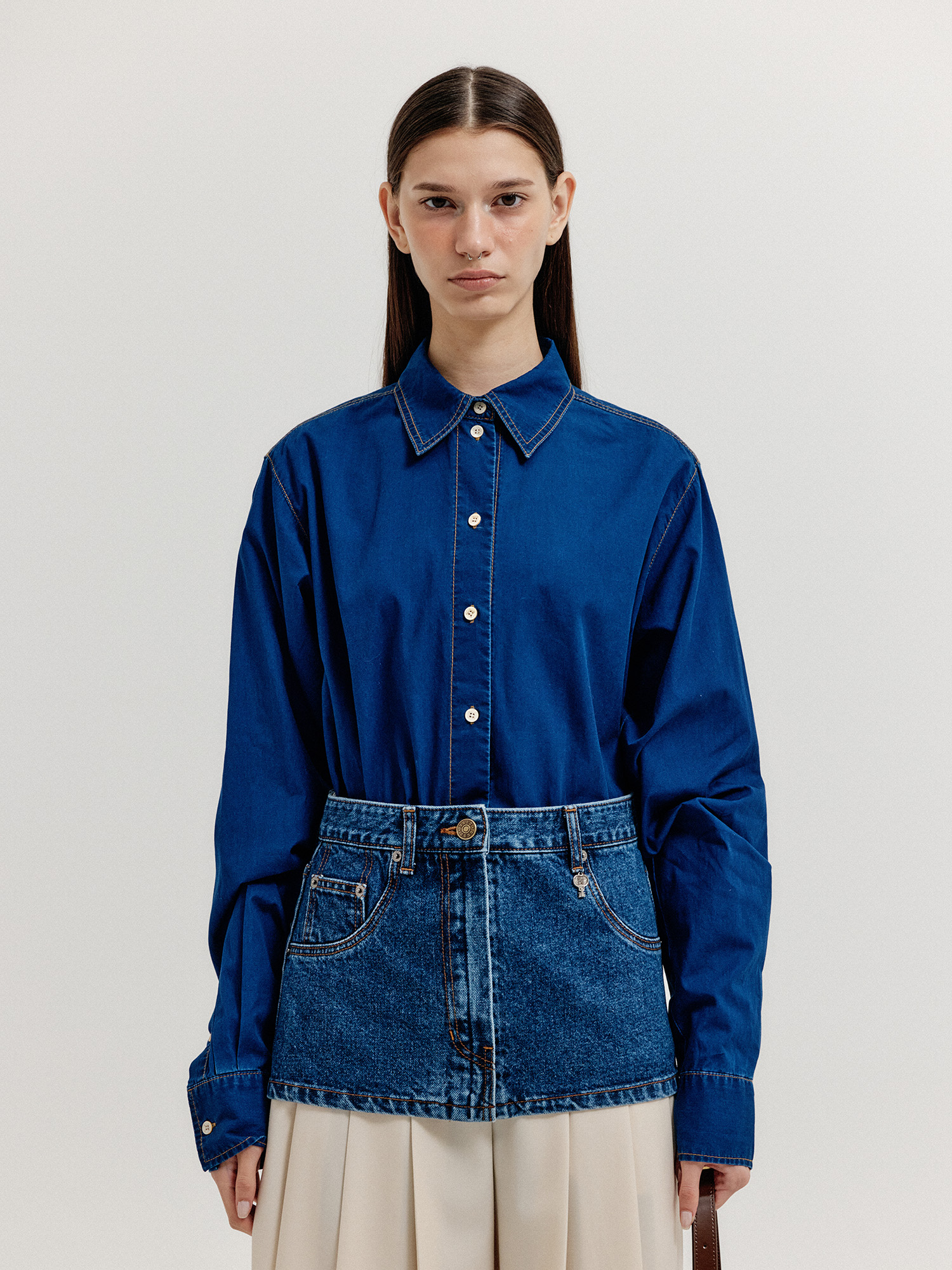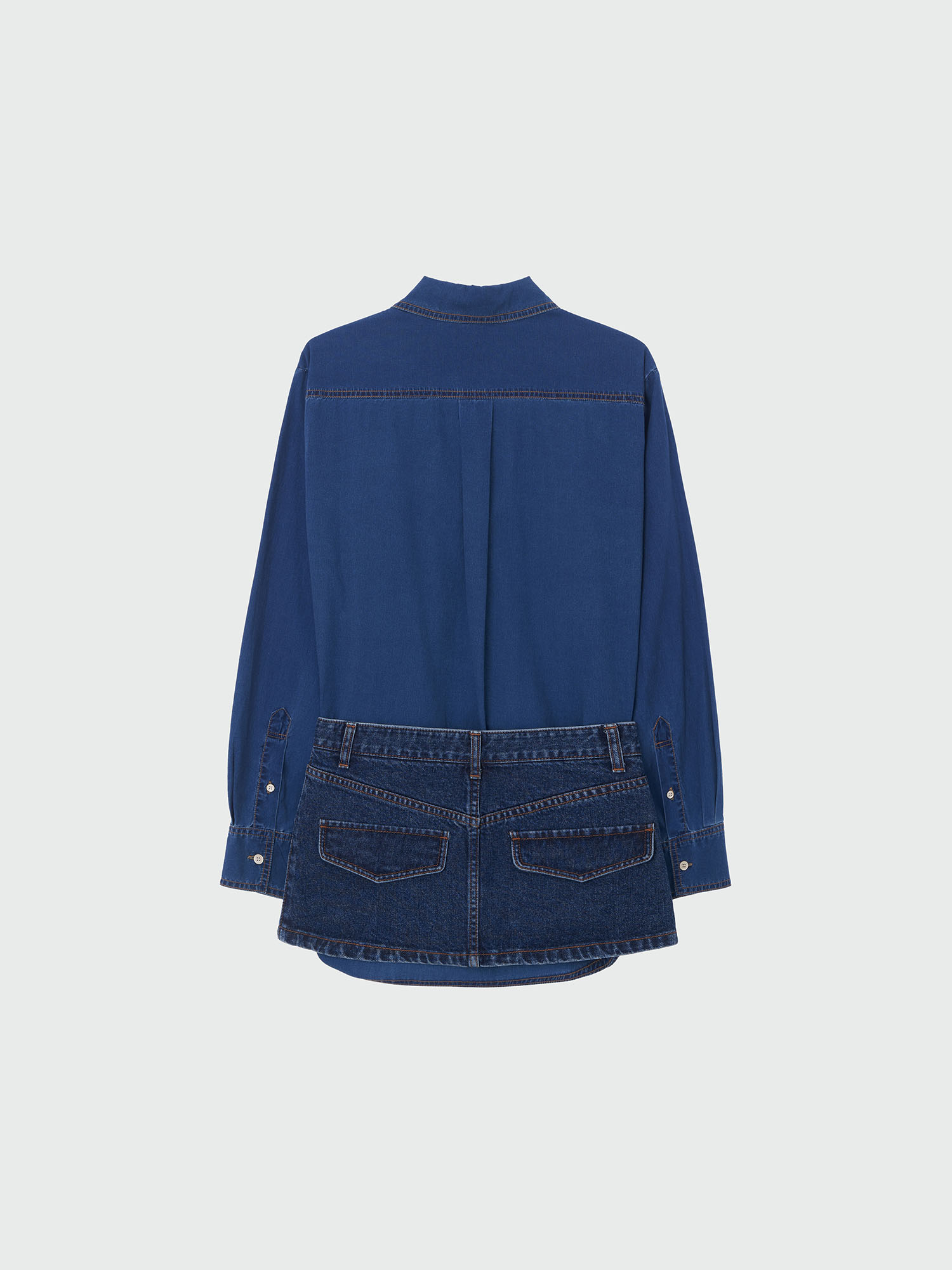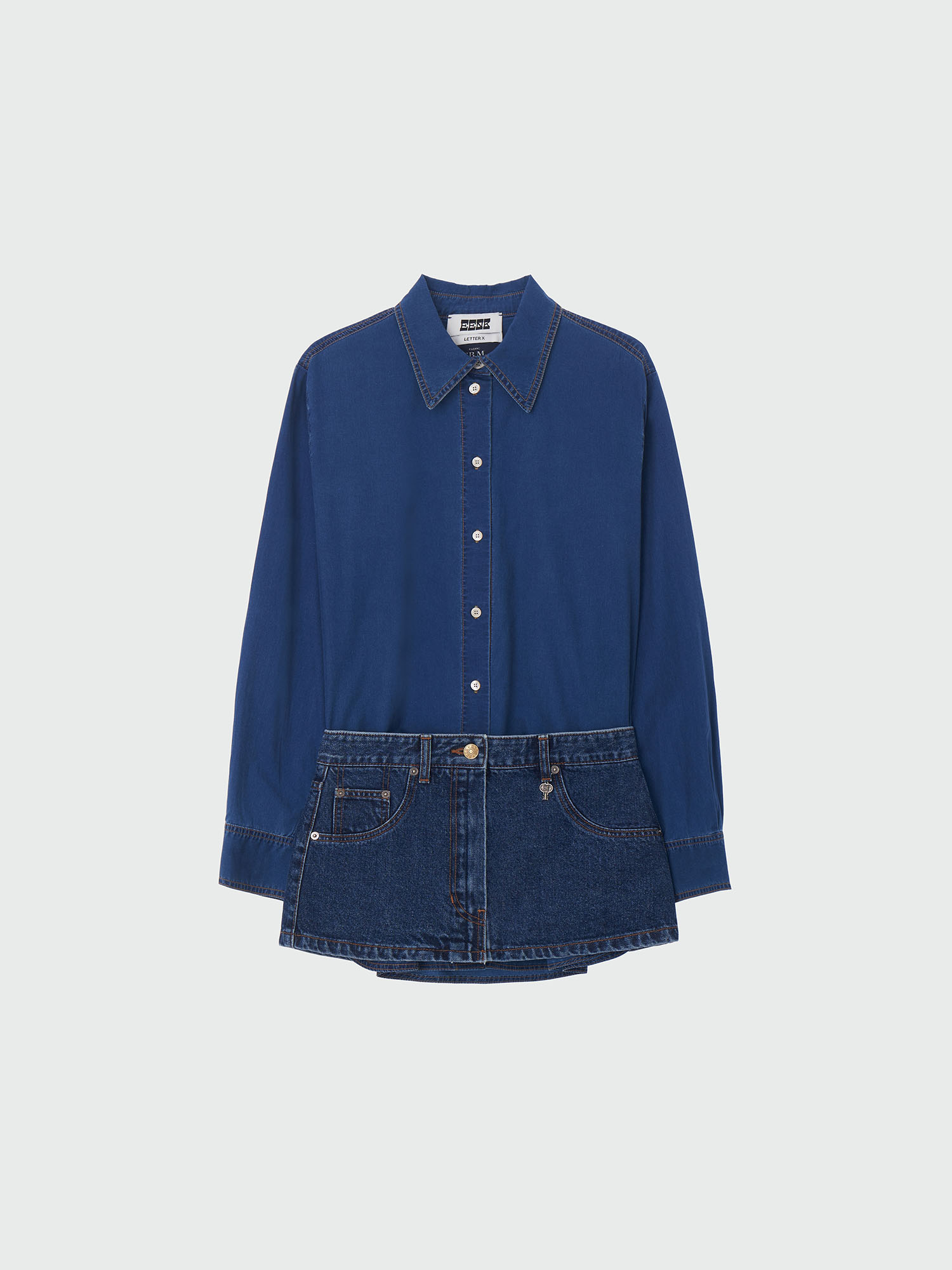 - 스커트 벨트가 포함된 오버사이즈 데님 셔츠입니다.