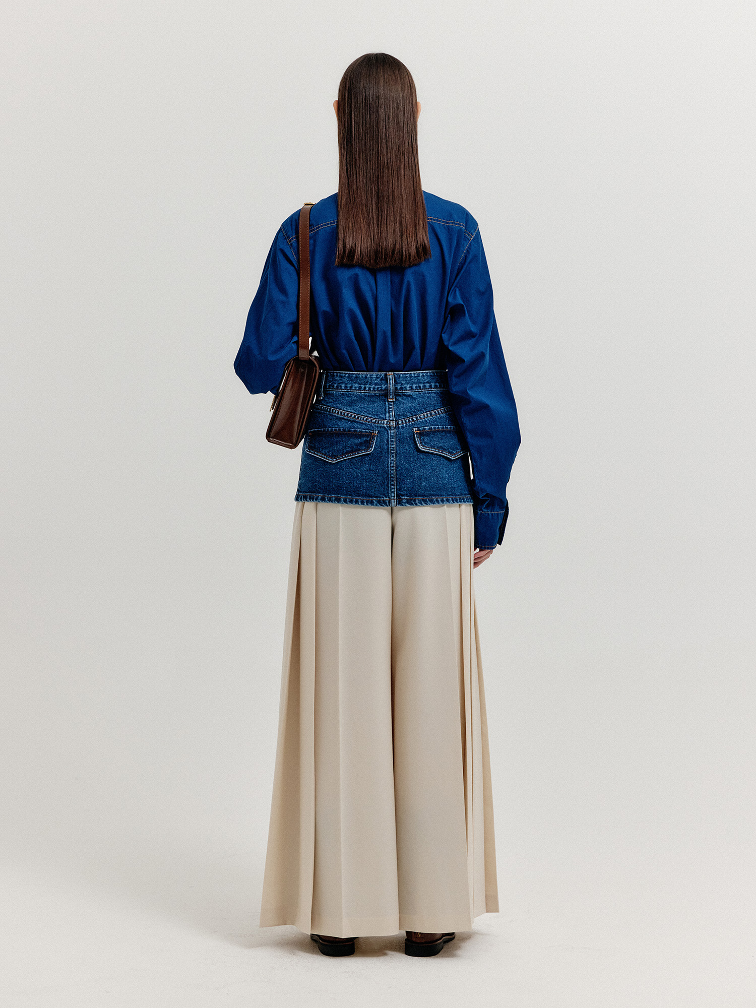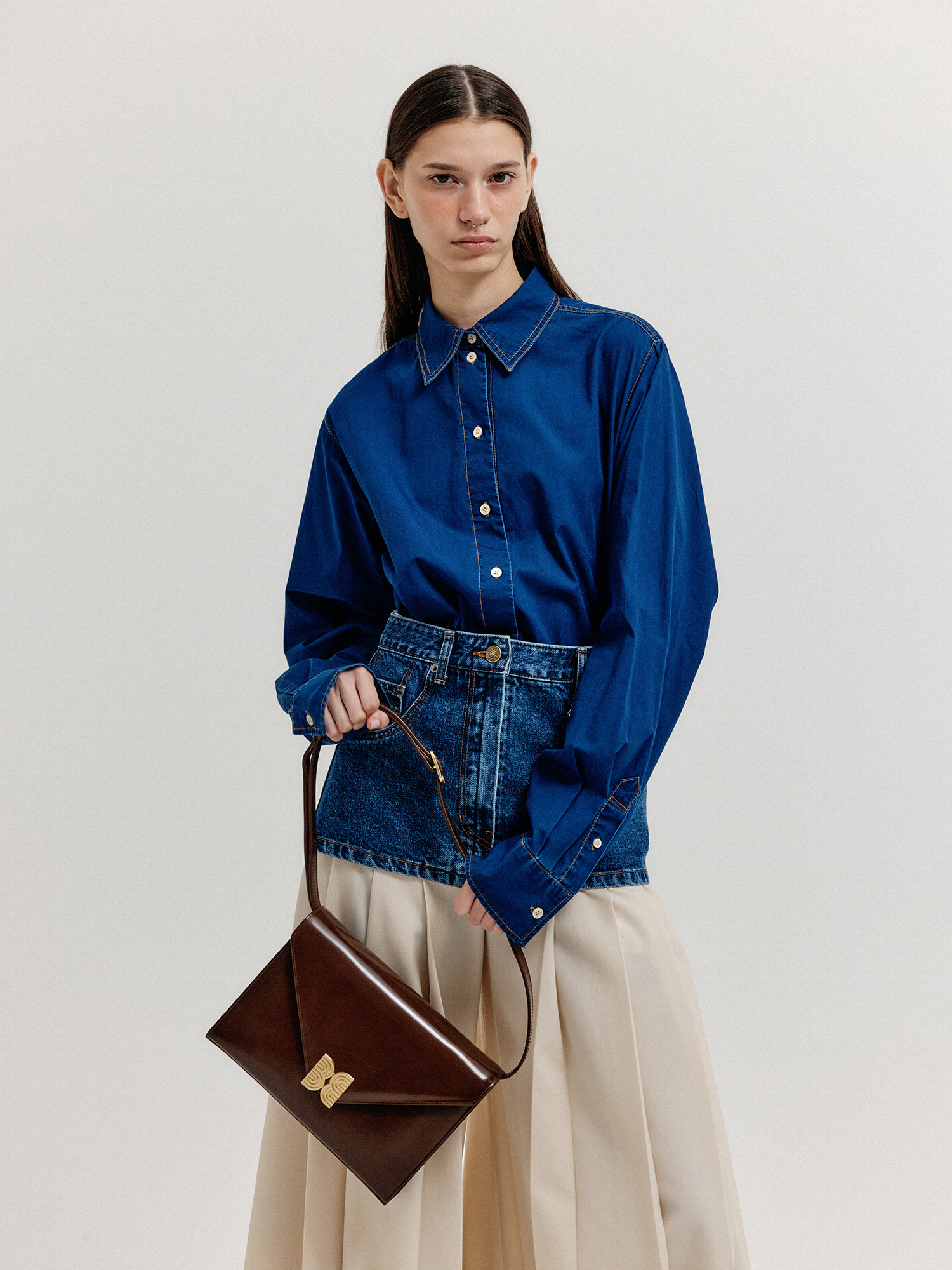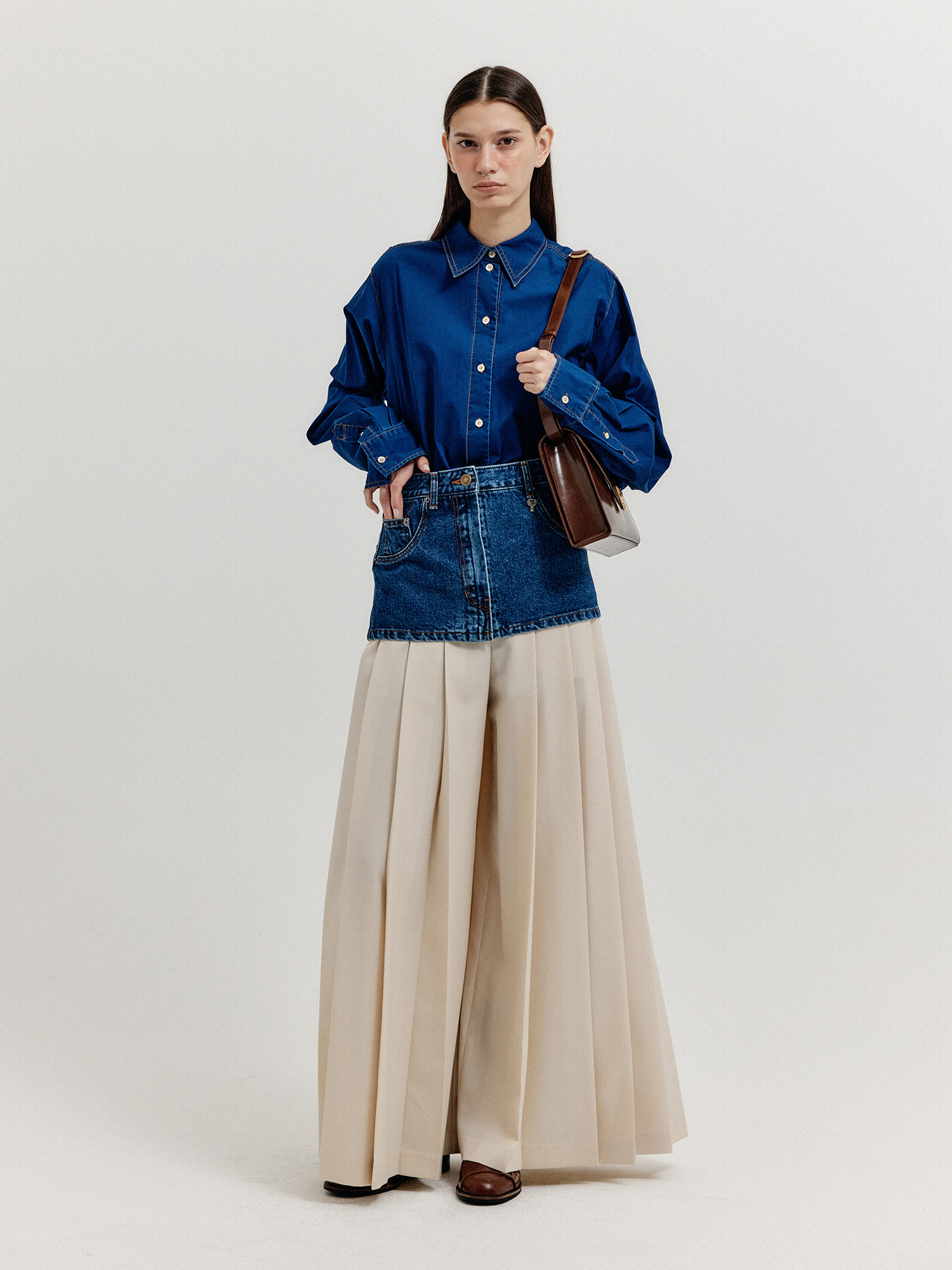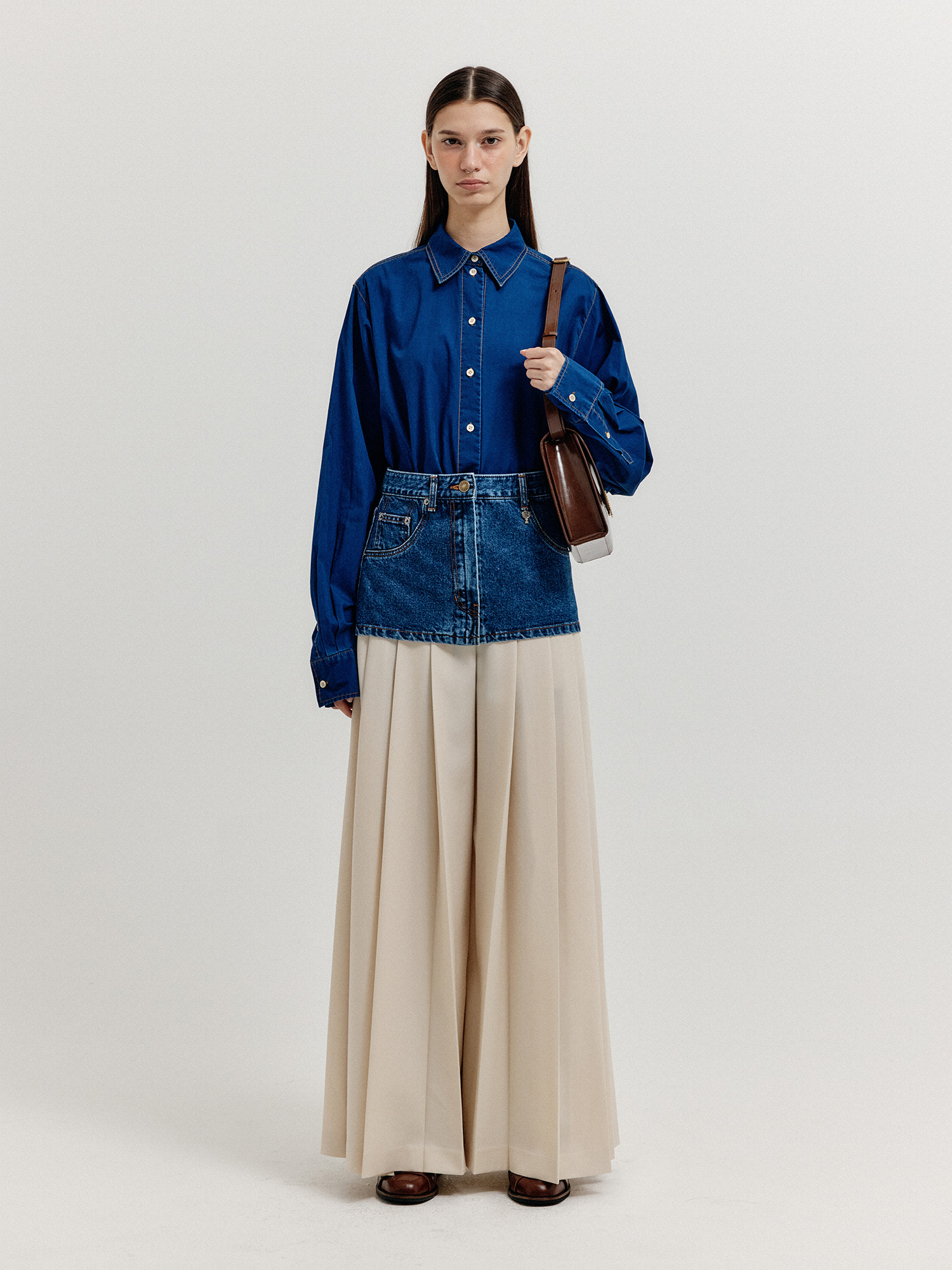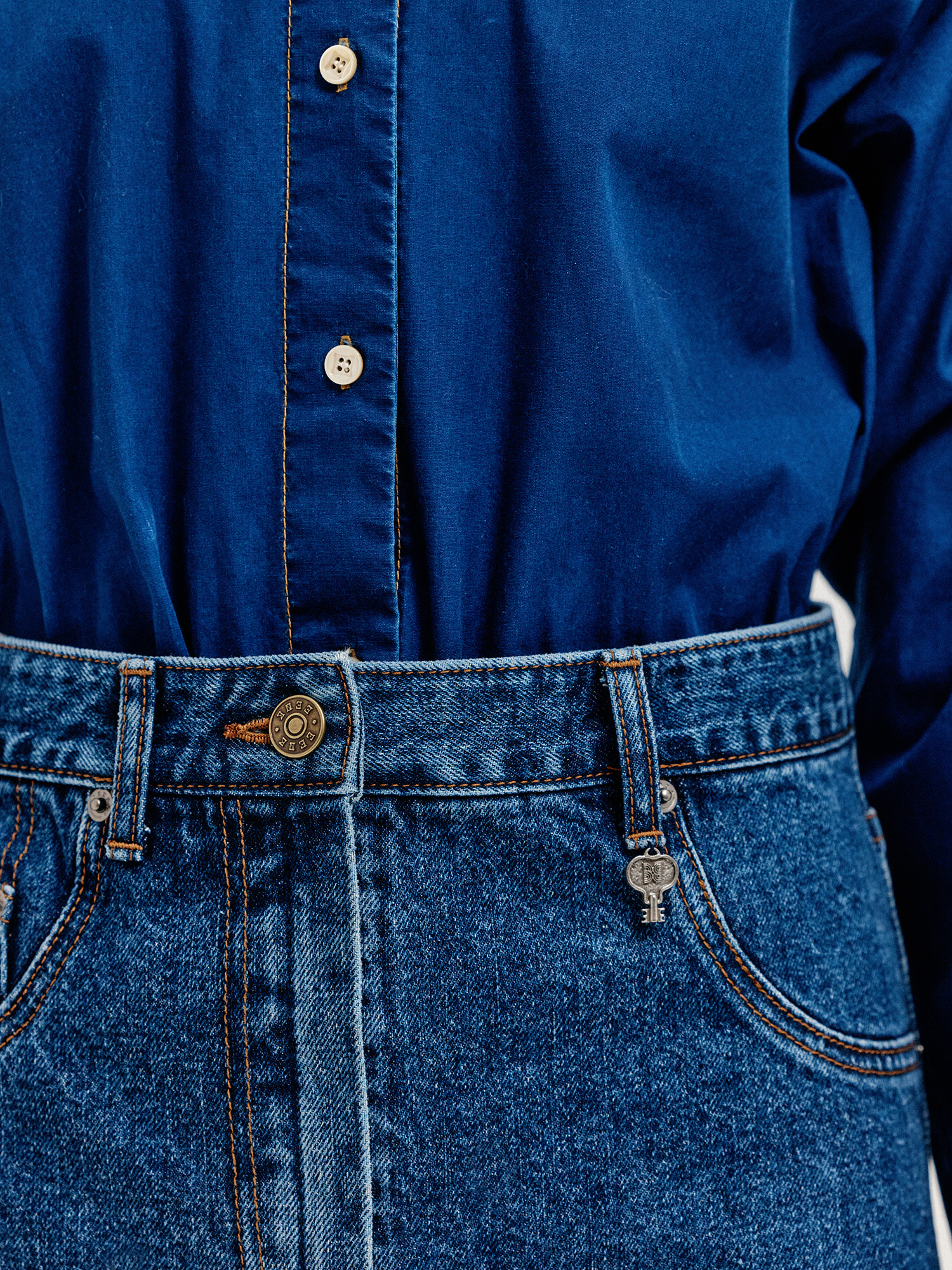 - 스커트 벨트가 포함된 오버사이즈 데님 셔츠입니다.