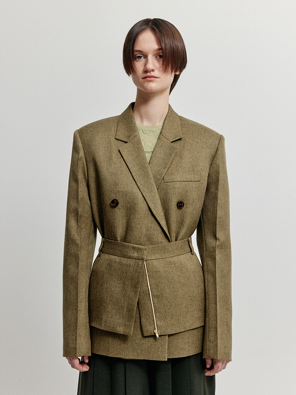 - 지퍼로 여닫을 수 있는 스커트 형식의 벨트입니다.
