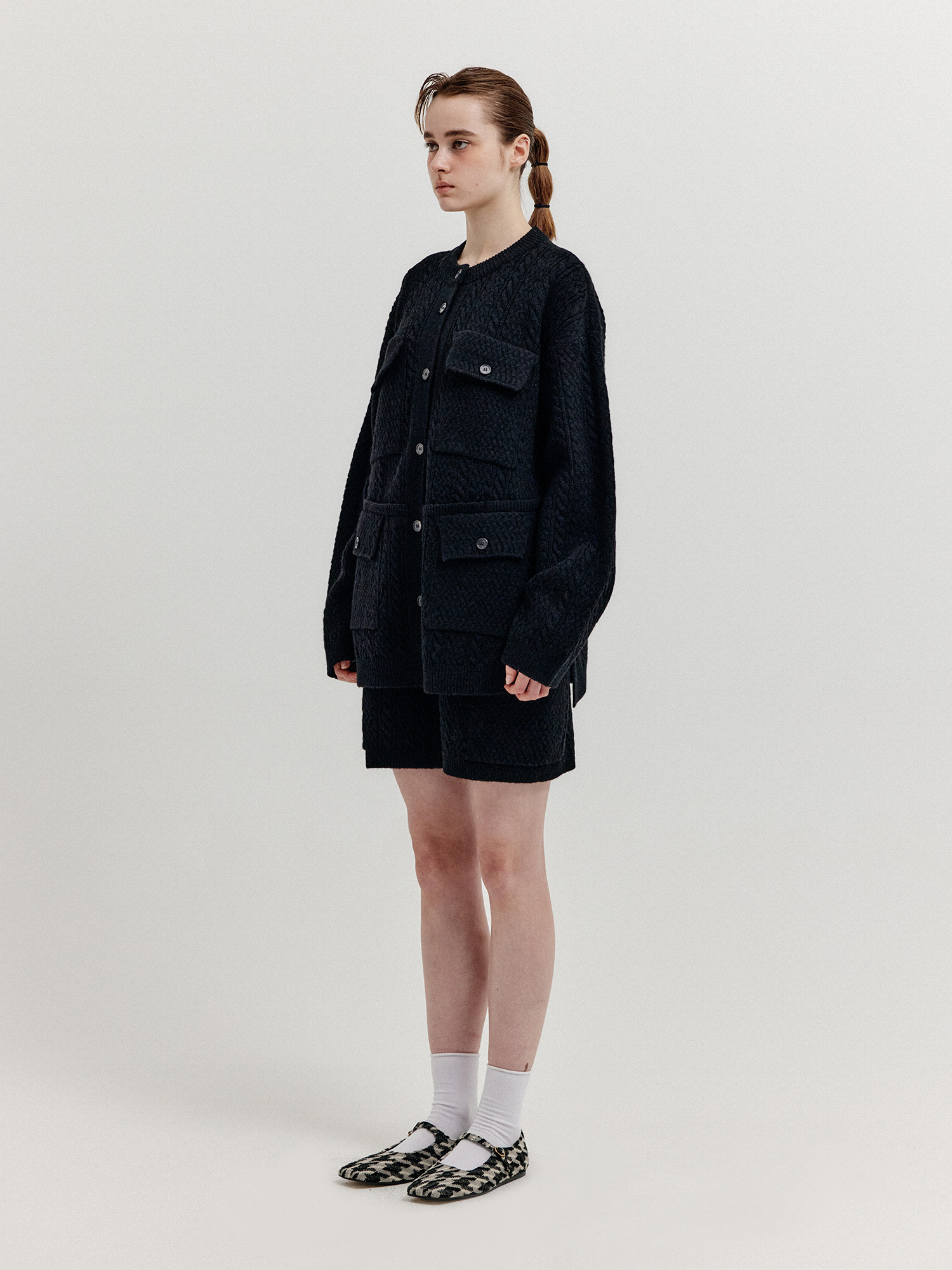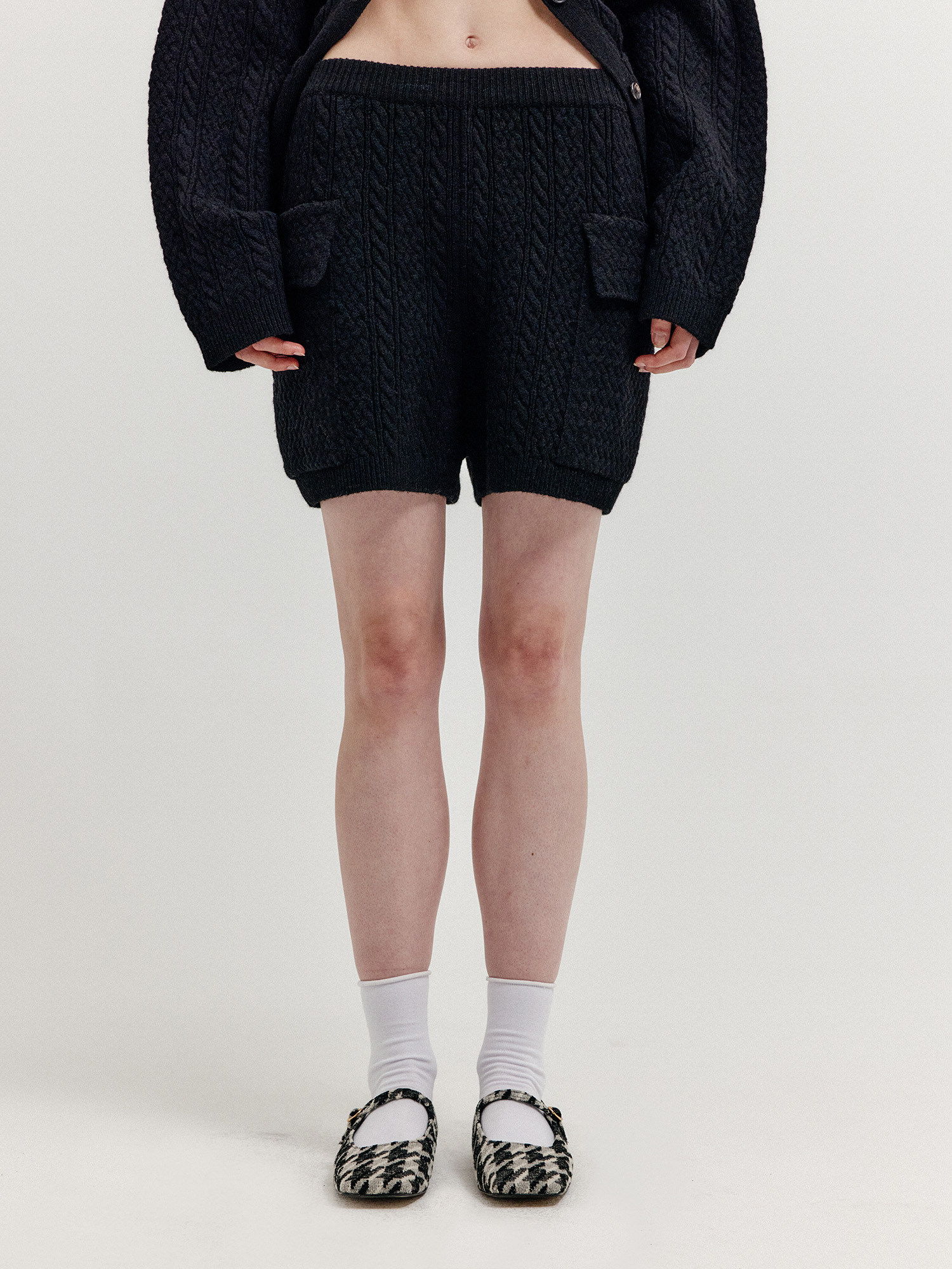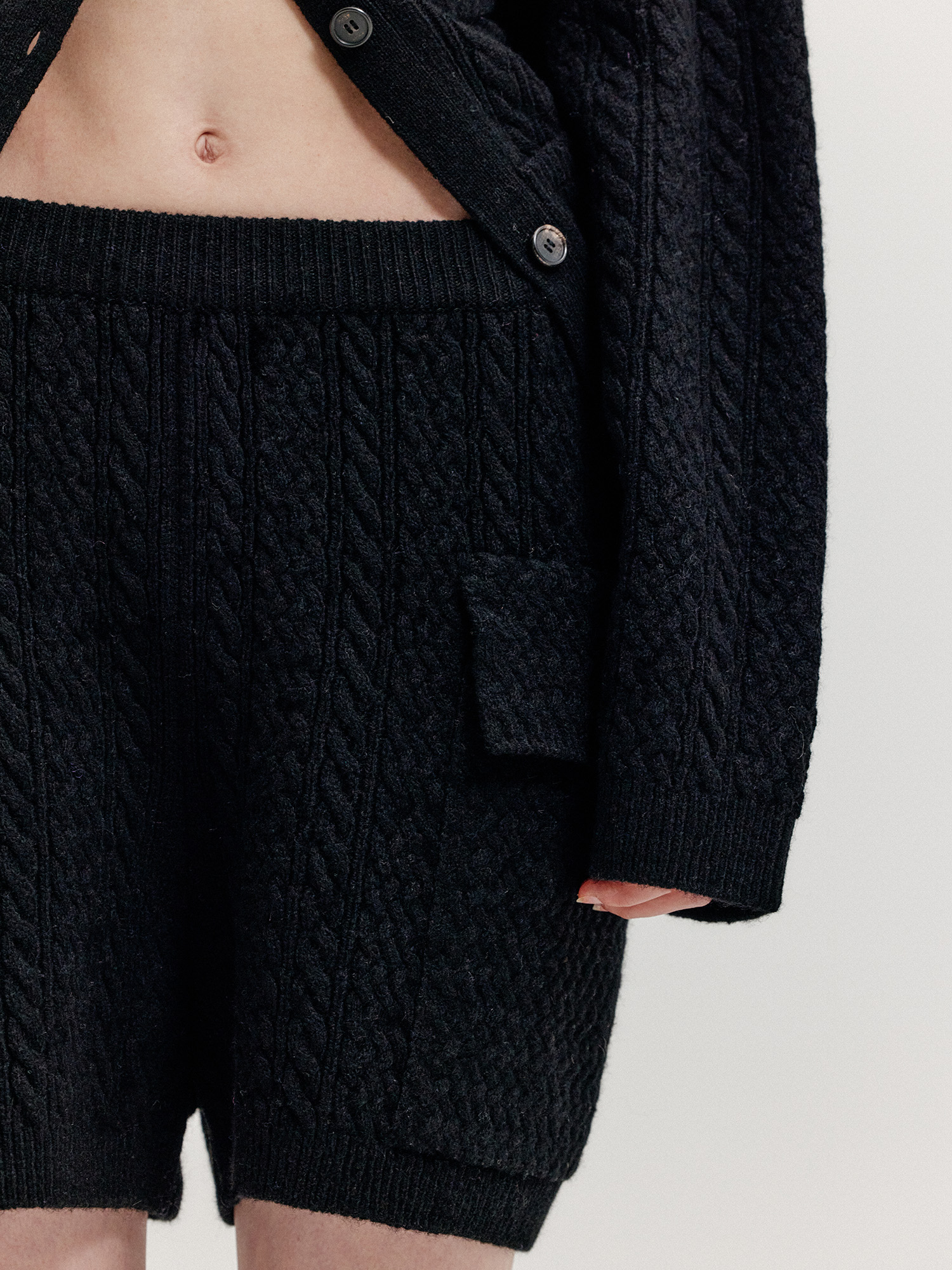 - 플랩 포켓이 달린 케이블 니트 쇼츠입니다.