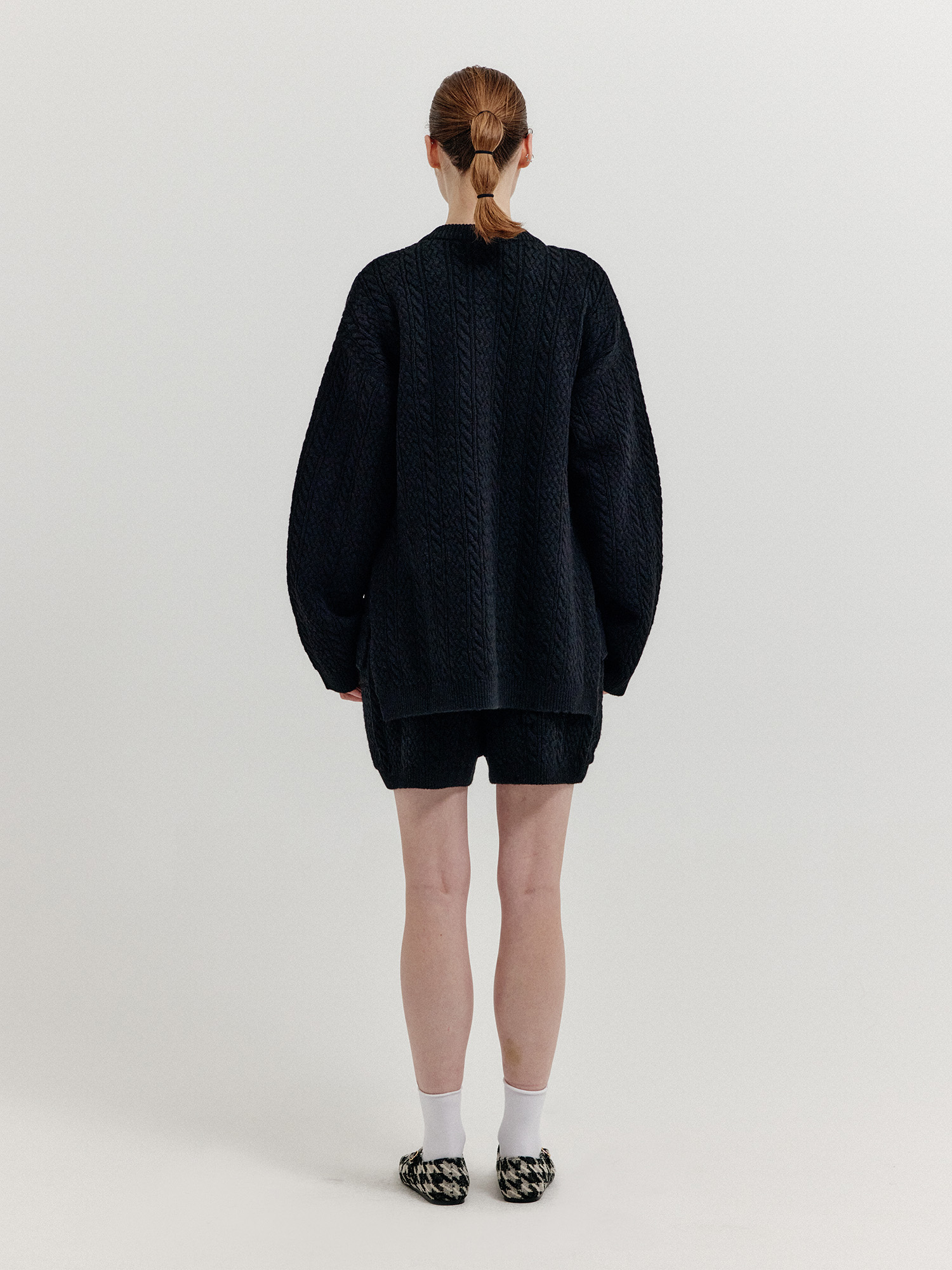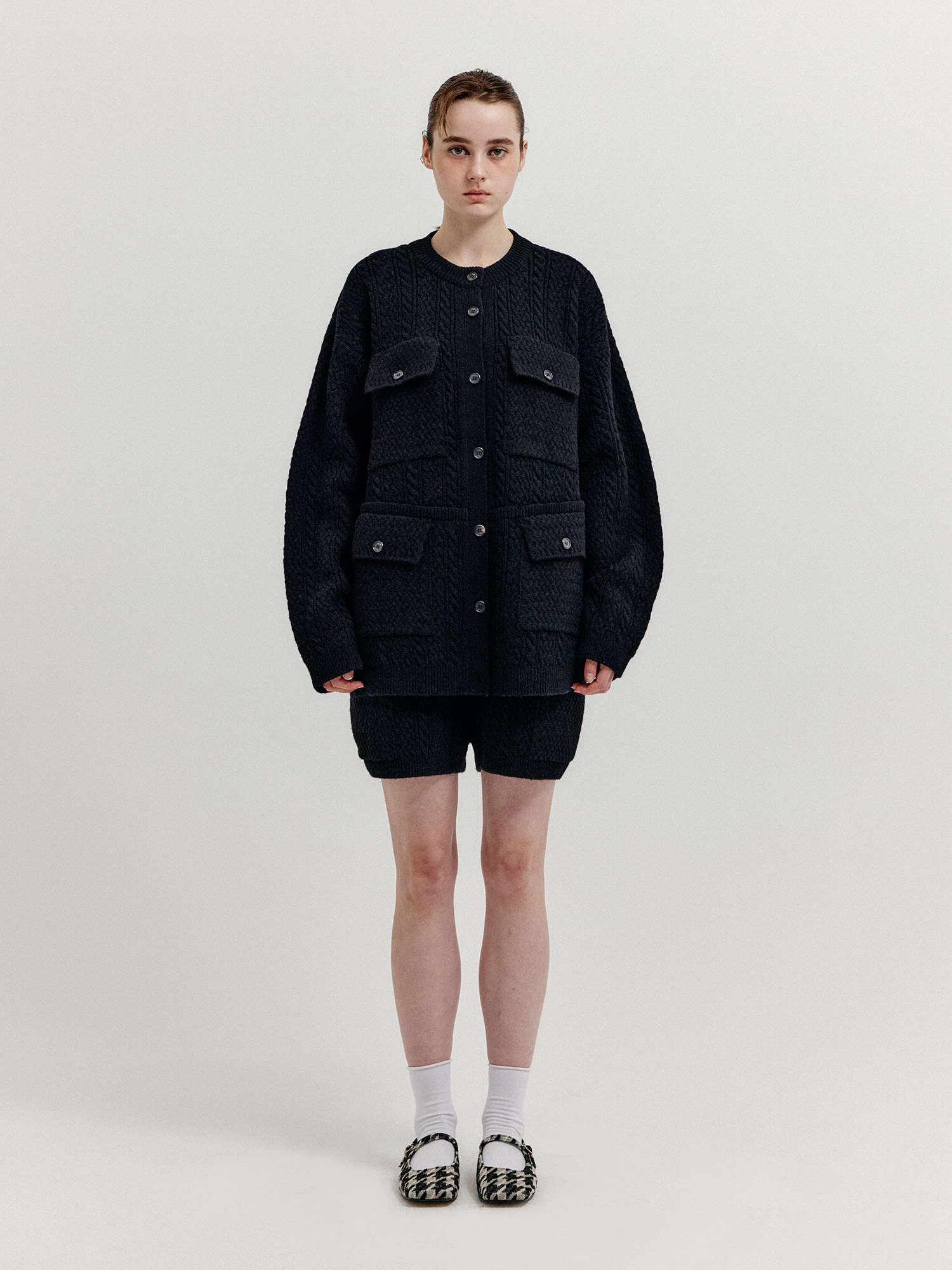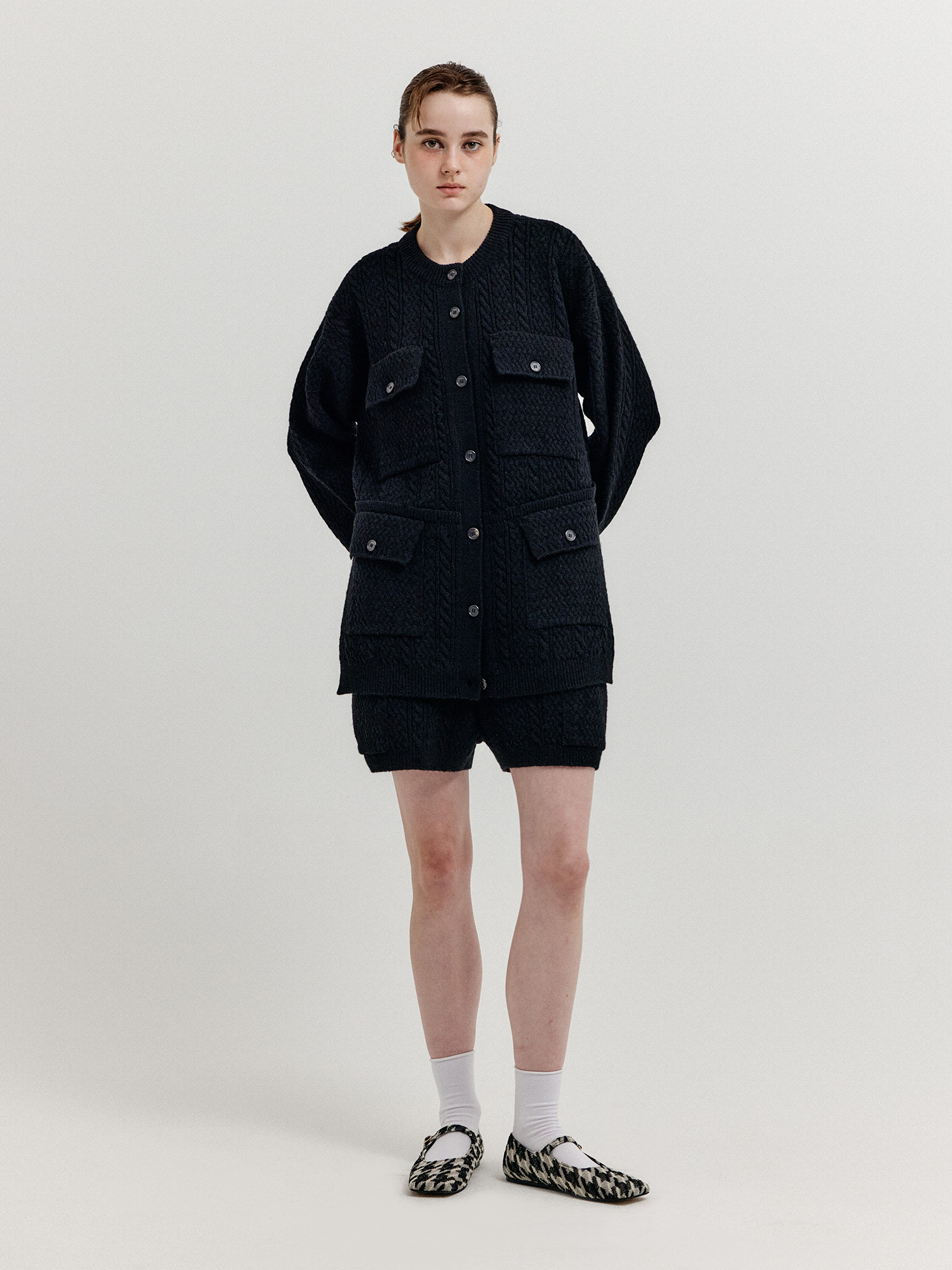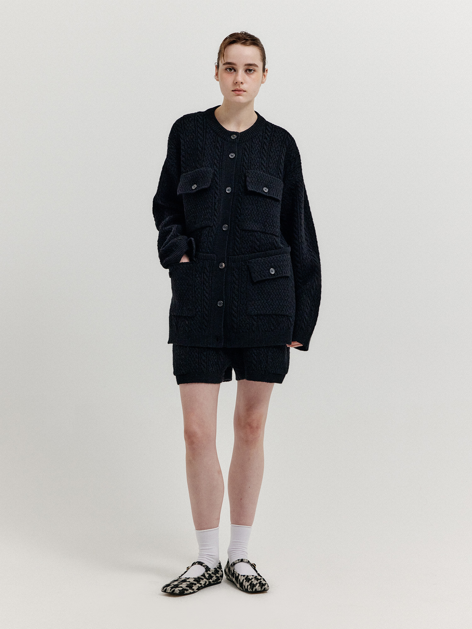 - 플랩 포켓이 달린 케이블 니트 쇼츠입니다.