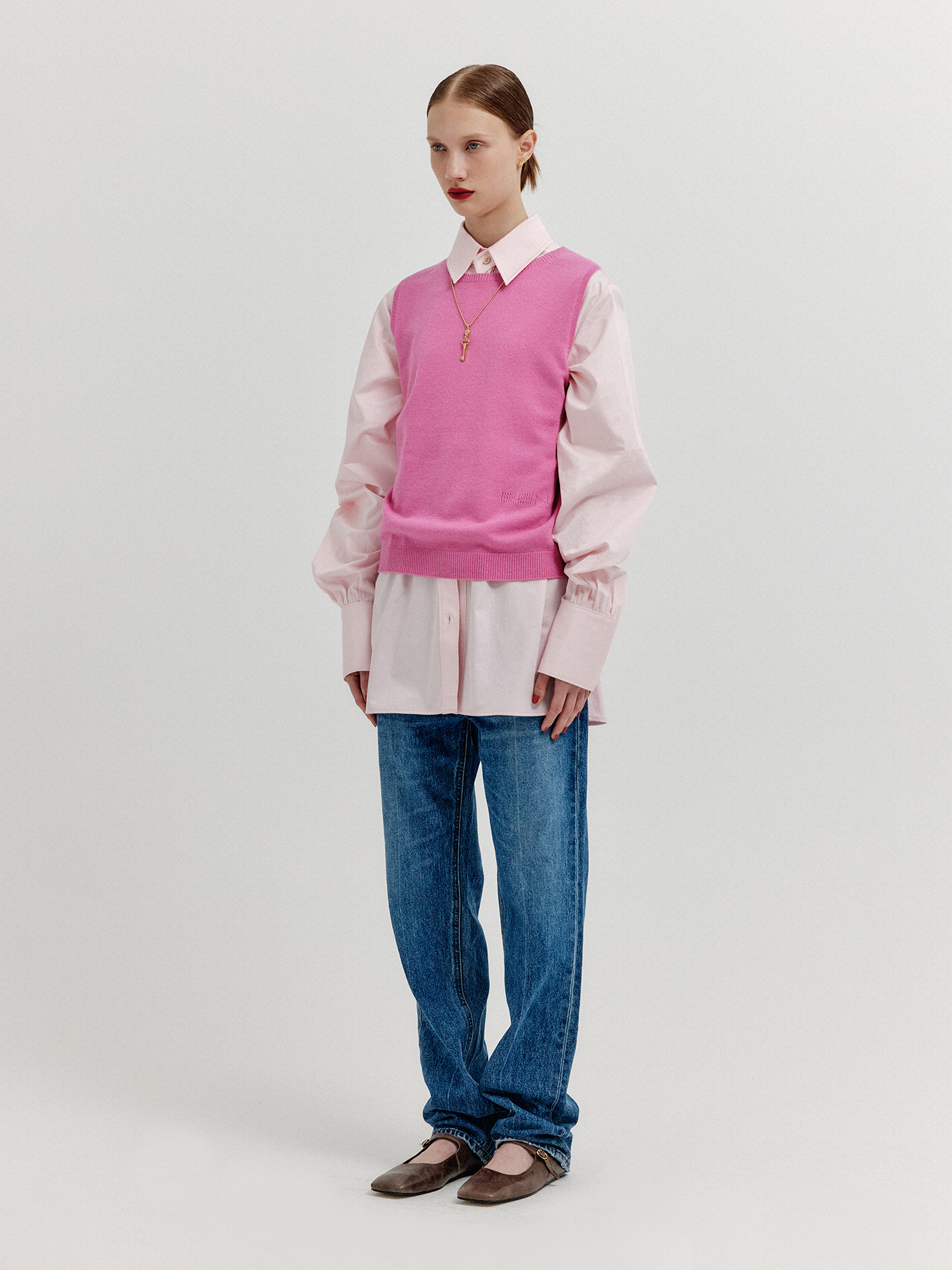 - 같은 소재의 가디건과 셋업으로 연출할 수 있습니다.