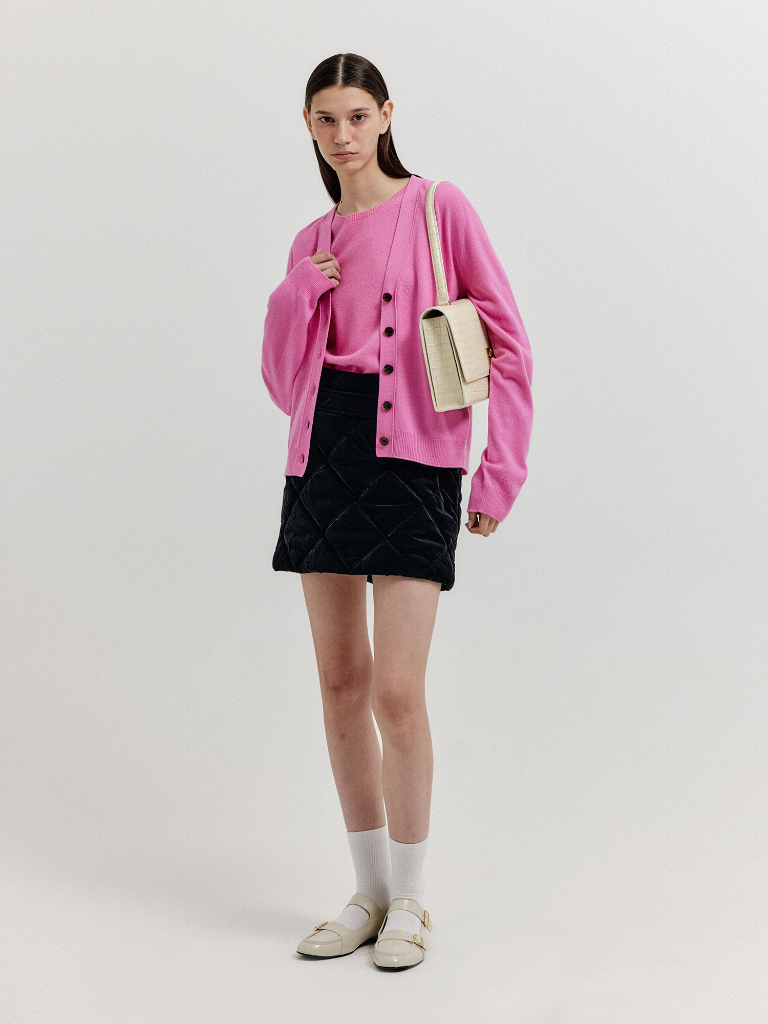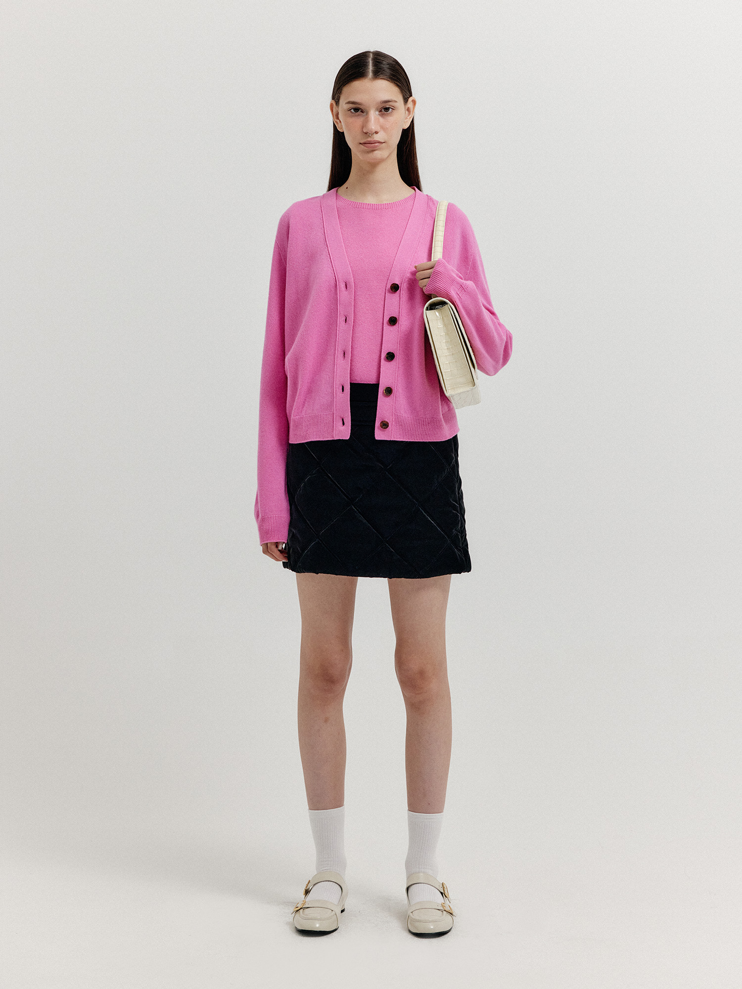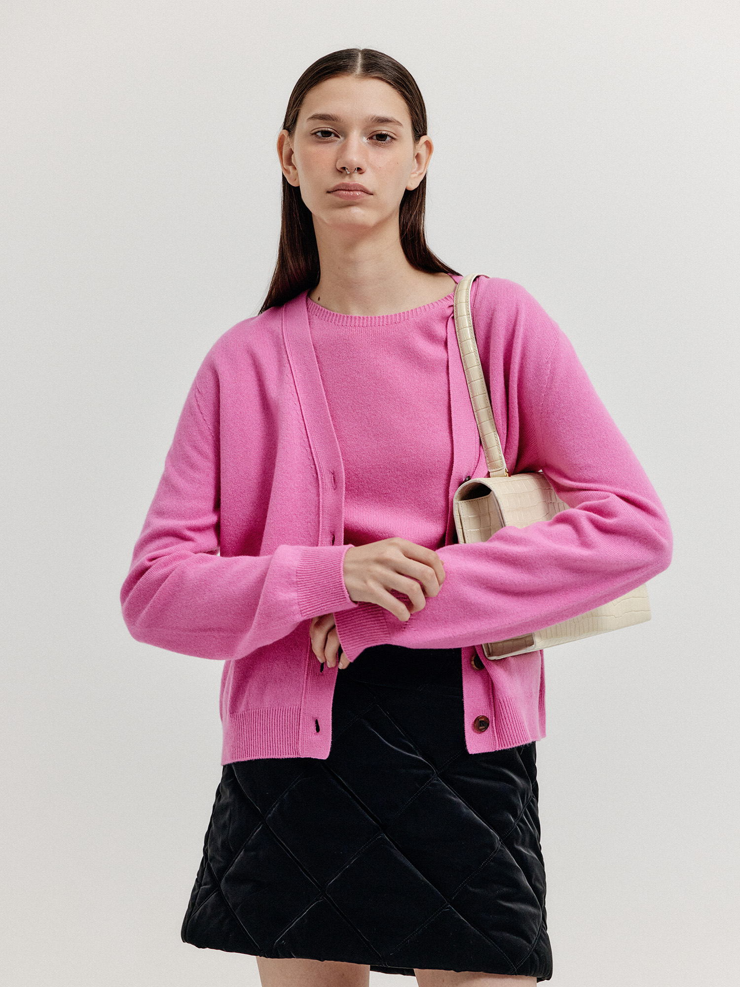 - 같은 소재의 니트 베스트와 셋업으로 연출할 수 있습니다.