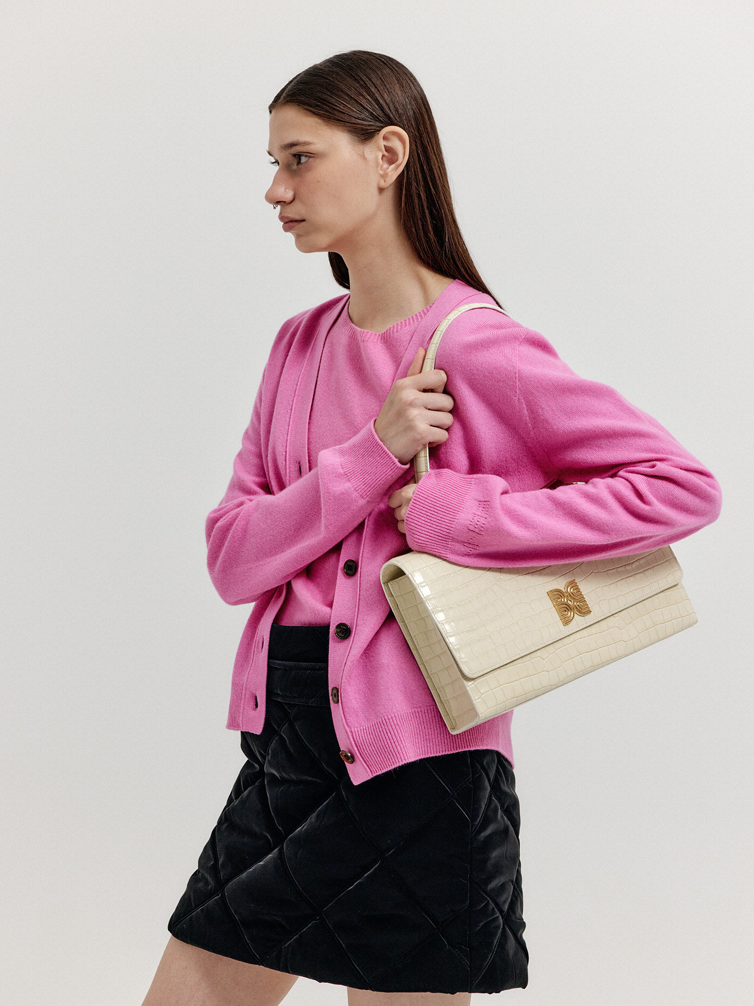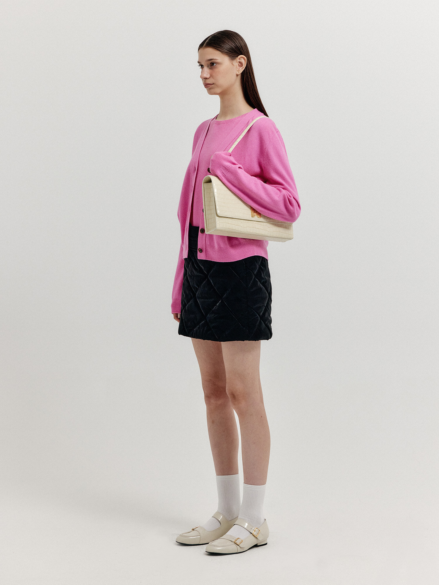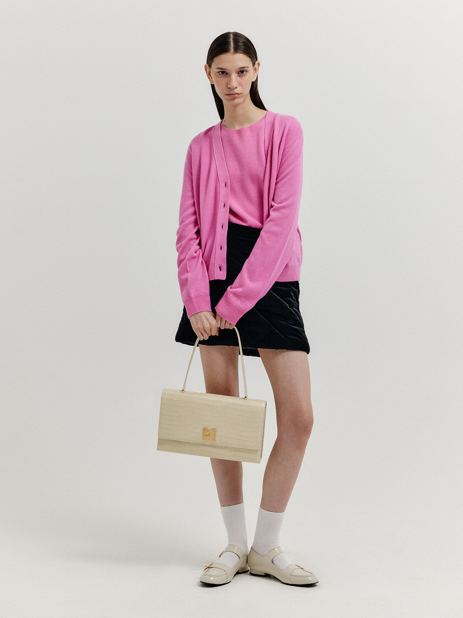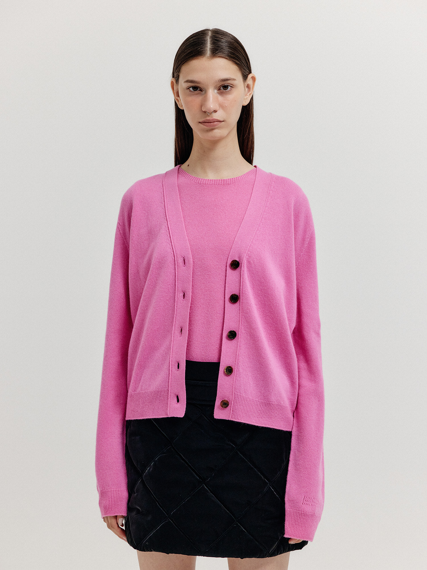 - 같은 소재의 니트 베스트와 셋업으로 연출할 수 있습니다.